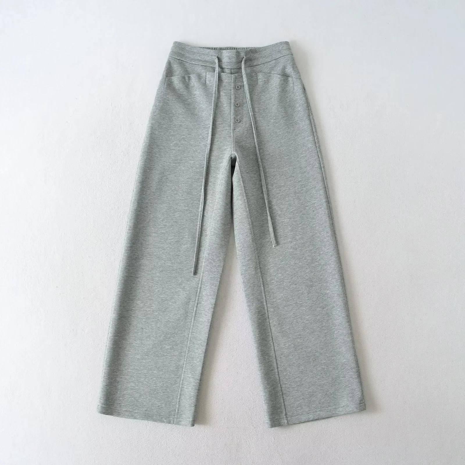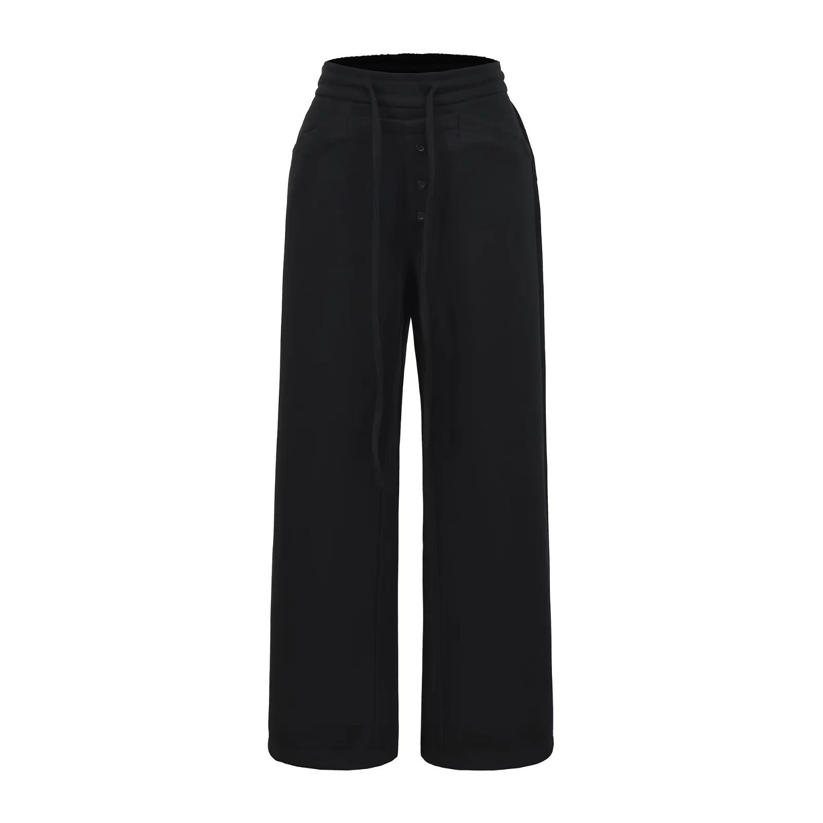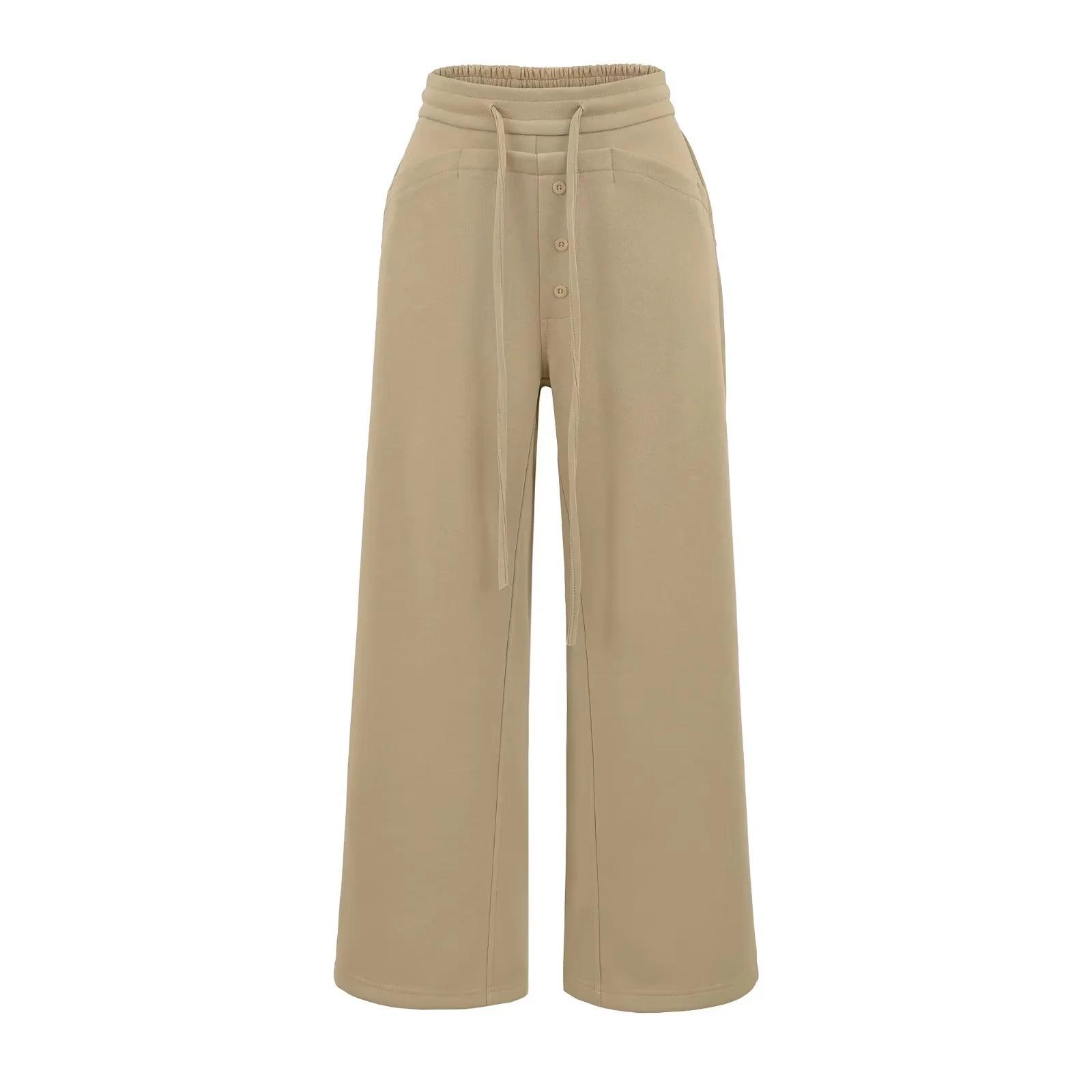 Calças Retrô Americanas com Cordão Cintura Alta Soltas Perna Reta Larga Calças Compridas Casuais Versáteis Emagrecedoras Preguiçosas Novas de Outono Femininas