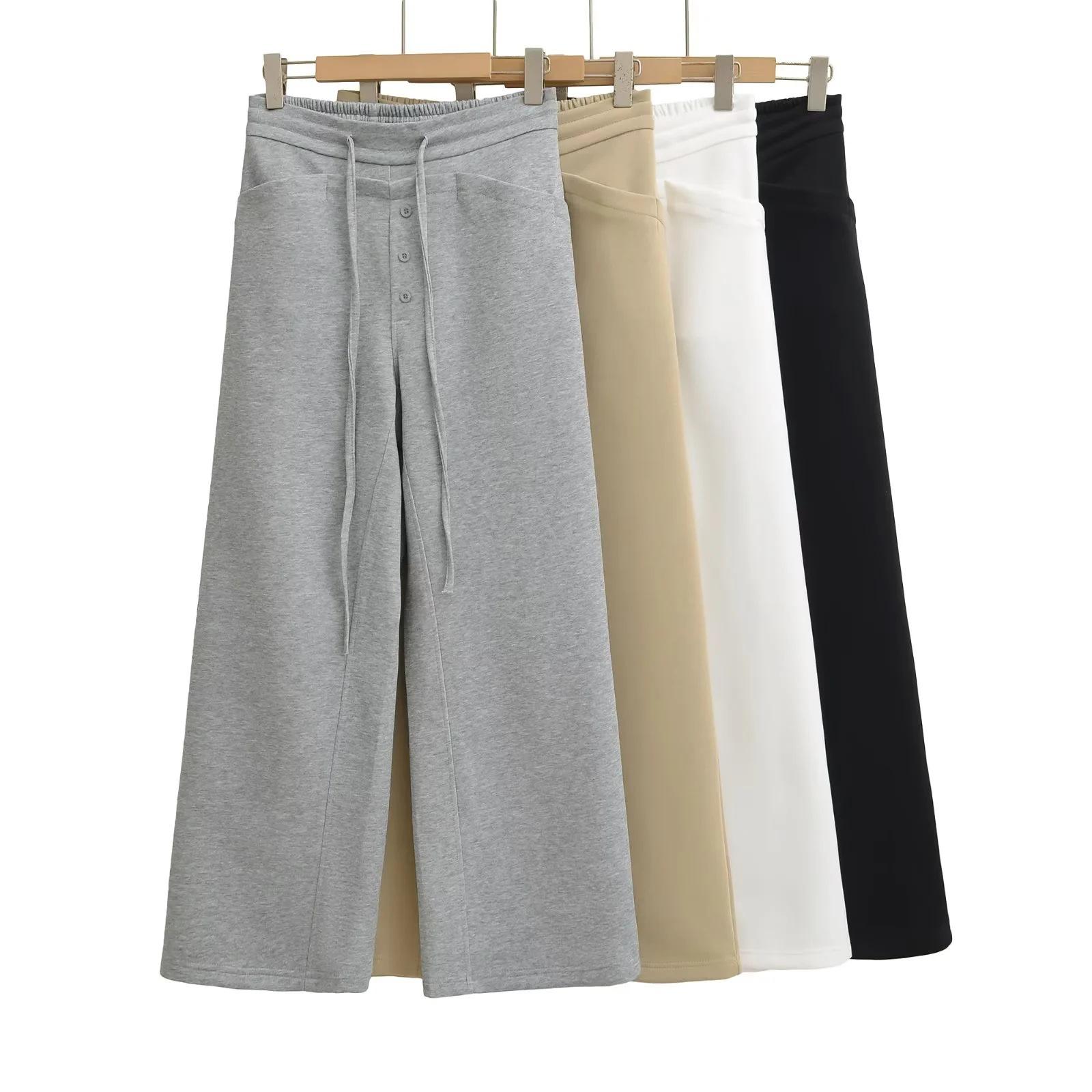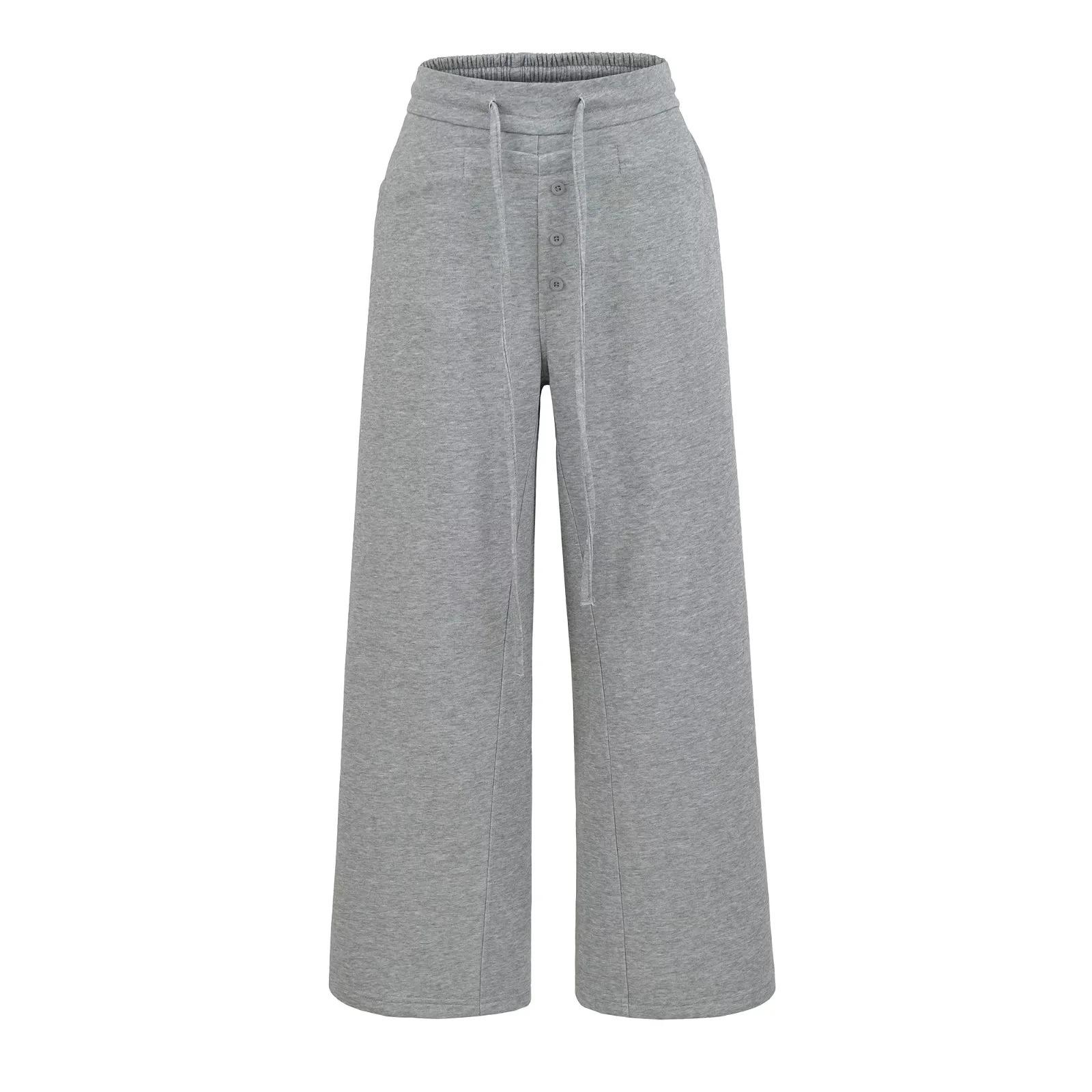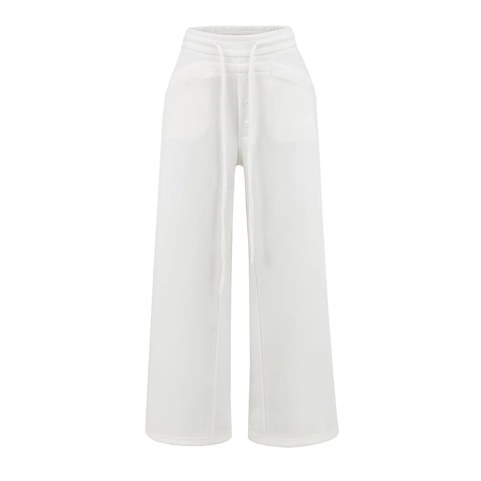 Calças Retrô Americanas com Cordão Cintura Alta Soltas Perna Reta Larga Calças Compridas Casuais Versáteis Emagrecedoras Preguiçosas Novas de Outono Femininas