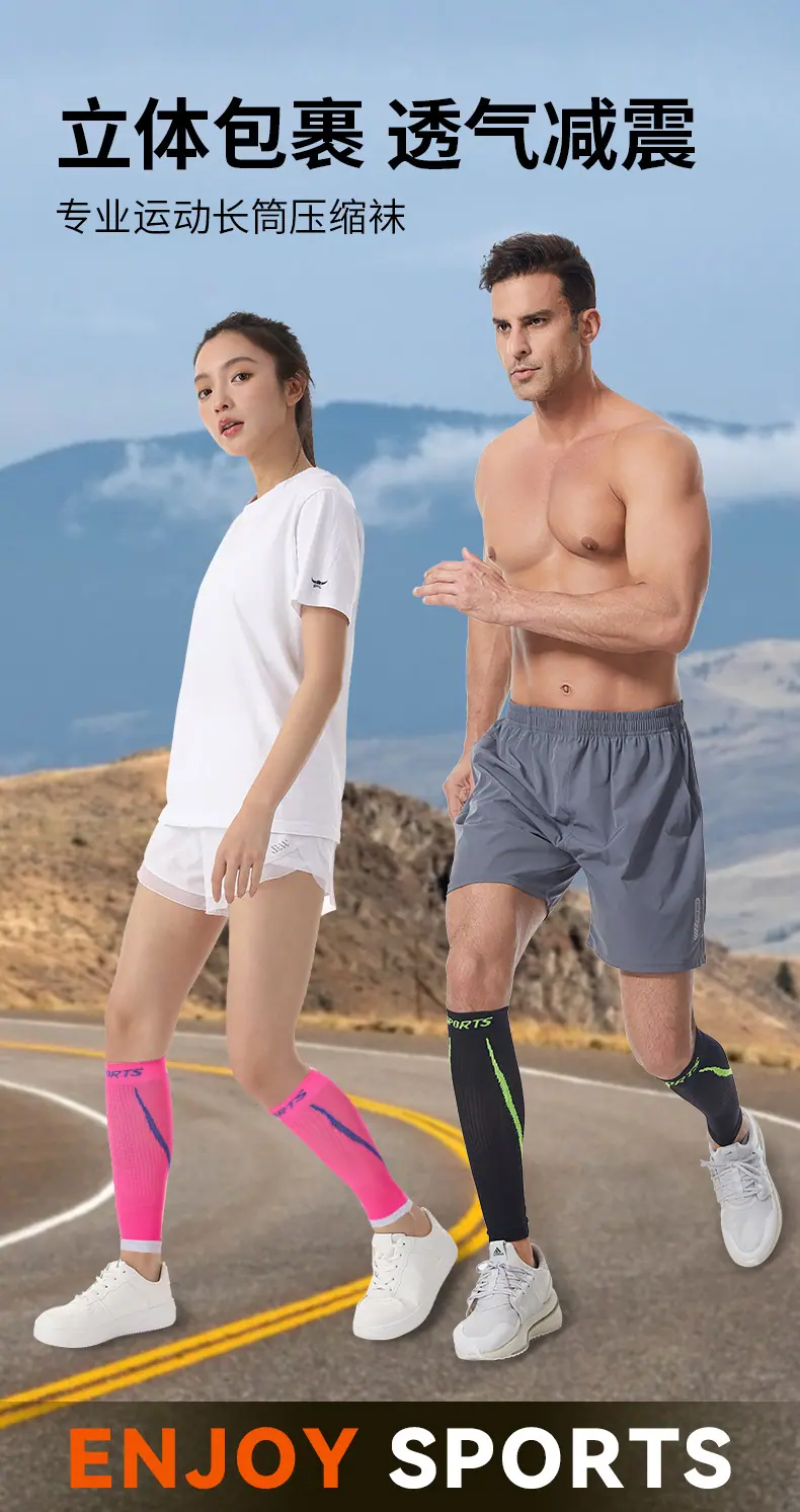 Manguitos de Compressão Finos para Proteção da Panturrilha Quentes para Corrida Profissional de Maratona 3D Envoltório Respirável Absorvente de Choque