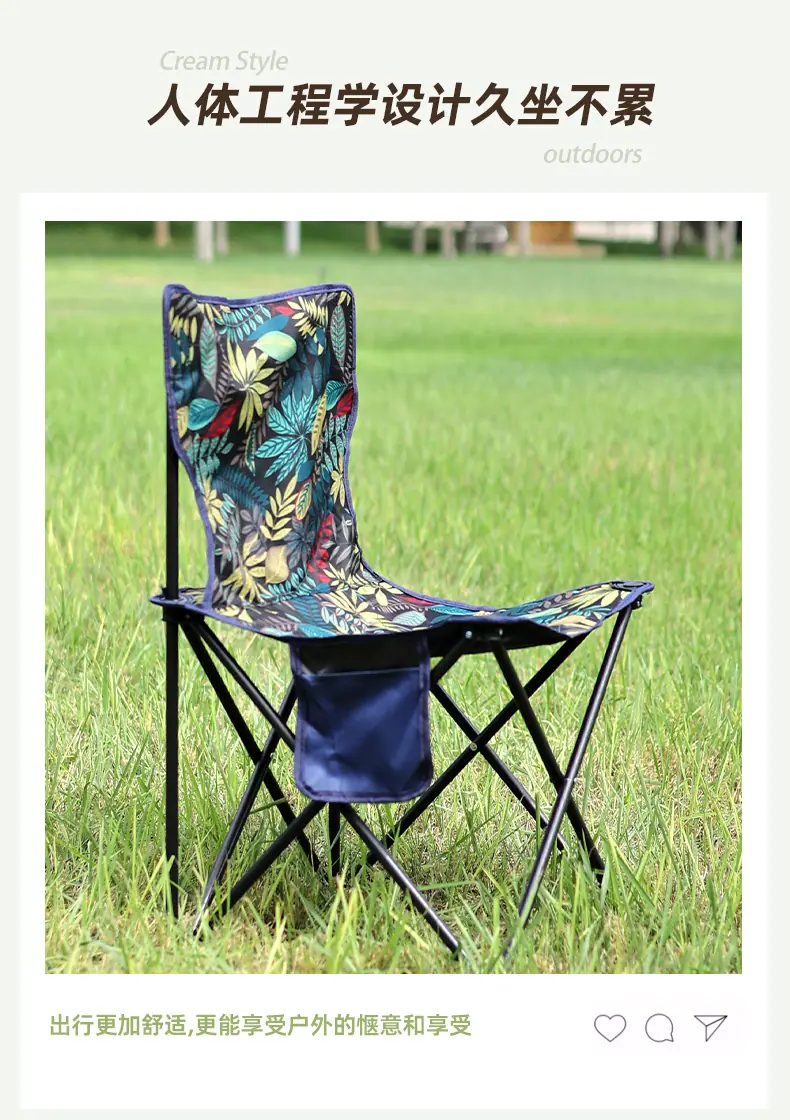 Cadeira Dobrável com Encosto para Acampamento ao Ar Livre, Leve, Lazer, Portátil, para Acampamento, Esboço, Pequena Mazza, Cadeira de Pesca, Atacado