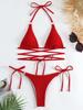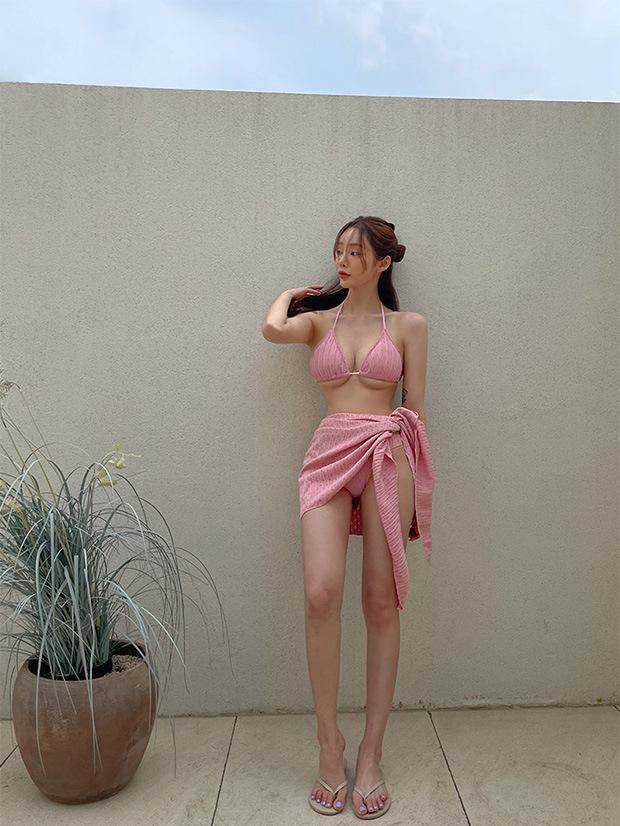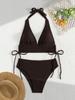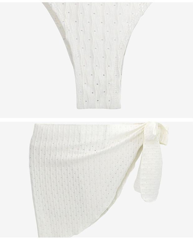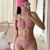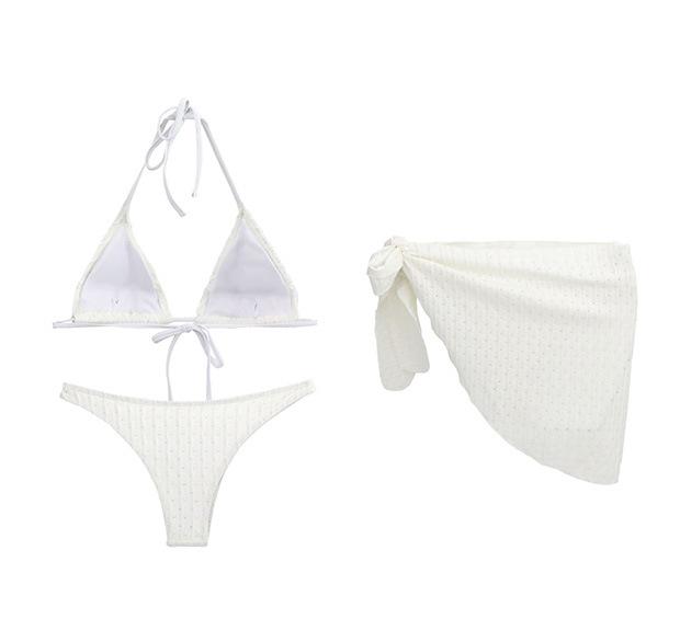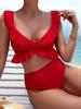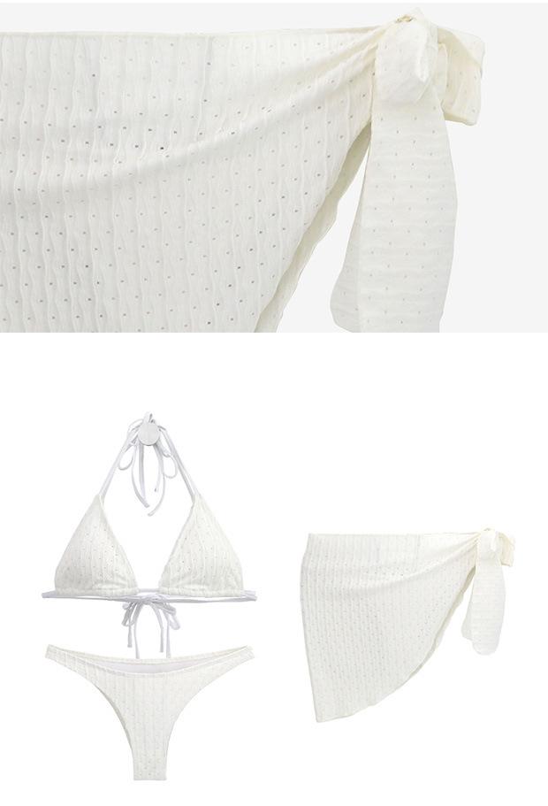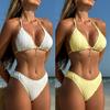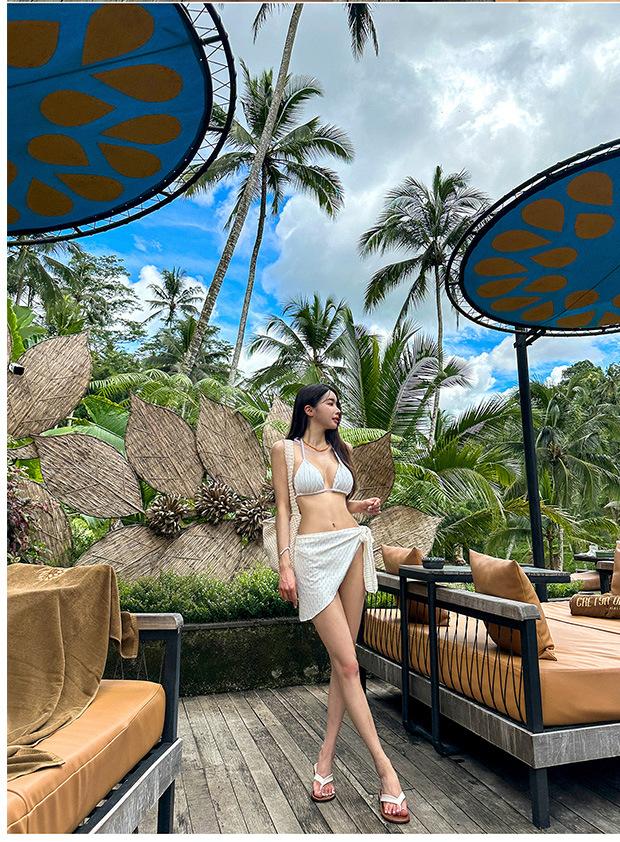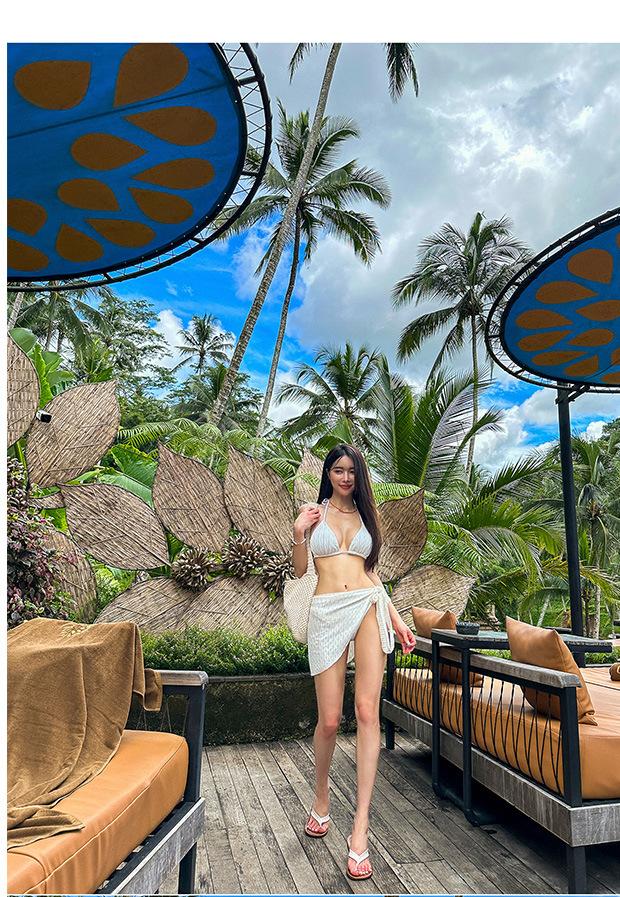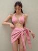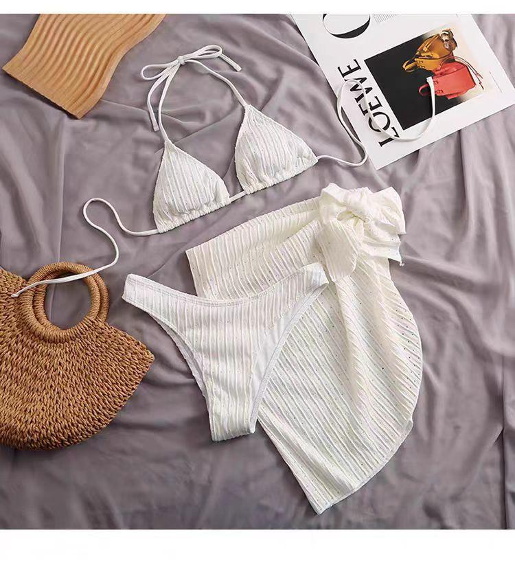Conjunto de Fato de Banho Feminino Trendy Transfronteiriço Novo 2025 de Três Peças em Cor Sólida, Sexy e Simples Moda Praia para Águas Termais em Estilo Europeu e Americano