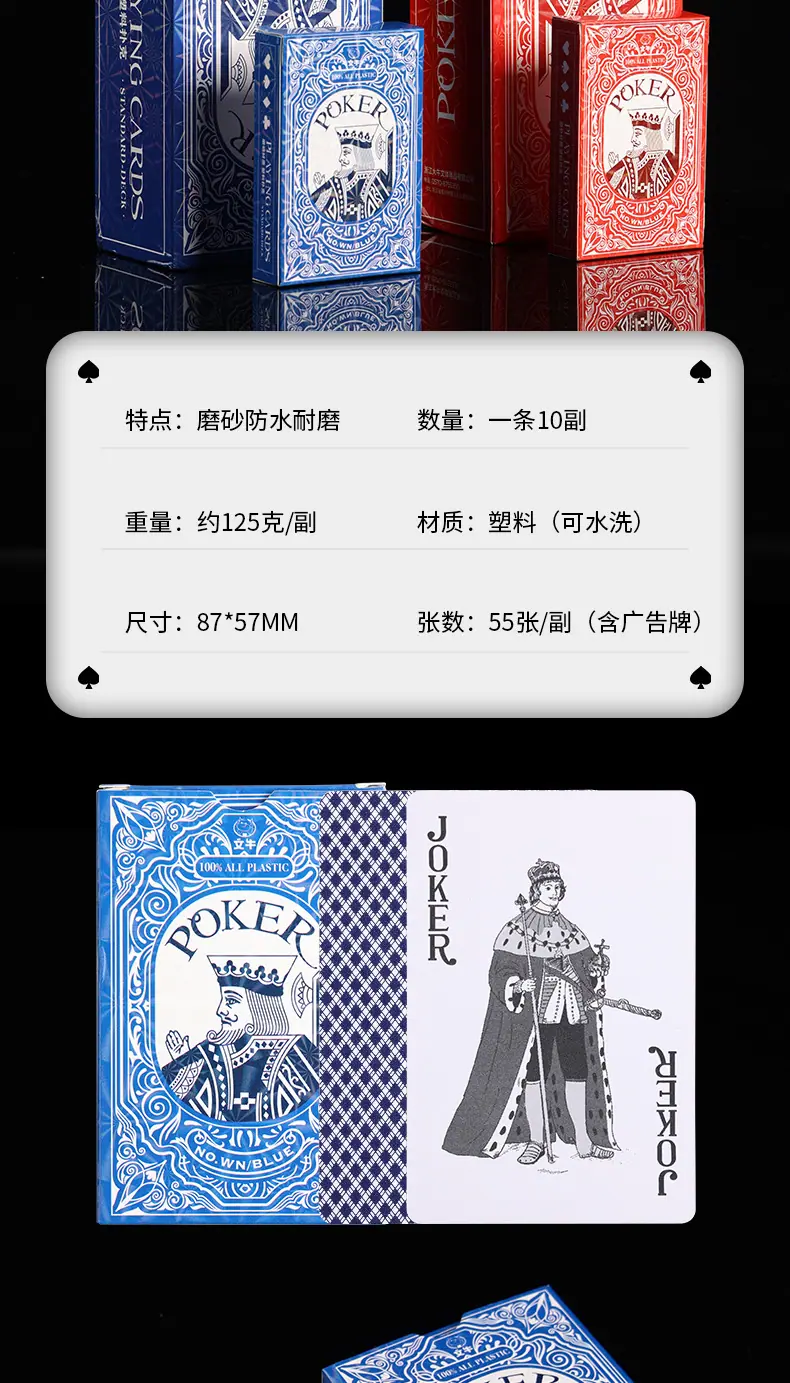 Cartas de baralho de plástico à prova d'água anti-dobráveis resistentes ao desgaste espessadas laváveis foscas proprietário grande palavra cartas de baralho de PVC pôquer