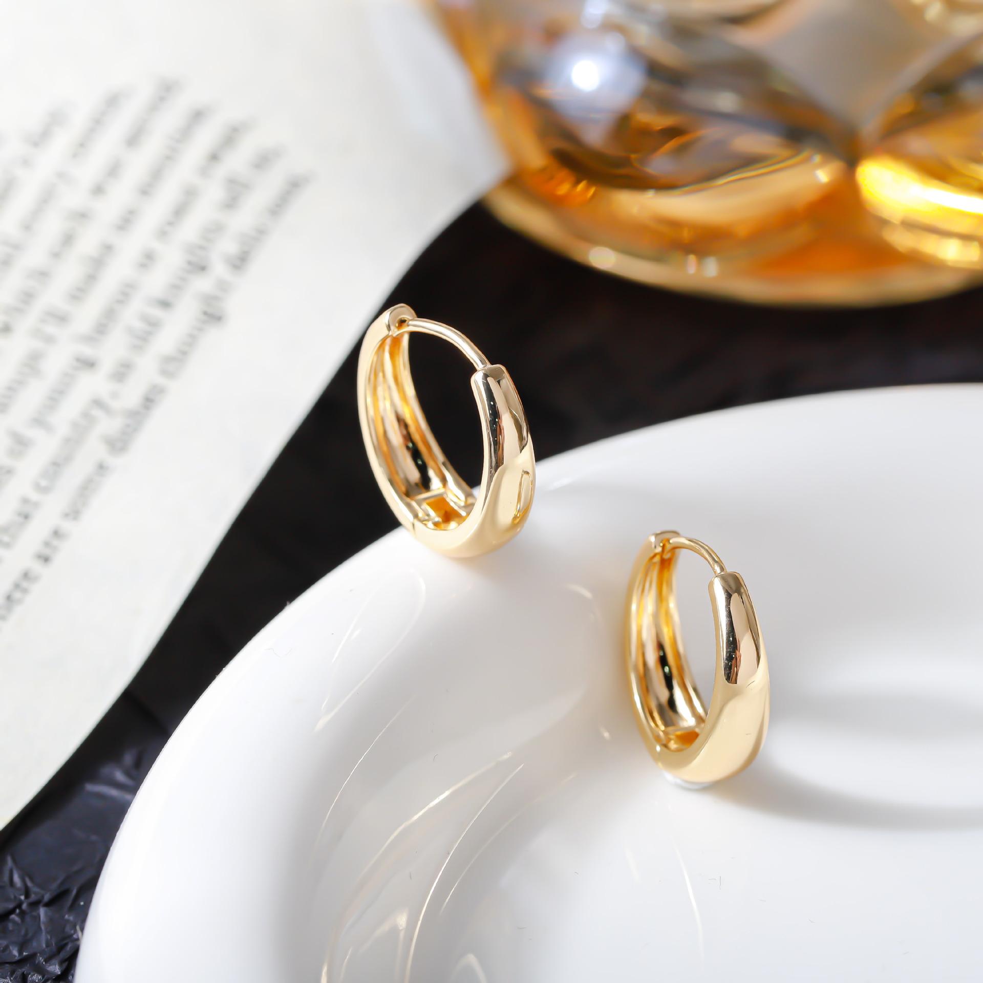 Brincos de argola larga elegantes europeus e americanos transfronteiriços femininos que combinam com tudo, brincos de nicho de argola lisa de alta qualidade, brincos de moda simples requintados