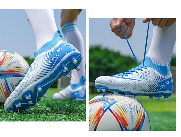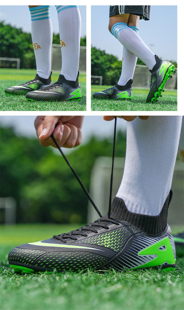 Chuteiras de Futebol de Cano Alto com Cadarço Transfronteiriças para Adolescentes, Homens e Mulheres, Adultos, Travas Longas, Treino de Competição, Atacado, Respiráveis e Antiderrapantes