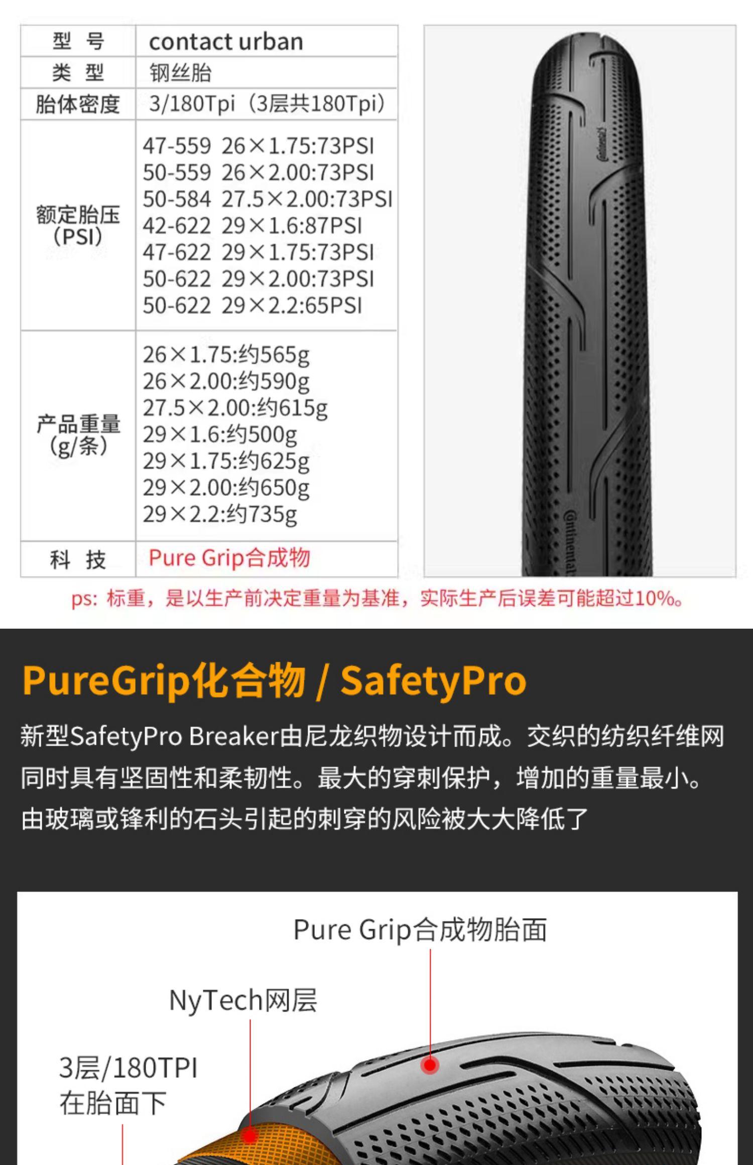 Contact urban wire tire 26x2.2 (55-559) (yellow label)