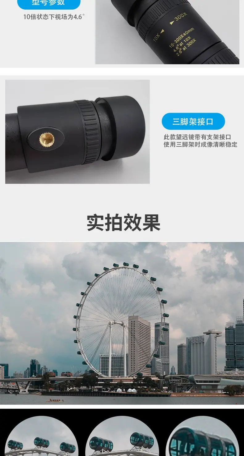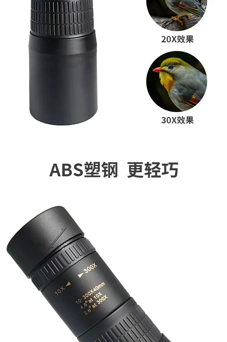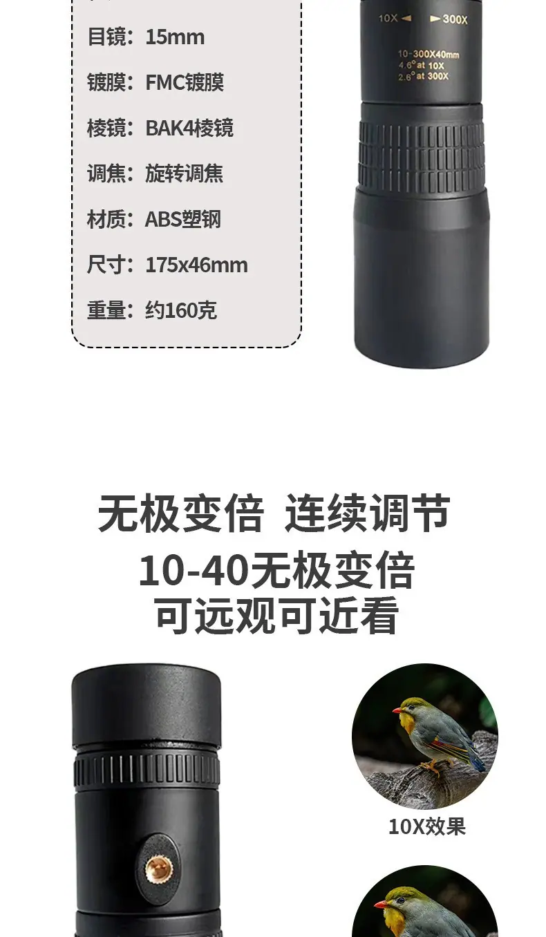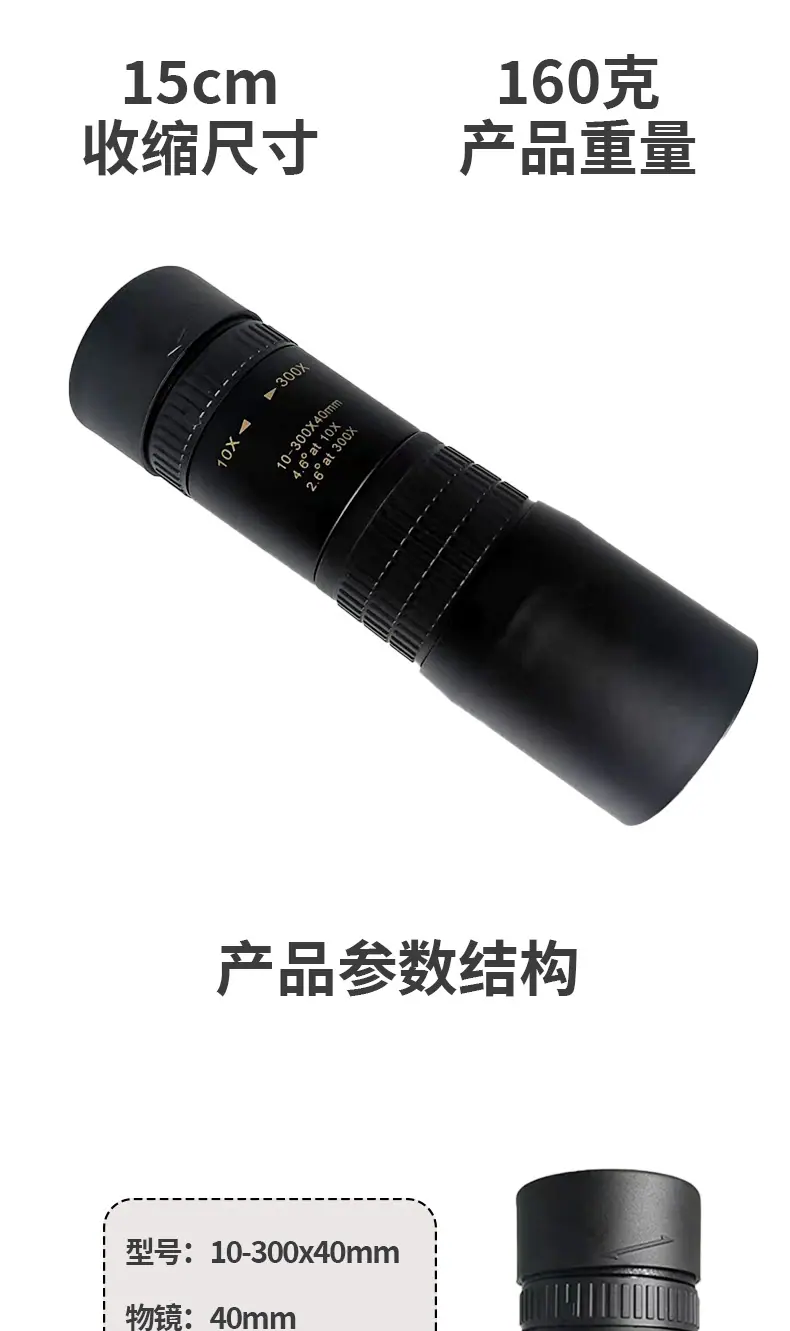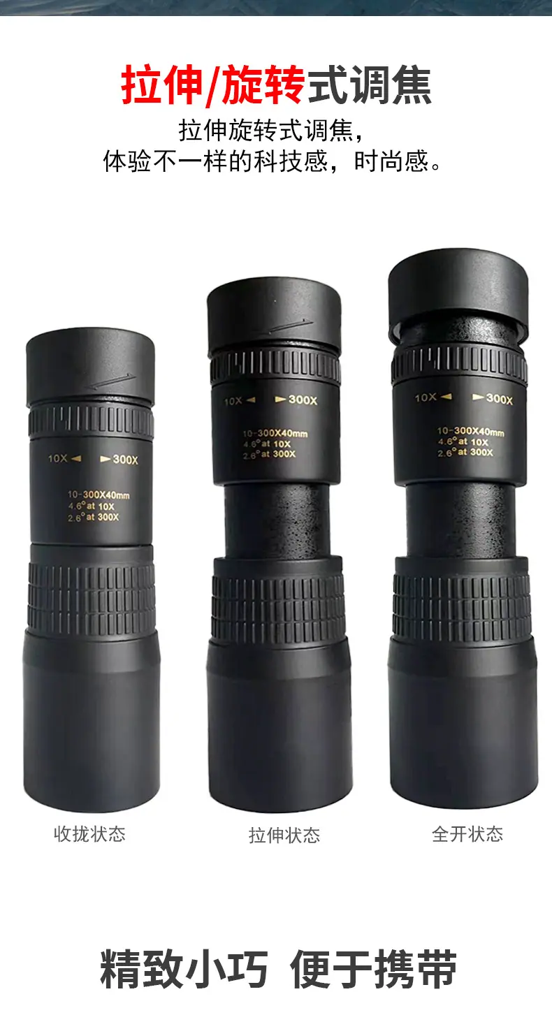 10-300x40 telescope, 10-300x40 telescope + phone clip, 10-300x40 telescope+phone clip+tripod