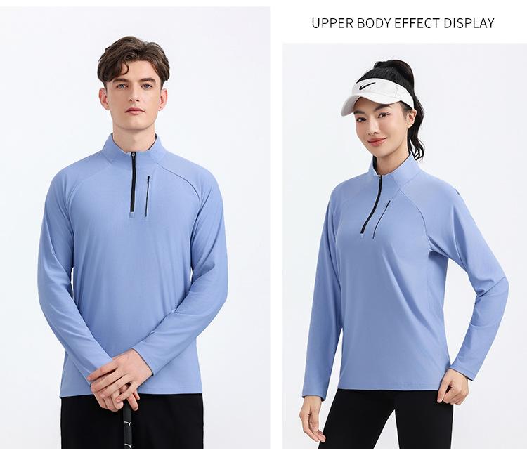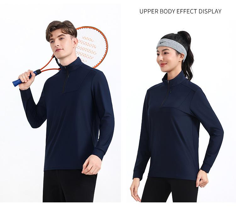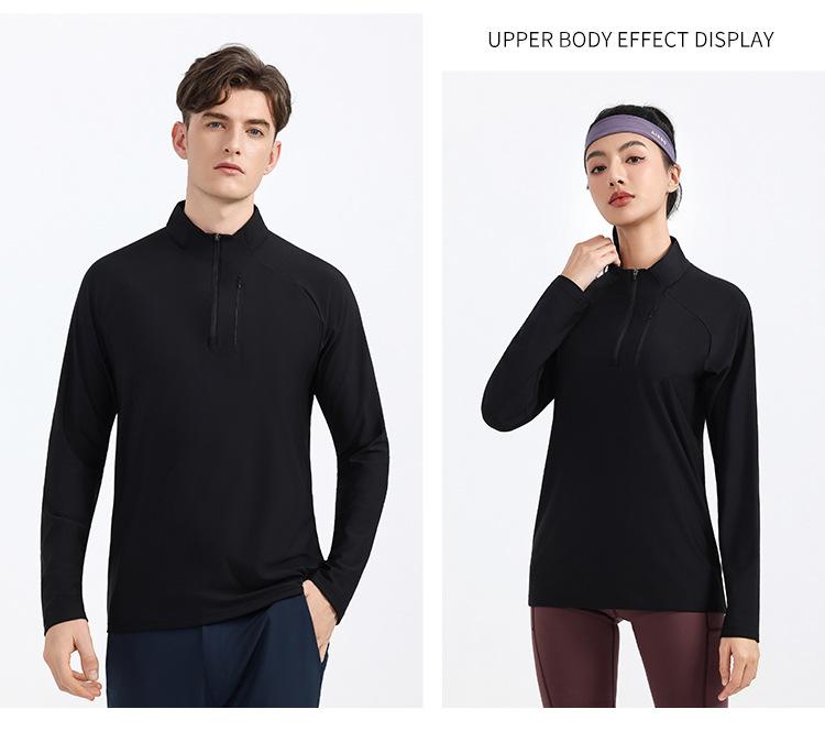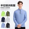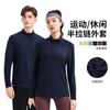 Jaqueta masculina transfronteiriça para esportes ao ar livre, top de secagem rápida, roupa de treino para corrida, manga longa, meio zíper, jaqueta casual, logo estampado