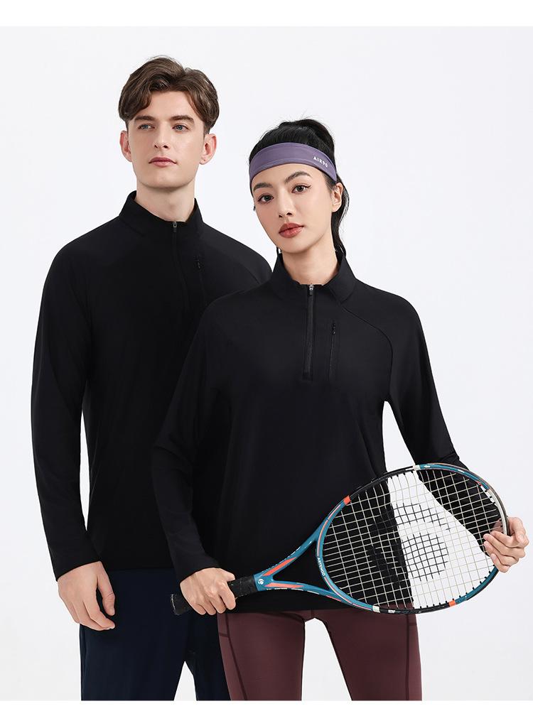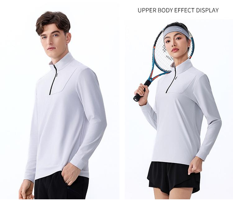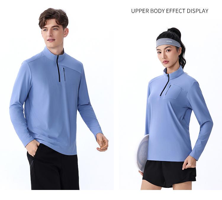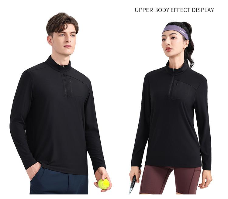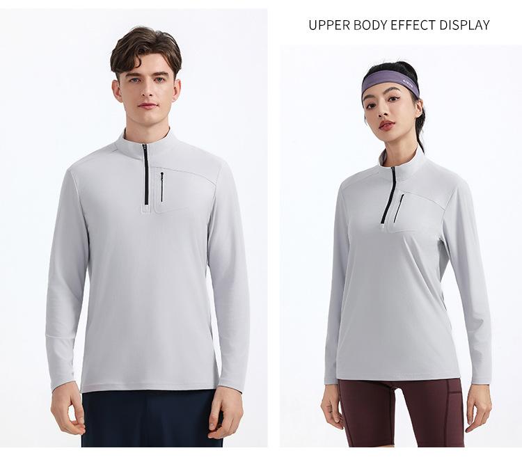 Jaqueta masculina transfronteiriça para esportes ao ar livre, top de secagem rápida, roupa de treino para corrida, manga longa, meio zíper, jaqueta casual com logo estampado