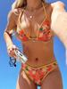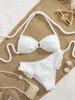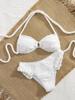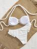 Novo Conjunto de Biquíni Elegante de Festa Sexy para Praia Feminino, Cor Sólida, Decote Halter, Estilo Pelúcia, Bainha com Babados