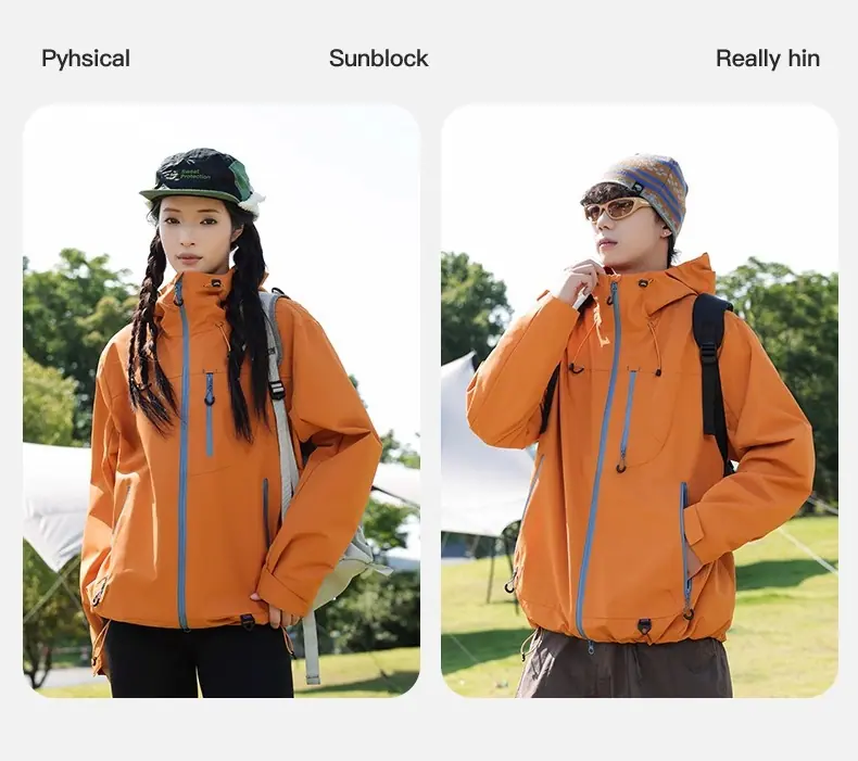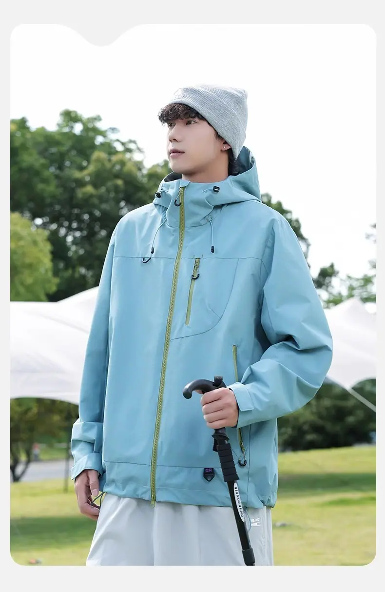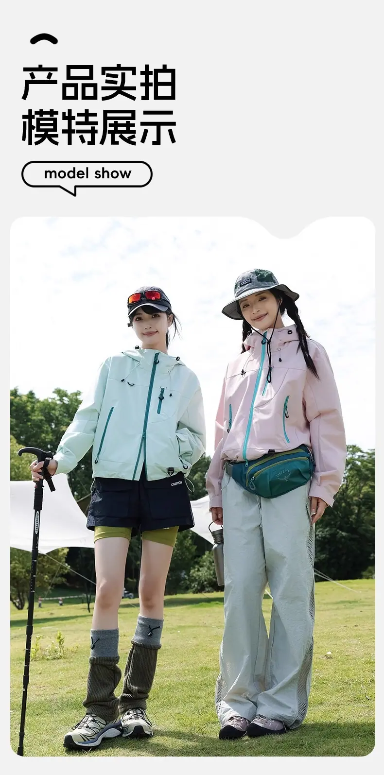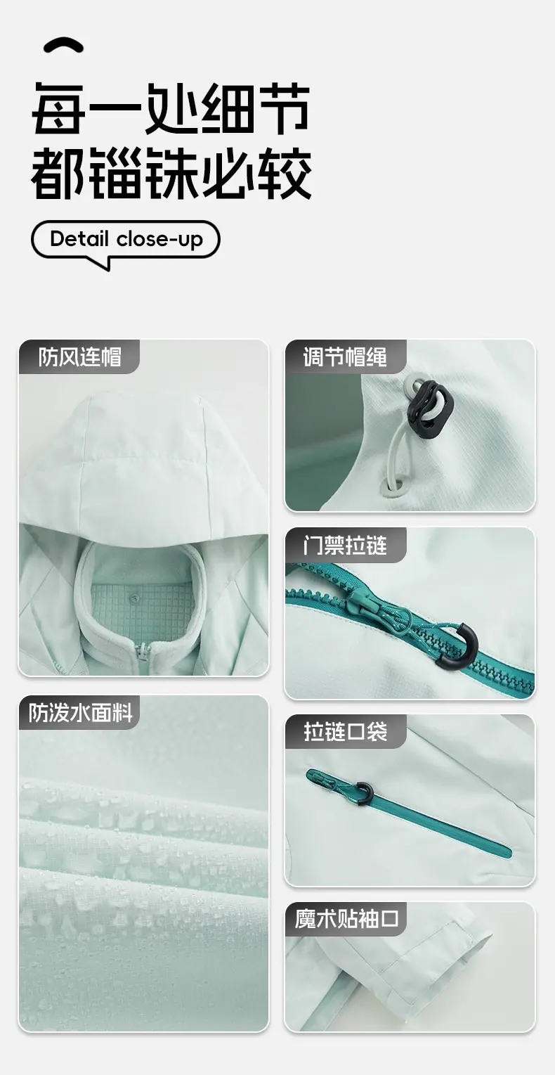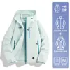 Marca mesmo estilo jaqueta feminina curta três em um para casal, à prova de vento e à prova d'água, para viagens e montanhismo