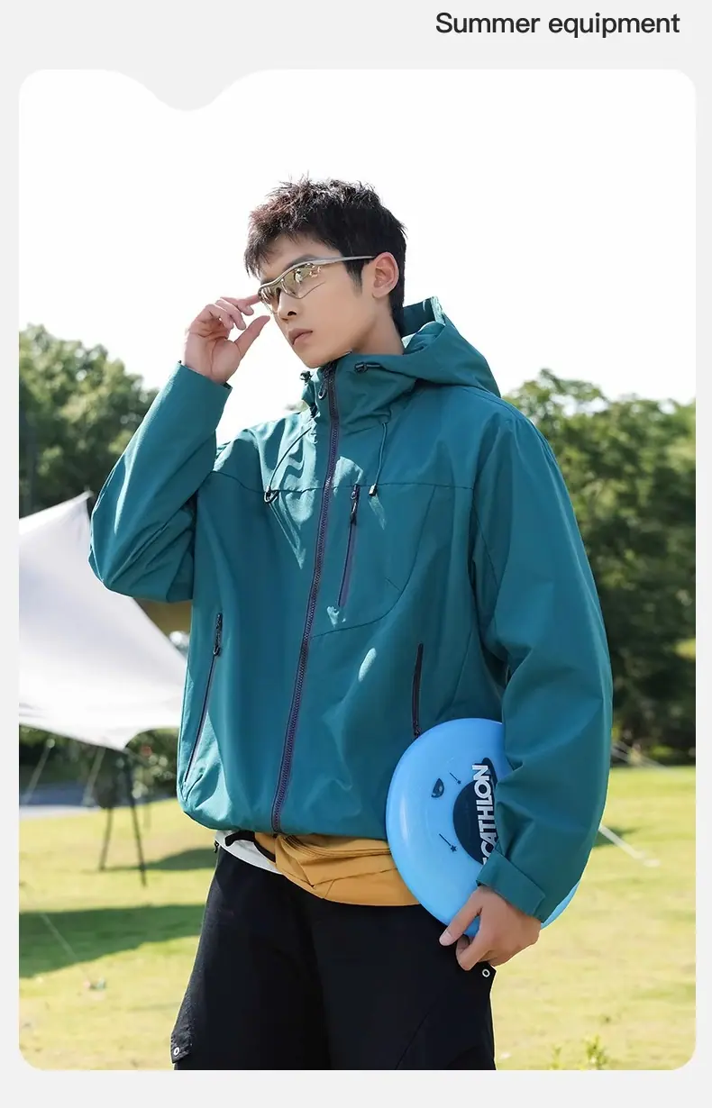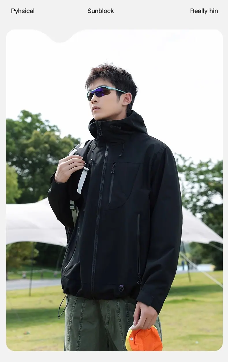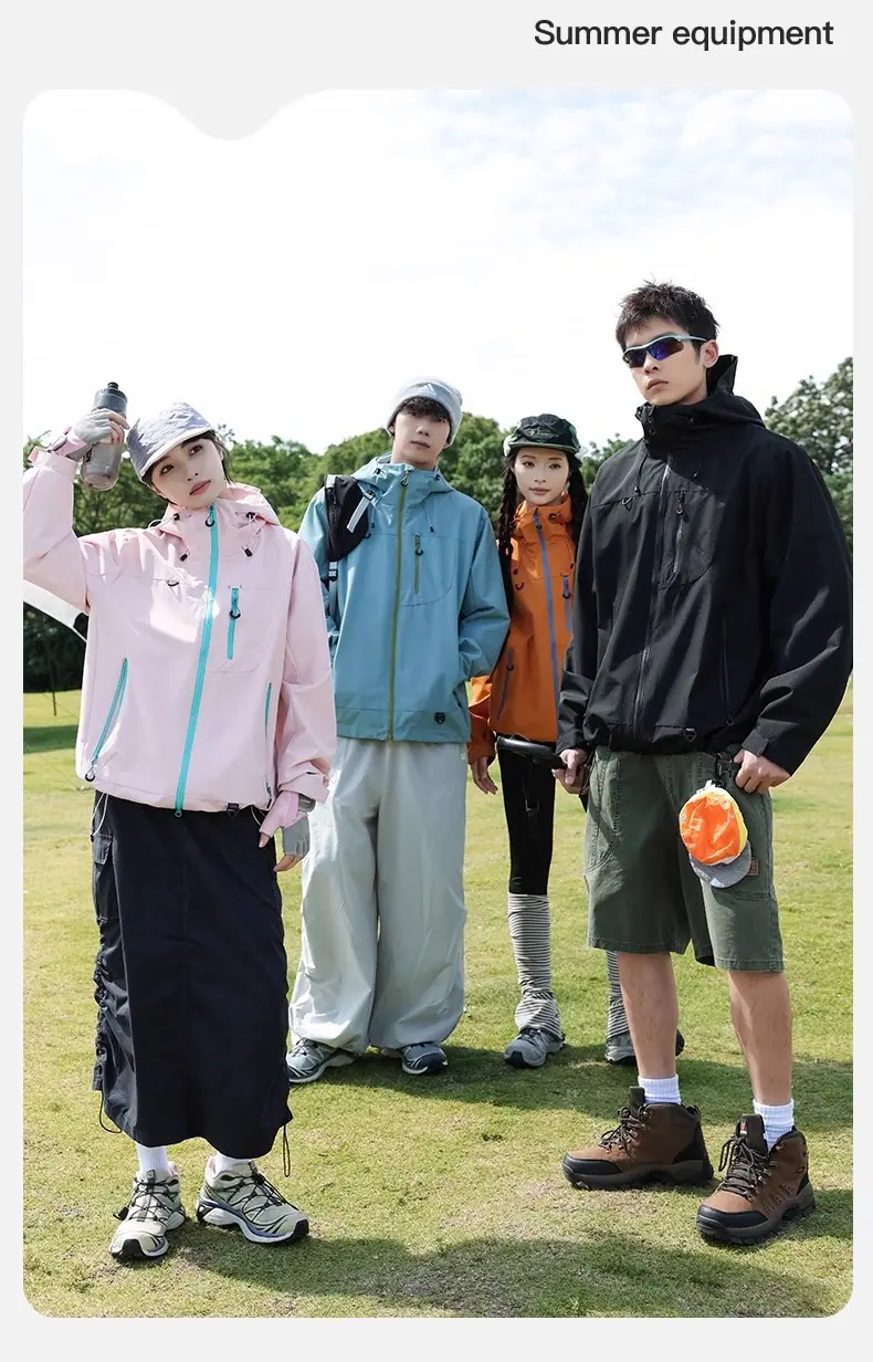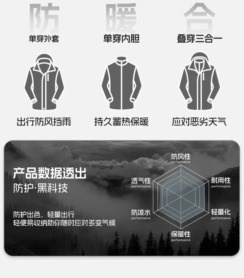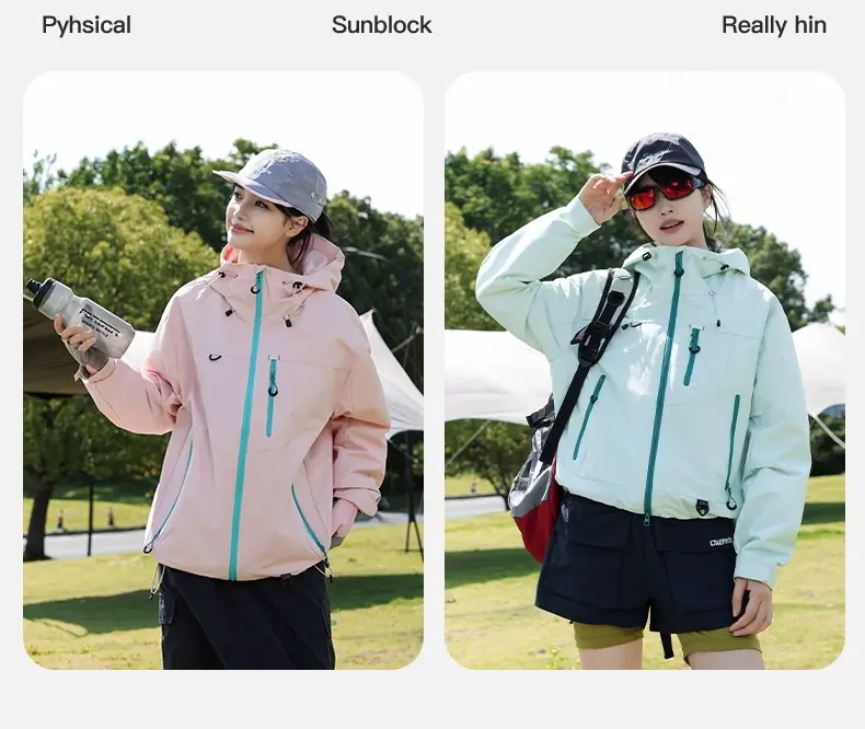 Marca mesmo estilo jaqueta feminina curta três em um para casal, à prova de vento e à prova d'água, para viagens e montanhismo