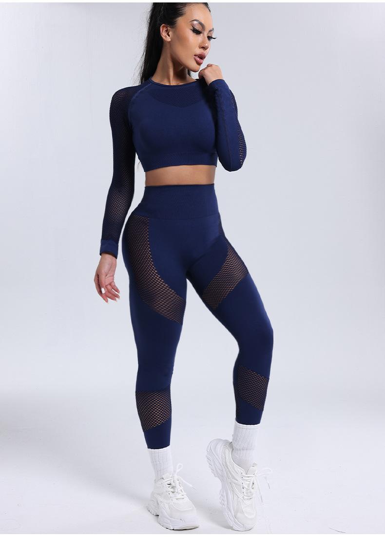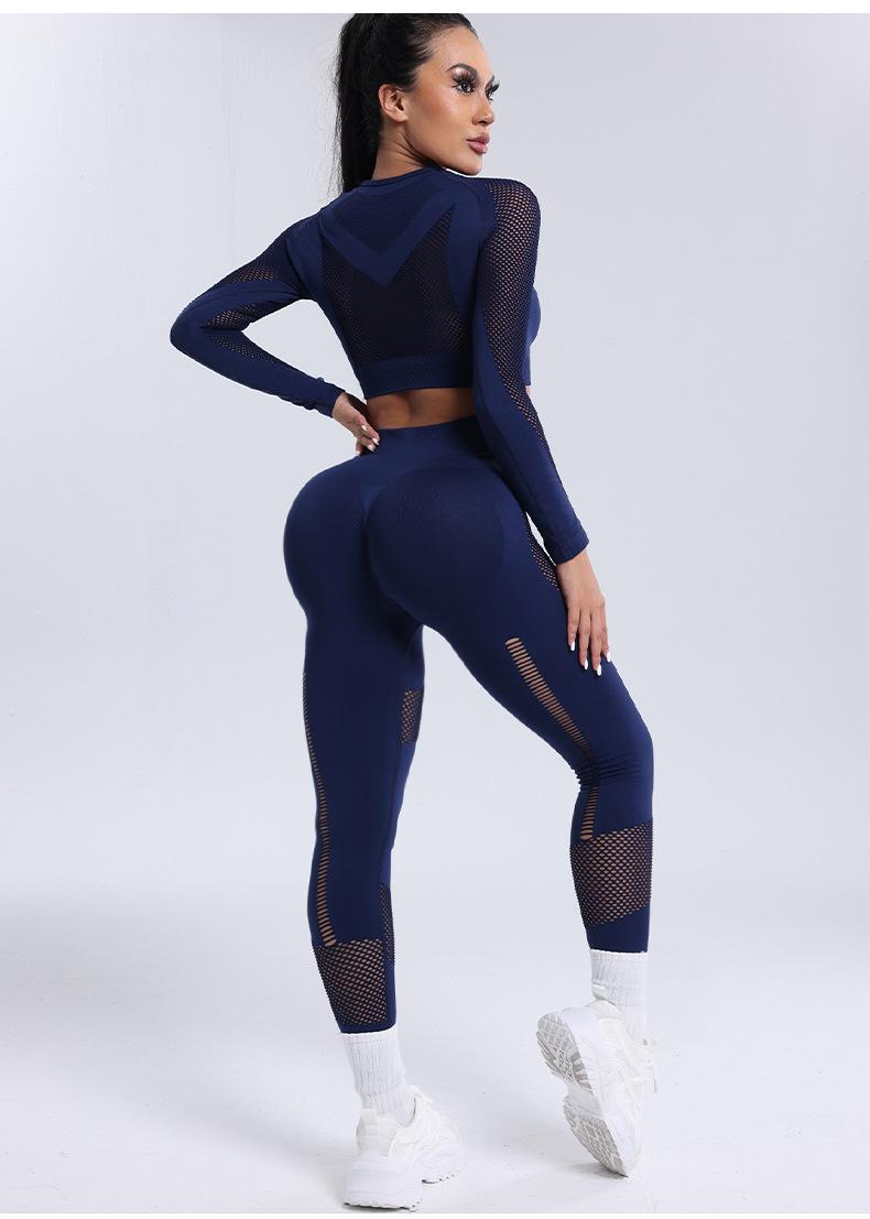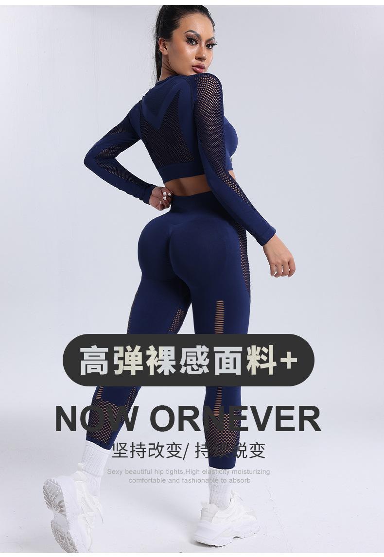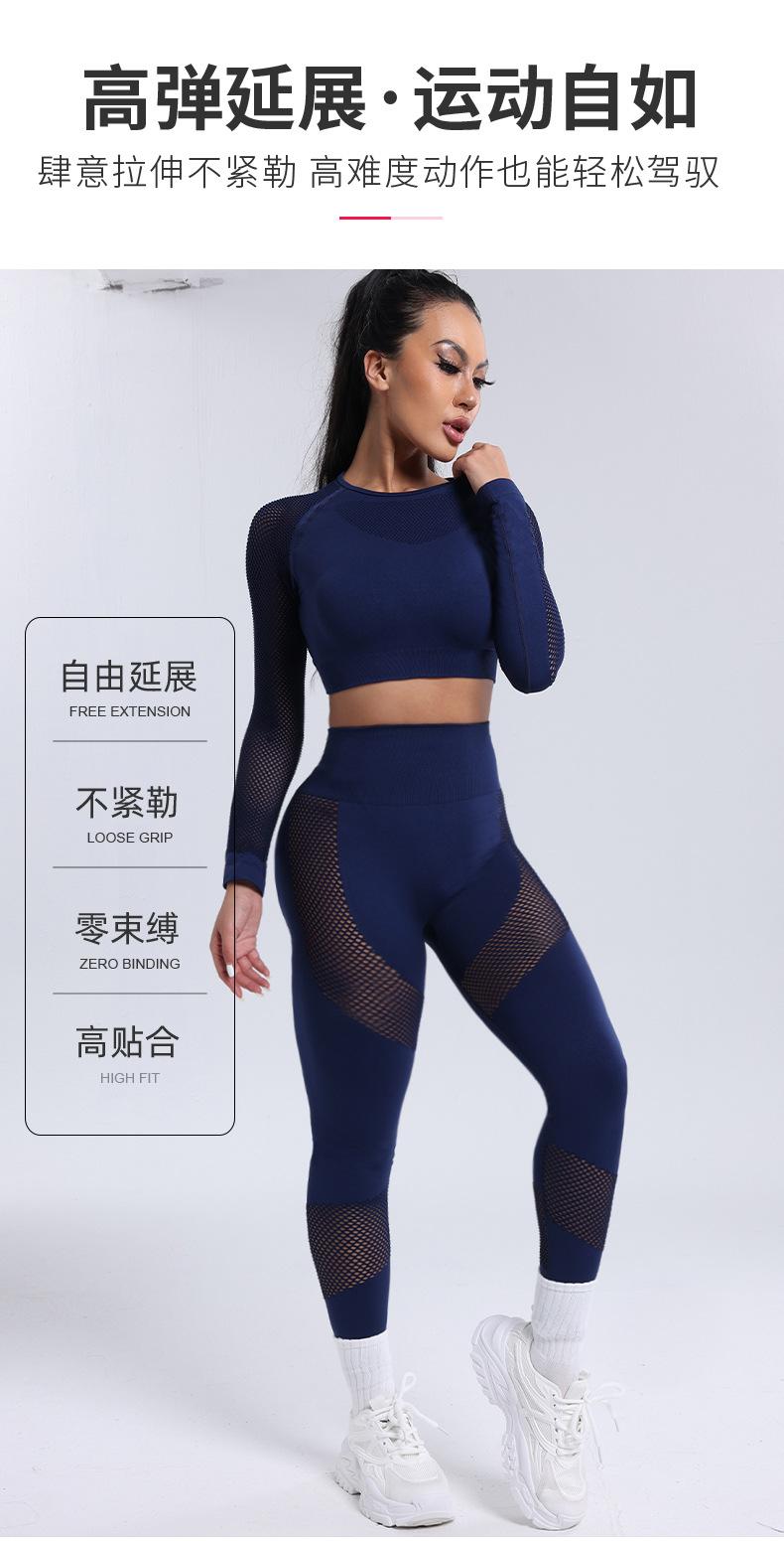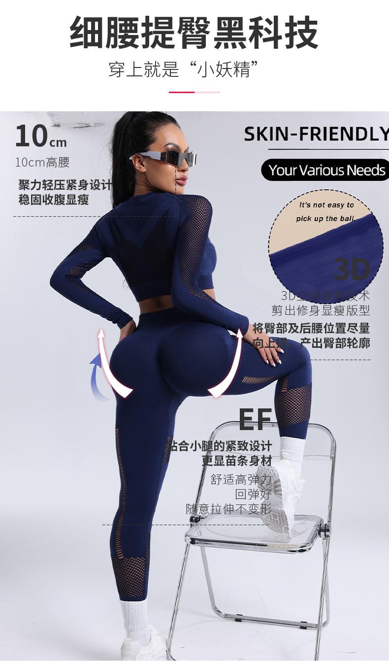 Roupa Europeia e Americana Transfronteiriça Nova Calça Esportiva de Manga Comprida Vazada Roupa de Ioga Novo Conjunto de Ioga Fitness Atacado