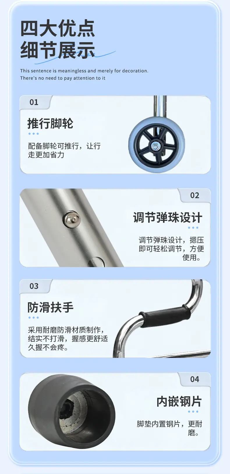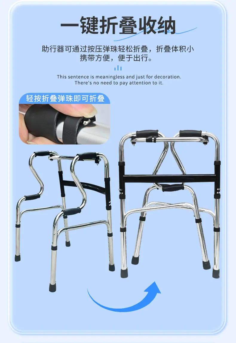 Andador de Liga de Alumínio Fabricante Reabilitação Pós-operatória Auxiliar de Caminhada Dobrável Idoso Antiderrapante Auxílio para Caminhada