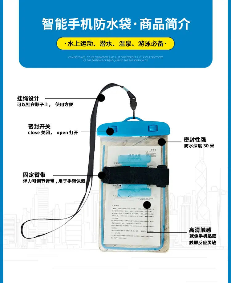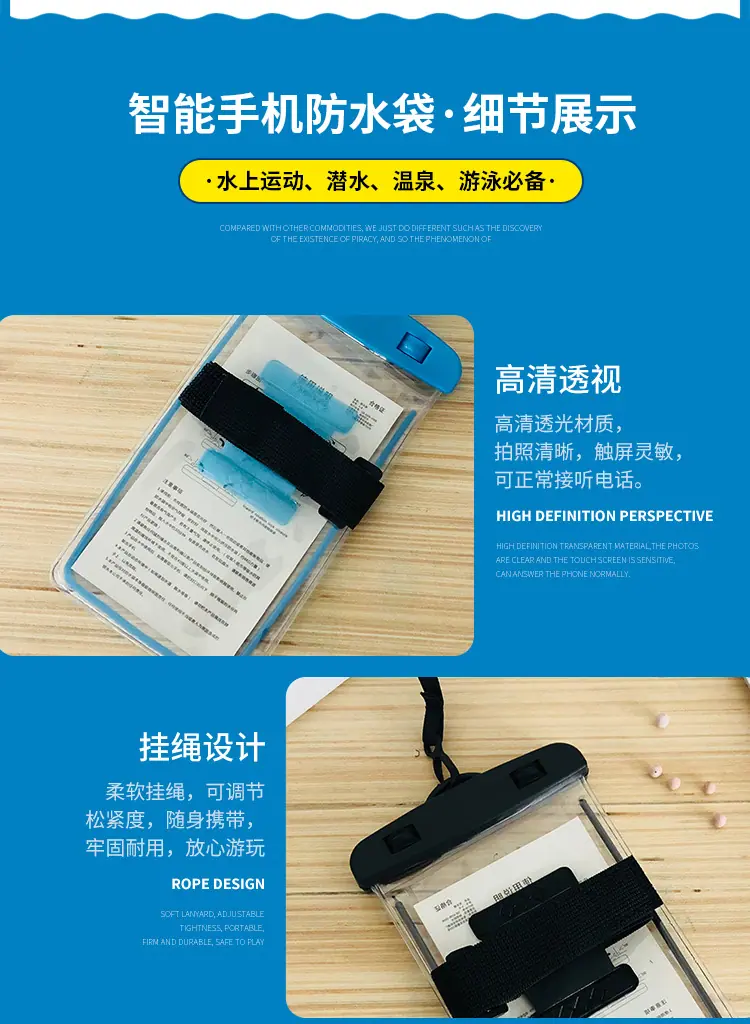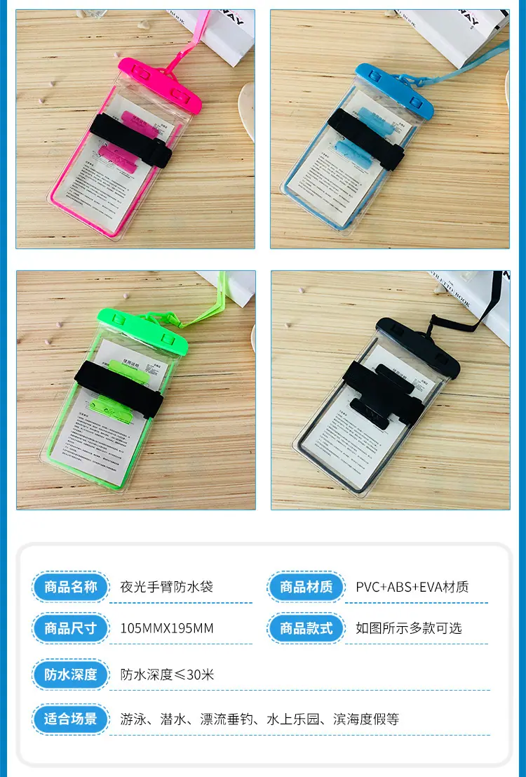 Fornecimento Direto da Fábrica Bolsa Universal Luminosa de Braço à Prova d'Água Transparente para Rafting Esportes ao Ar Livre Mergulho Bolsa Portátil com Tela Sensível ao Toque
