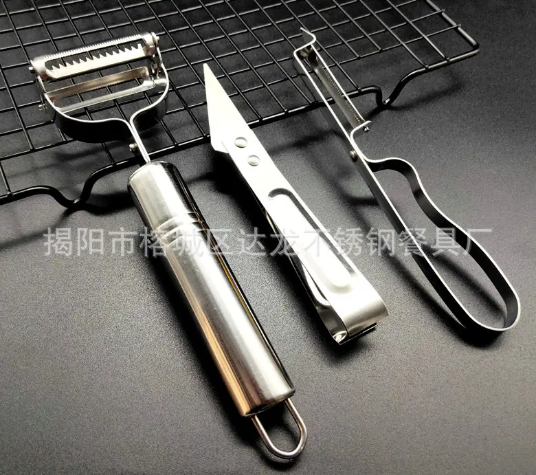 Embalagem: 3 estilos em um saco como um conjunto, 300 conjuntos/caixa, descascador de escama de peixe embalado individualmente 1200 unidades/caixa