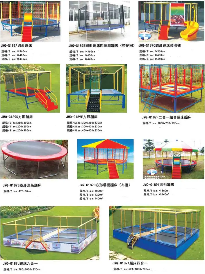Tubos de aço galvanizado são pintados e fosfatados para evitar ferrugem, e o nylon é tecido artificialmente para melhor elasticidade e durabilidade. Grandes instalações são transportadas por logística, o frete é pago na entrega, consulte para obter detalhes. Nossa fábrica aceita todos os tipos de trampolins personalizados 【Características do Produto】:Estrutura de coluna estrutural de metal galvanizado, colocada ao ar livre nunca enferrujará, fosfatização com pintura cozida. ?Processo: Fosfatização corte soldagem protetiva retificação pulverização de zinco pintura cozida montagem experimental. [Embalagem do produto]: A parte de ferro do produto é feita de algodão + filme, e a parte de plástico é feita de filme bolha + filme plástico