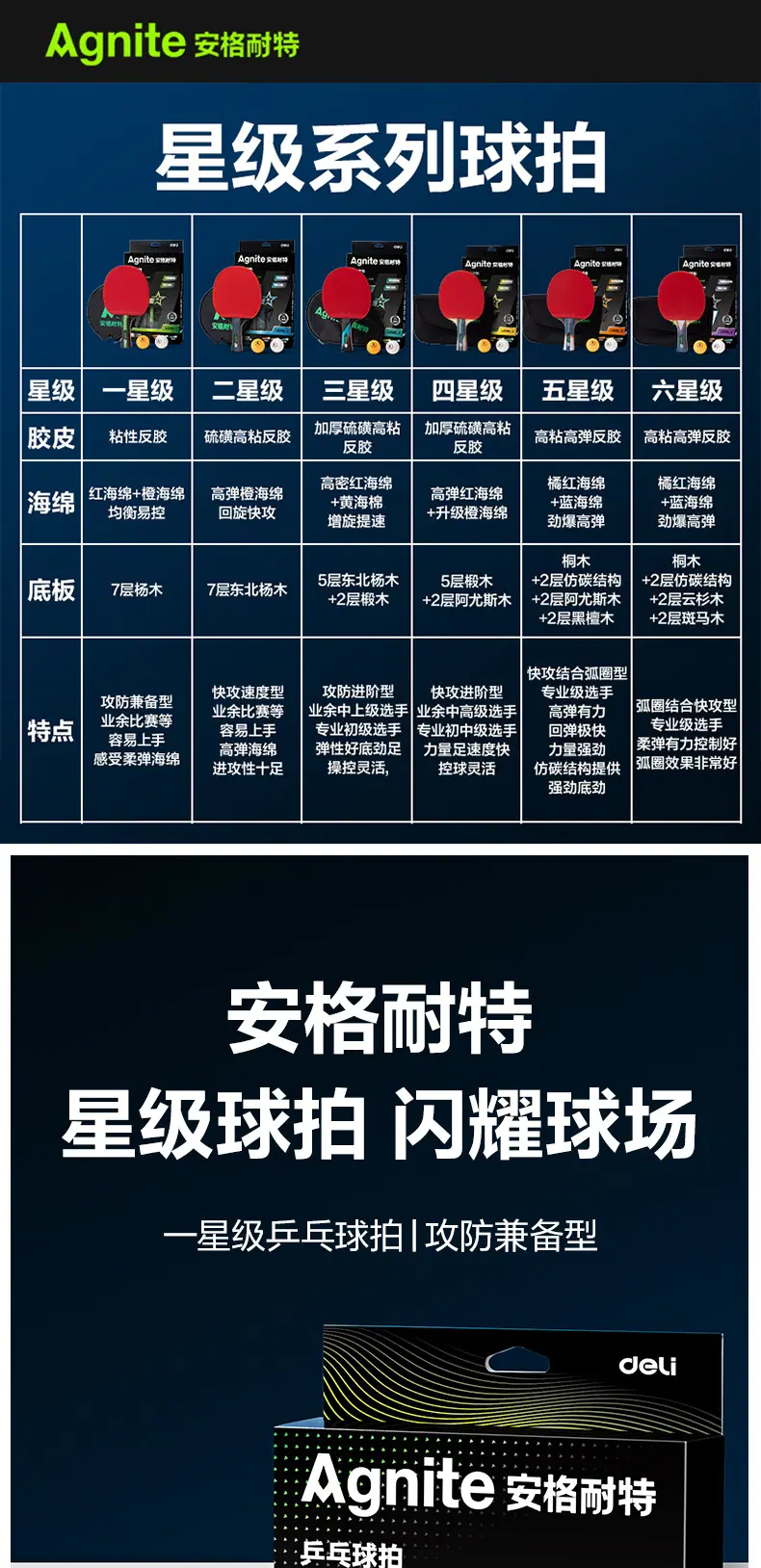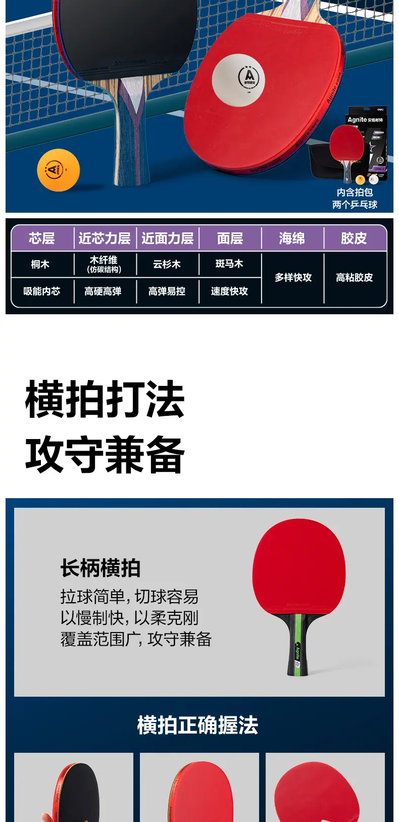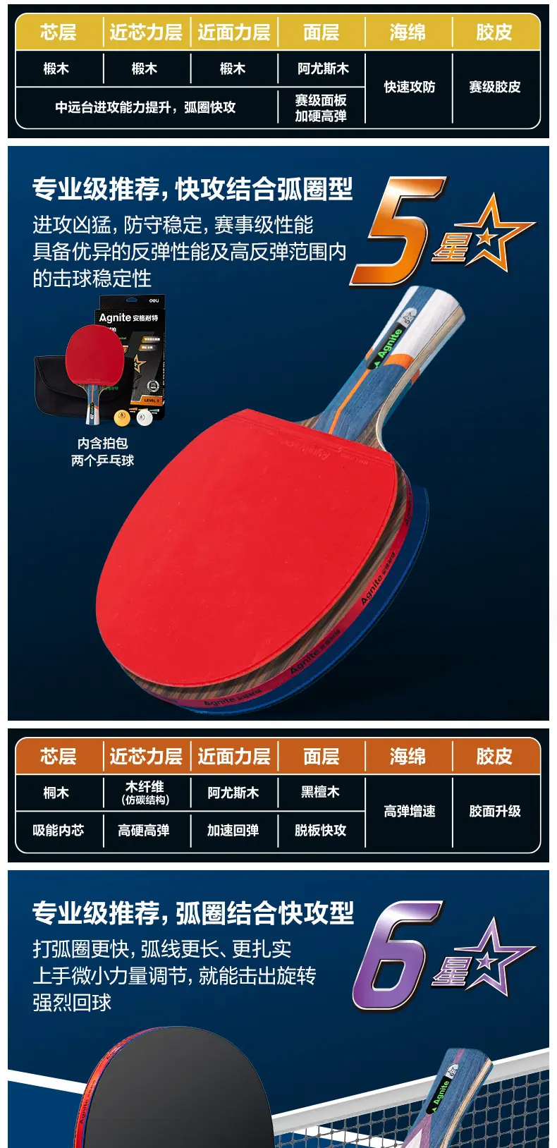 Angerite fh251 one-star table tennis racket horizontal racket (single pack), Angerite fh252 two-star table ten...