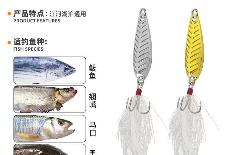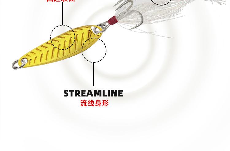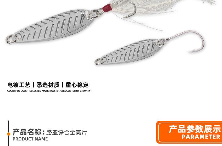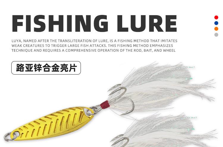 Lantejoulas de liga de zinco Luya 2,5g3,5g5g com anzol simples 7g pena garatéia isca cavala boca de cavalo