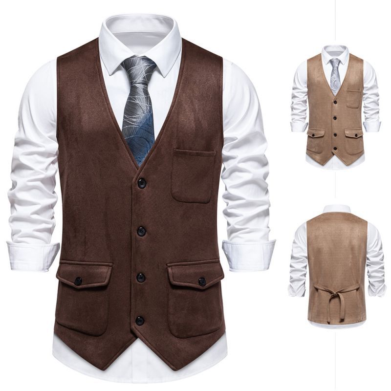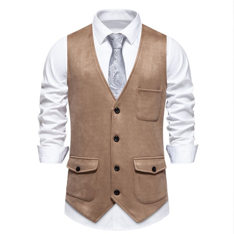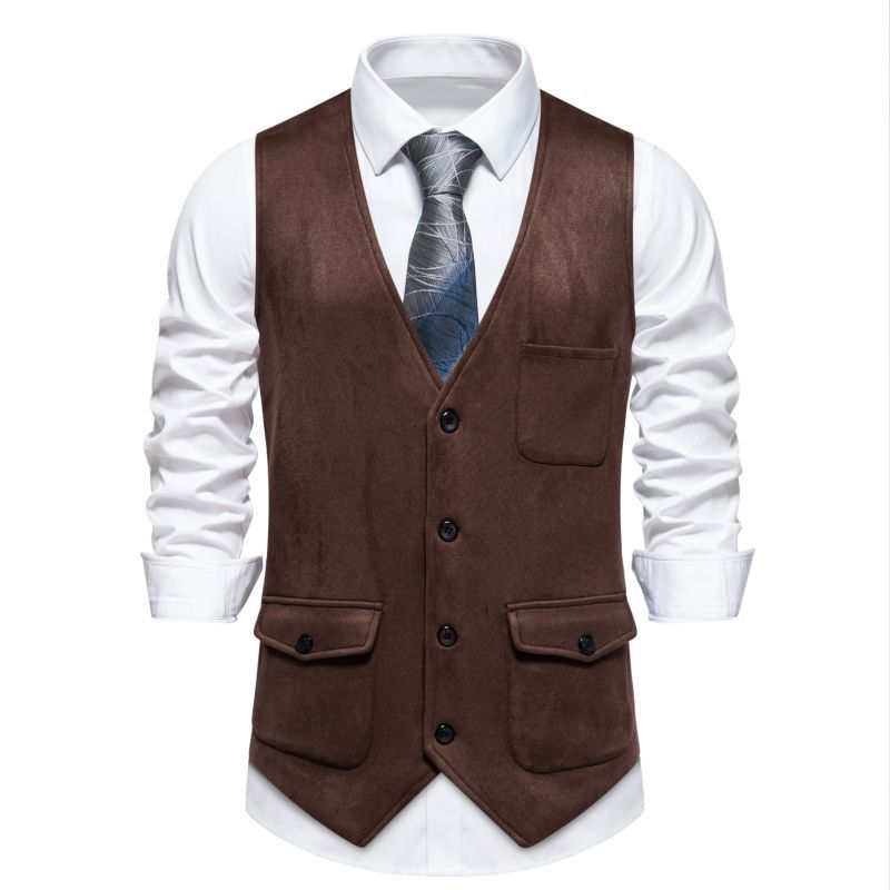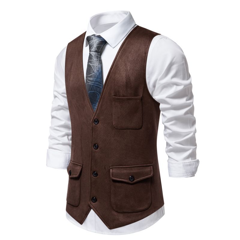 Novo Verão 2024 Tamanho Europeu Amazon Colete Masculino de Veludo Casual Transfronteiriço de Couro de Abotoadura Simples
