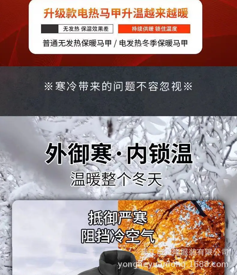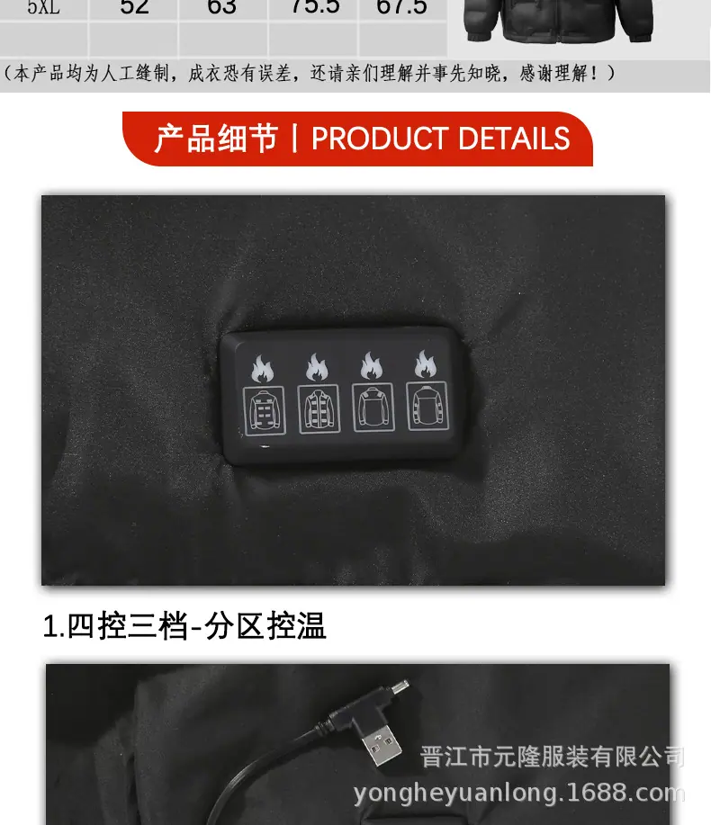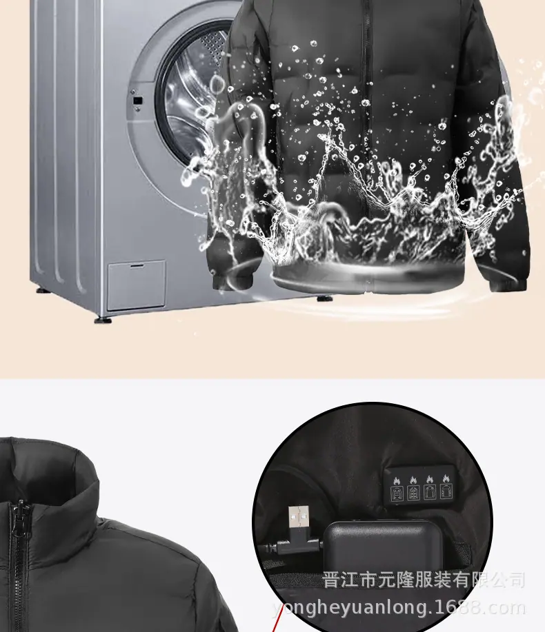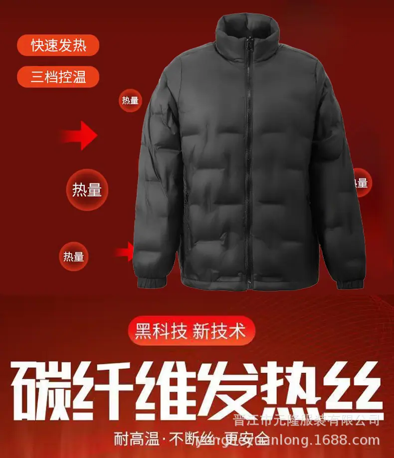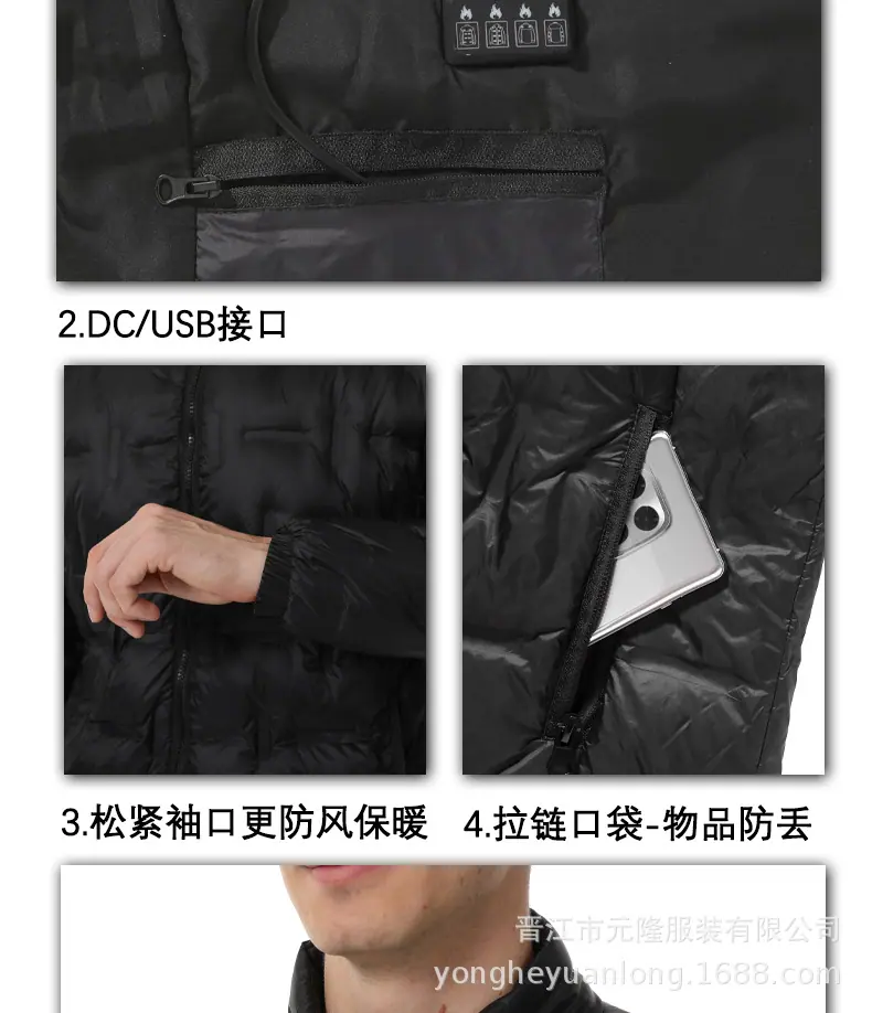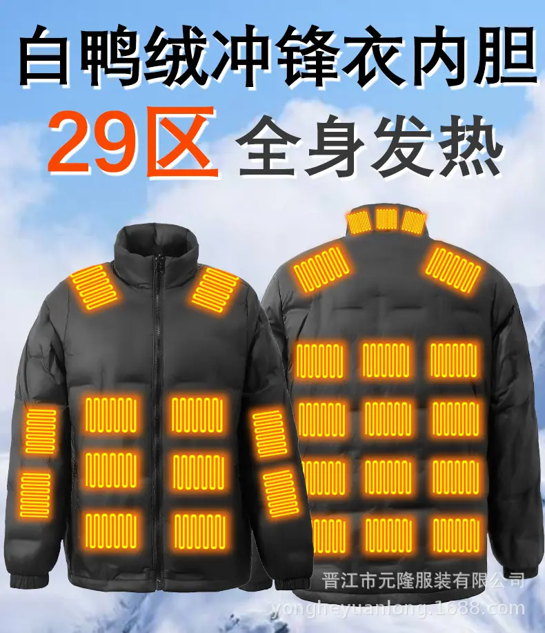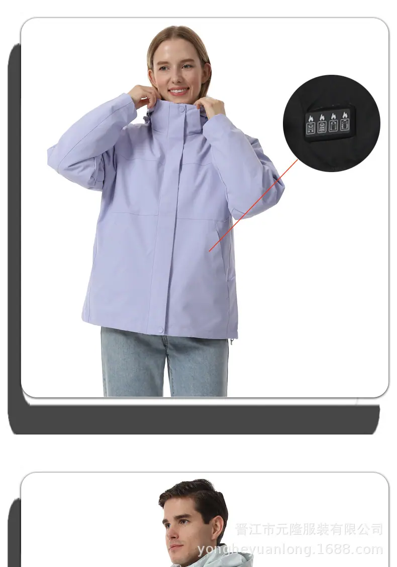 Jaqueta Puffer Inteligente Aquecida de Inverno Transfronteiriça para Exterior Três-em-Um Quente com Aquecimento Corta-vento