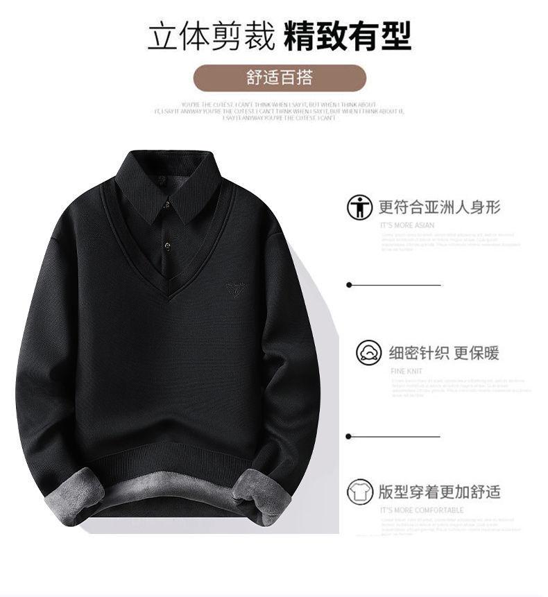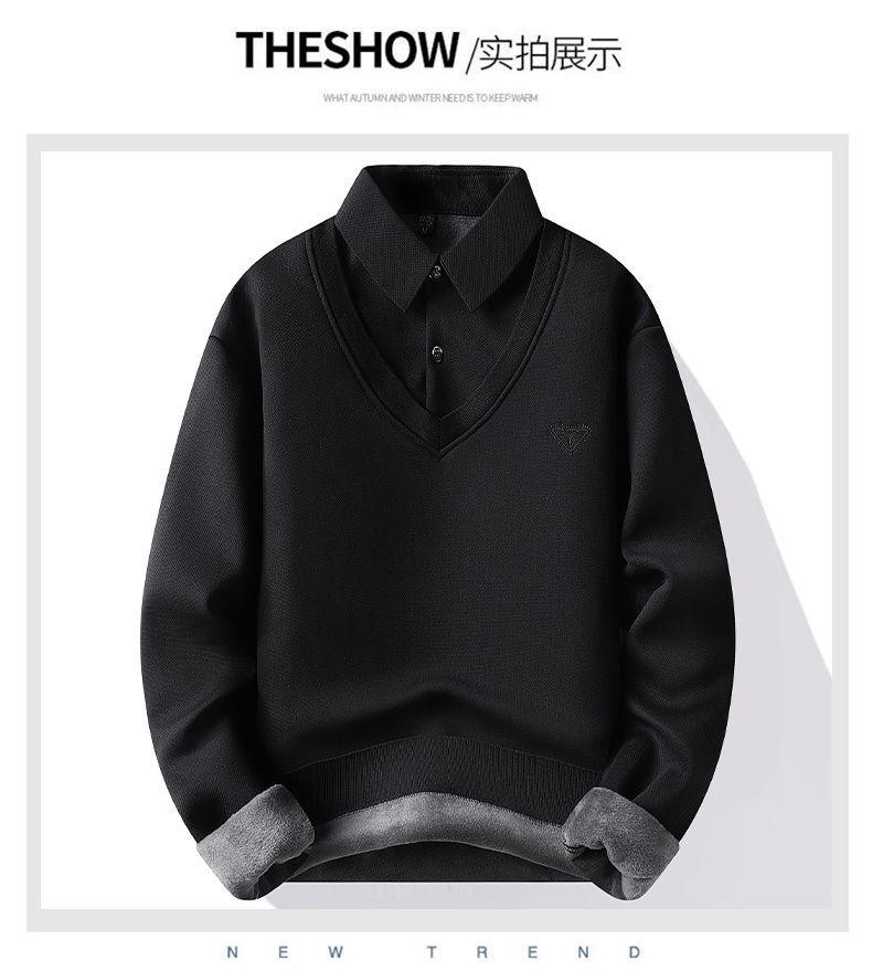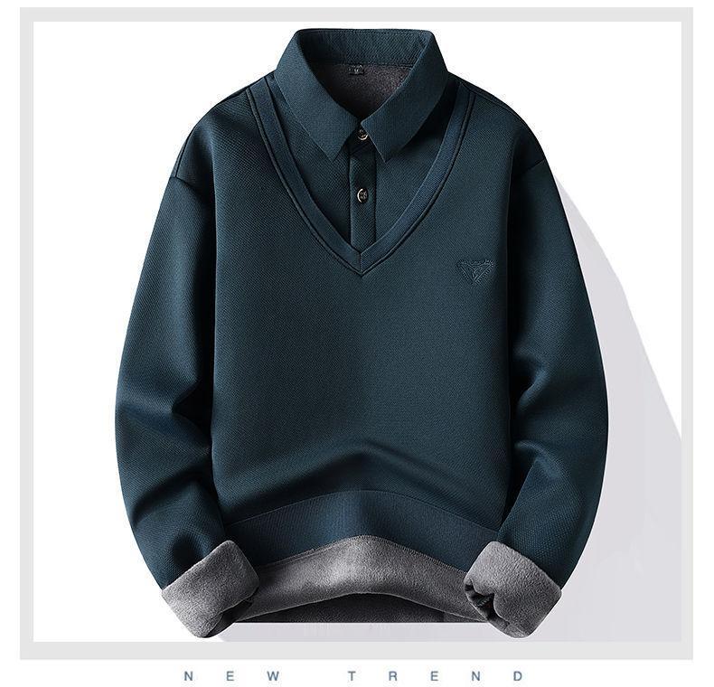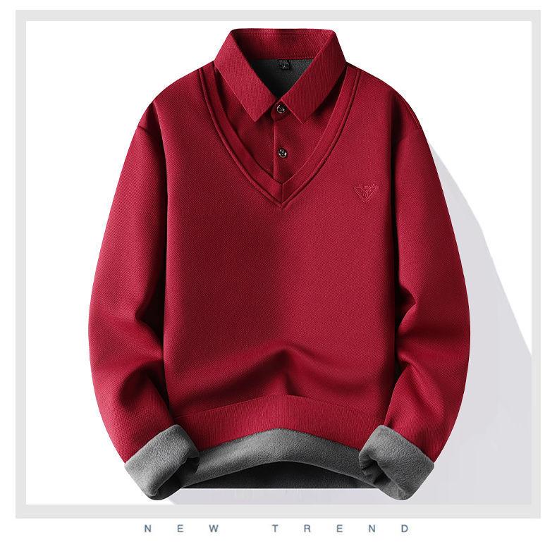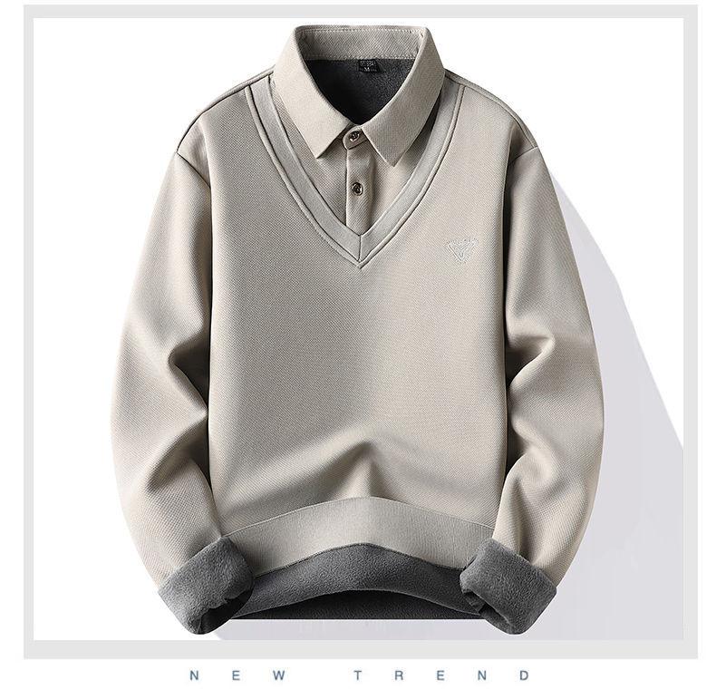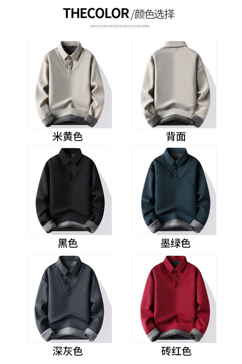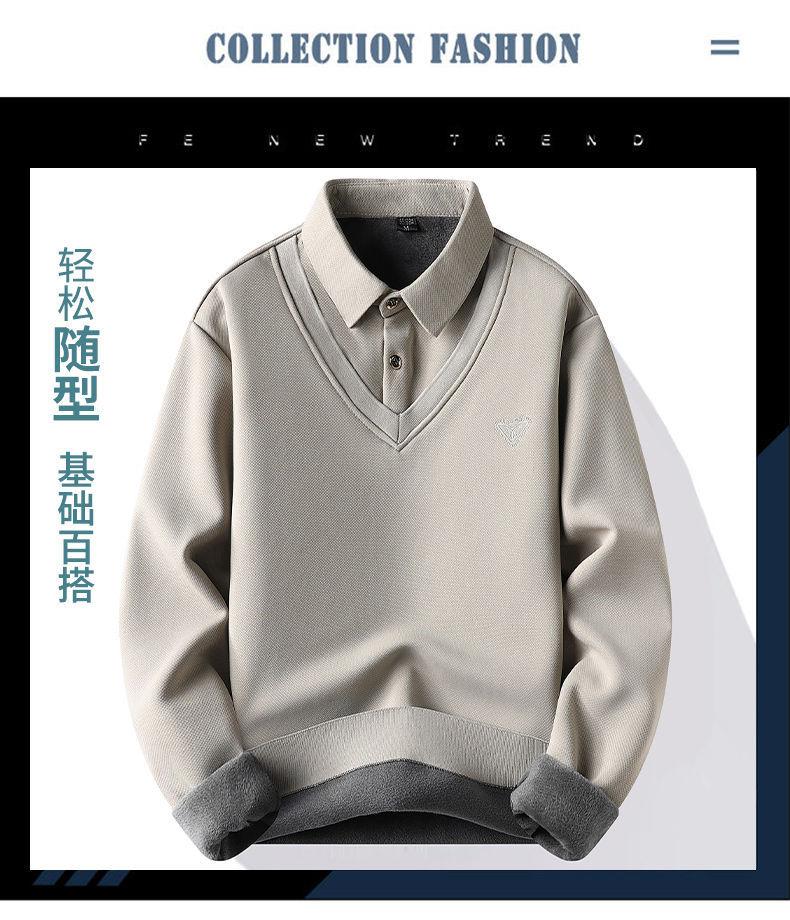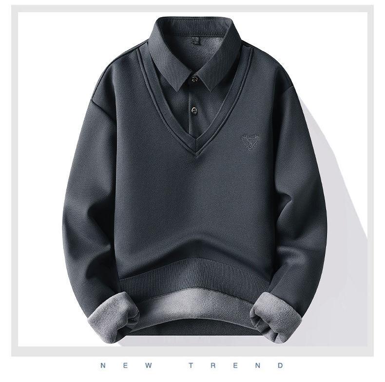 Outono/Inverno 2025 Nova Jaqueta Masculina Tricotada Falsa de Duas Peças com Gola de Camisa Suéter da Moda Camiseta Interna Camisa Básica