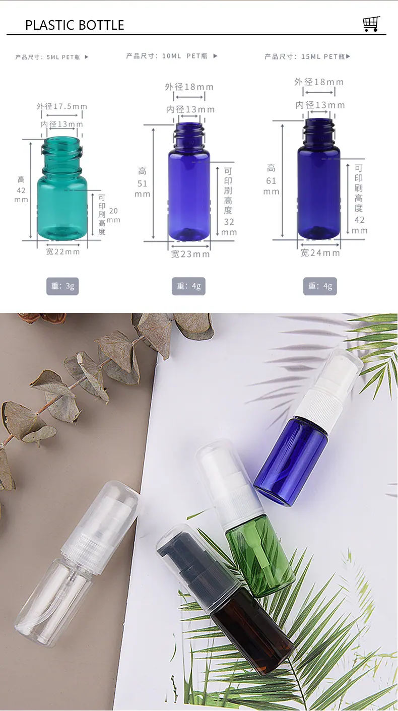 Frasco PET de 5ml 10ml 15ml Calibre 18 Frasco de Teste de Essência Loção Reembalagem Cosmética Frasco Vazio