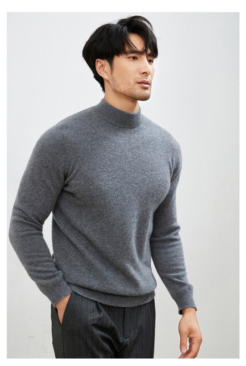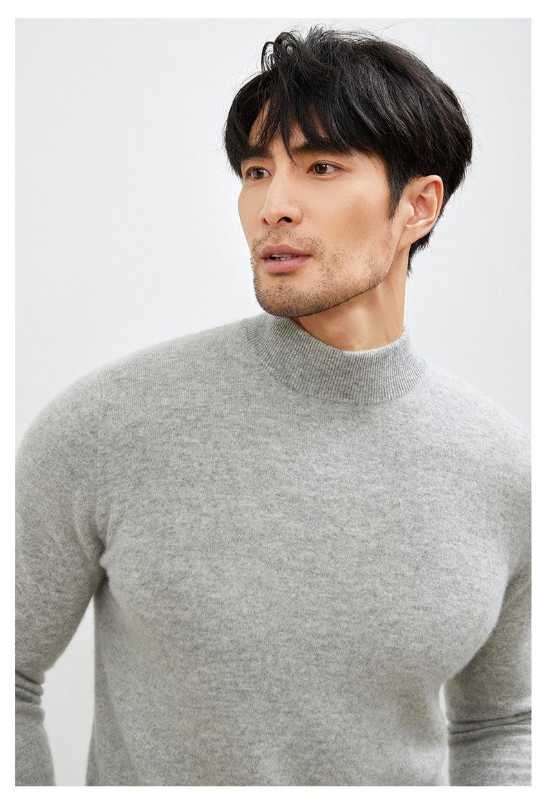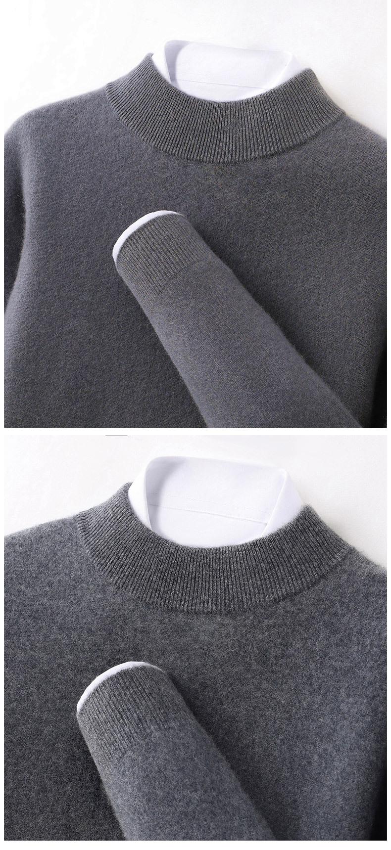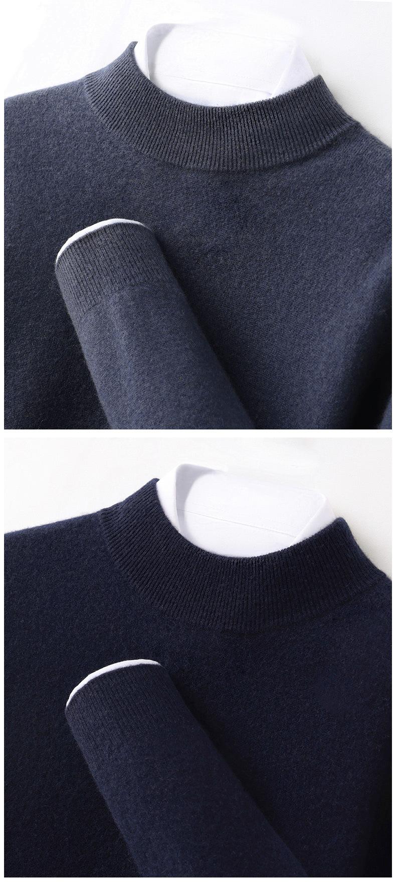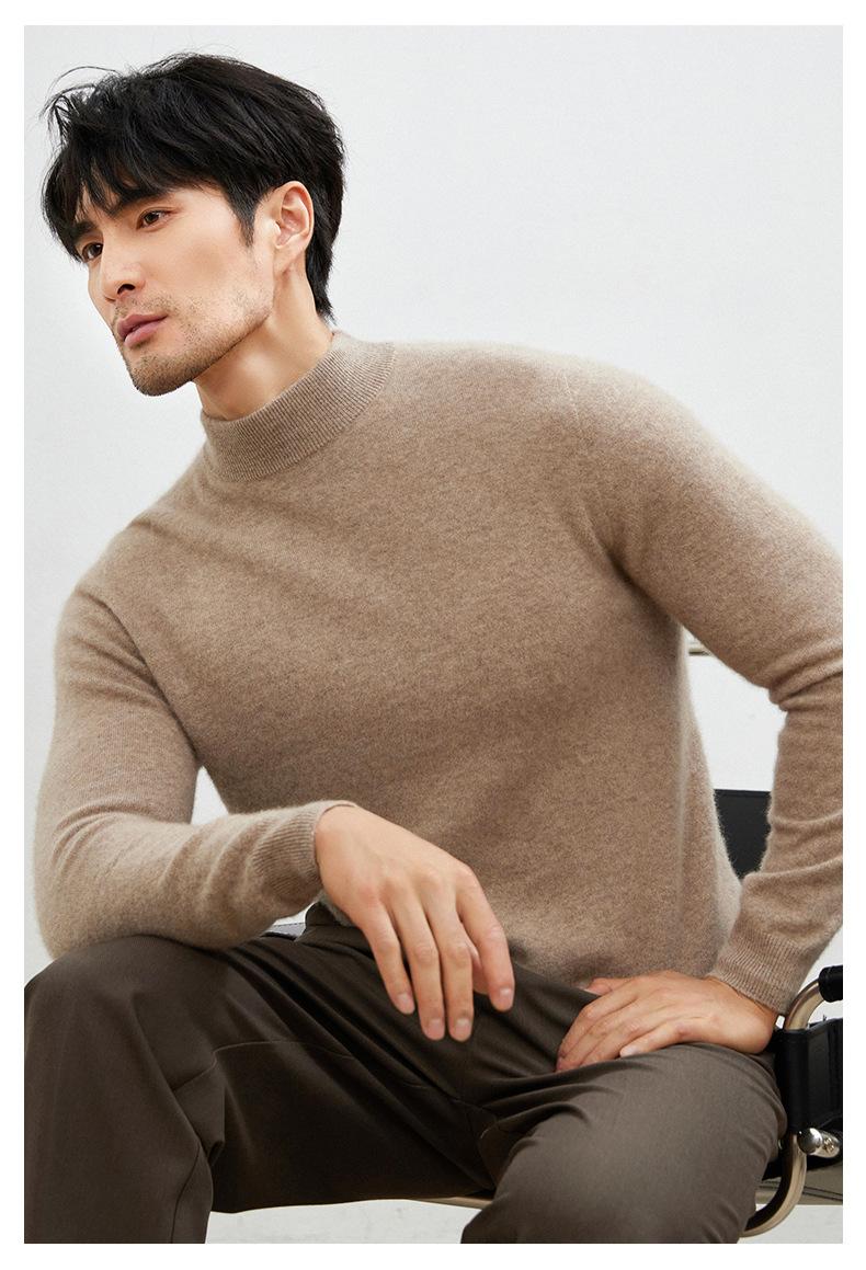 Novo Suéter Pulôver de Gola Média Alta Outono/Inverno Caxemira Masculino Tricotado Base Top Casual Quente Roupa Íntima Bonito