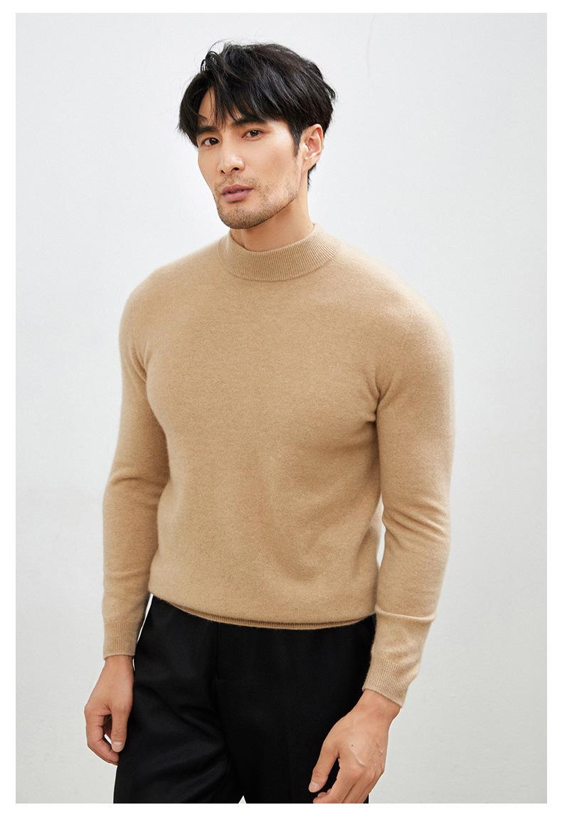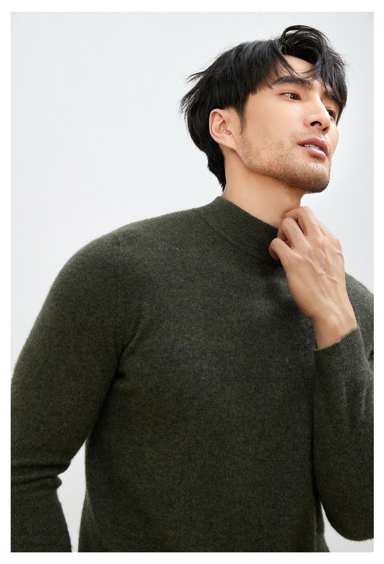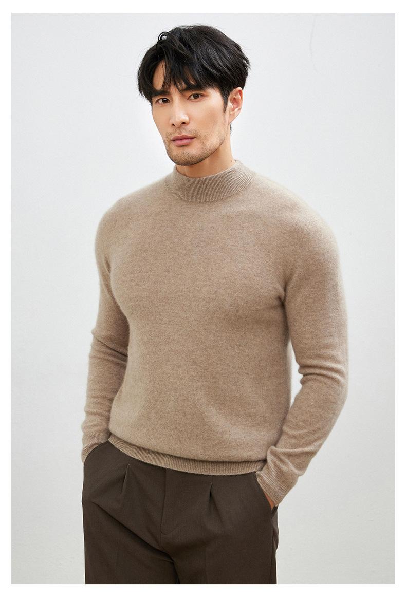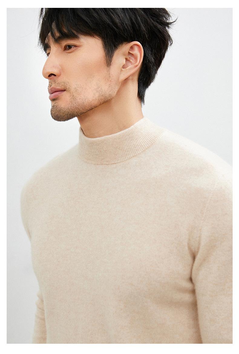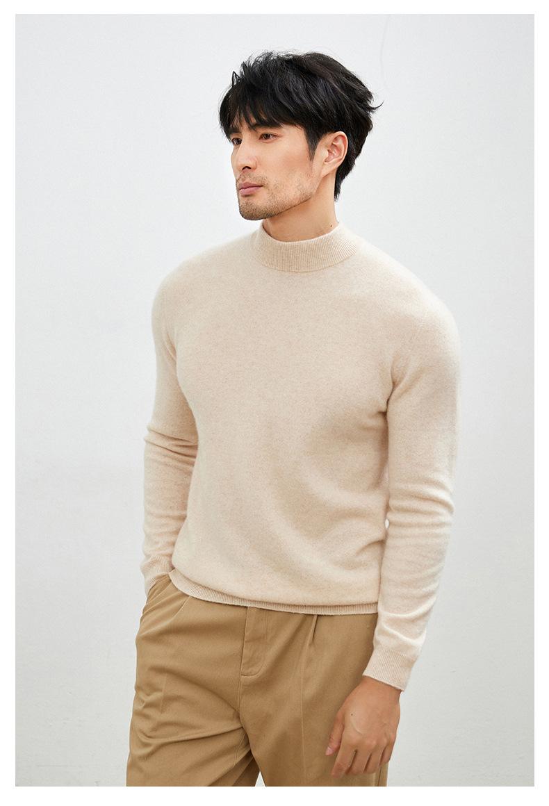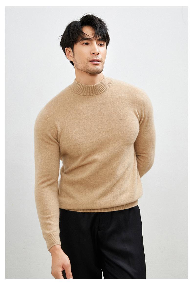 Novo Suéter Pulôver de Gola Média Alta Outono/Inverno Caxemira Masculino Tricotado Base Top Casual Quente Roupa Íntima Bonito