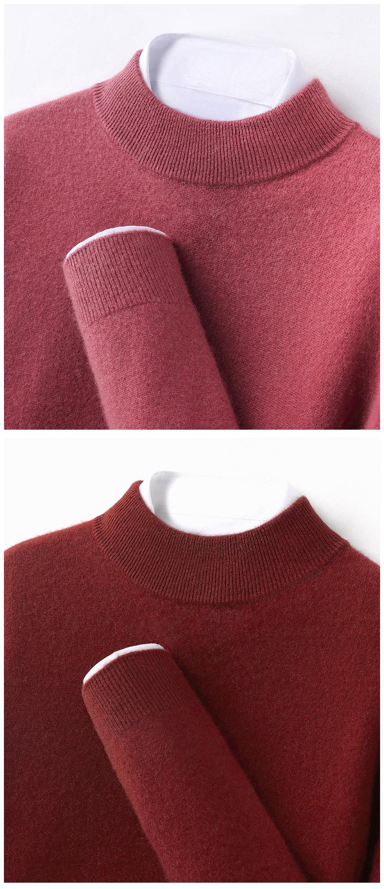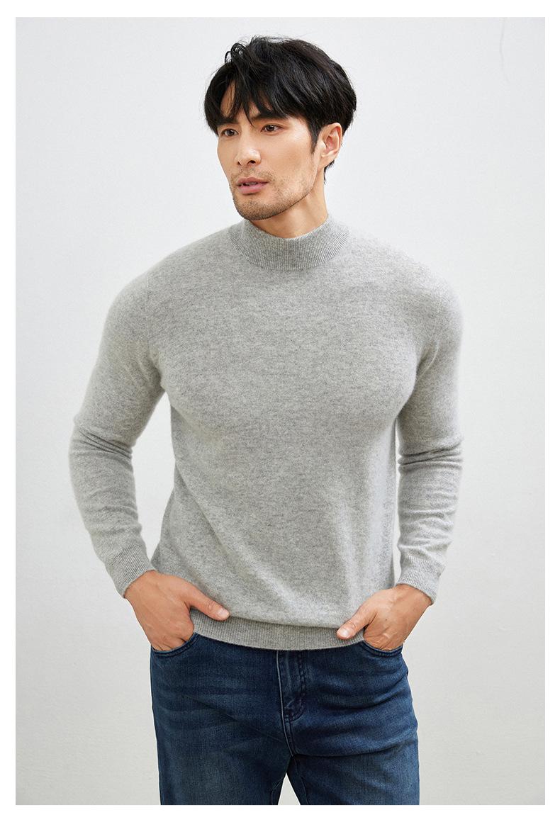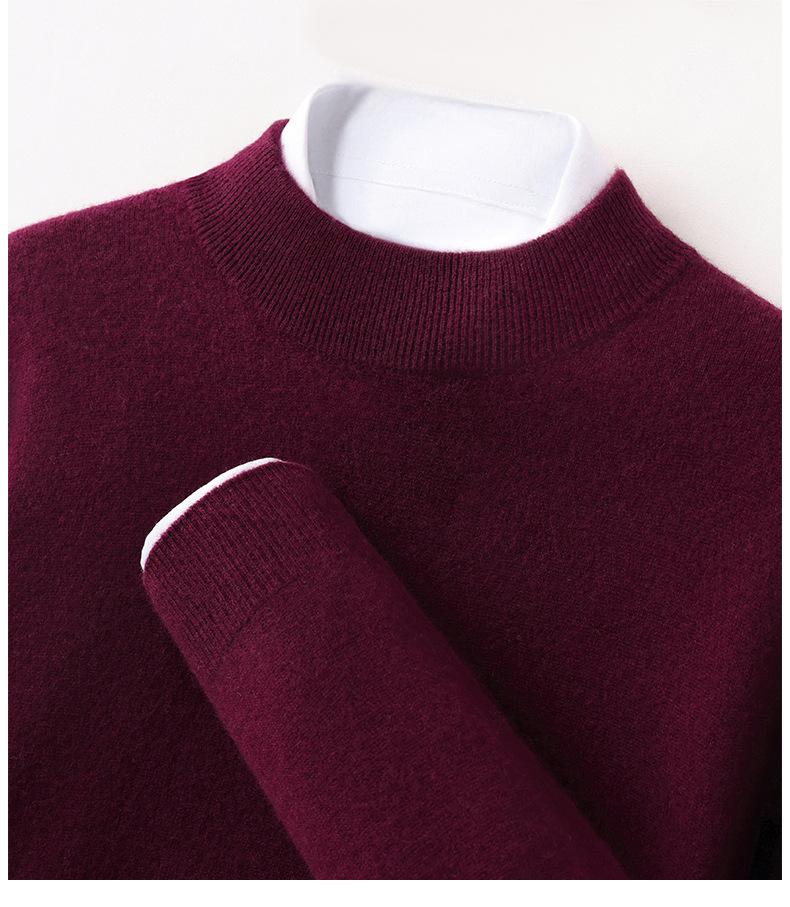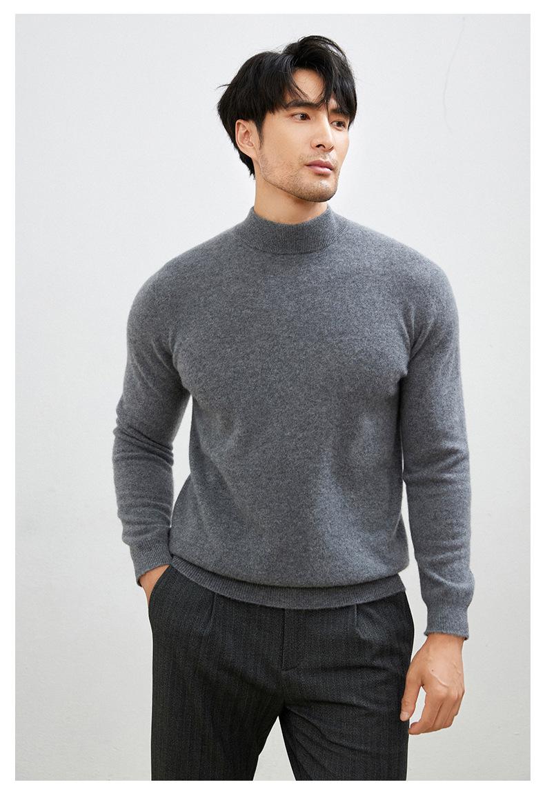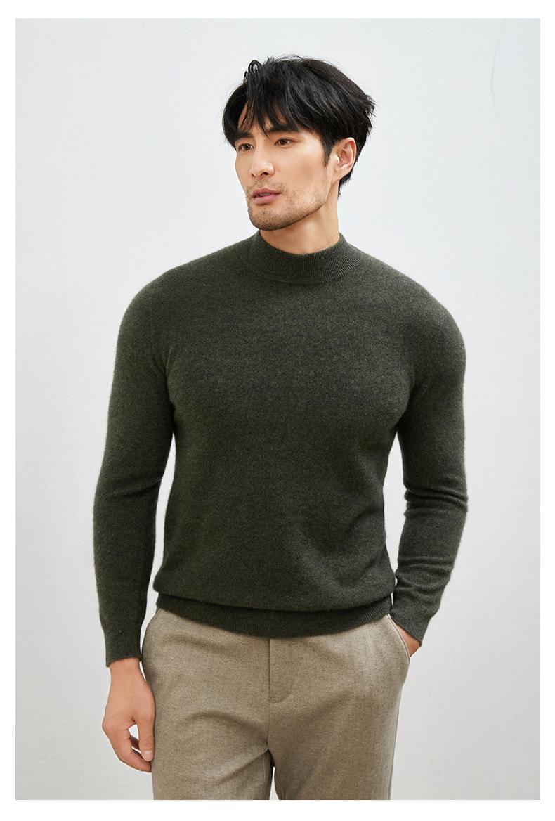 Novo Suéter Pulôver de Gola Média Alta Outono/Inverno Caxemira Masculino Tricotado Base Top Casual Quente Roupa Íntima Bonito