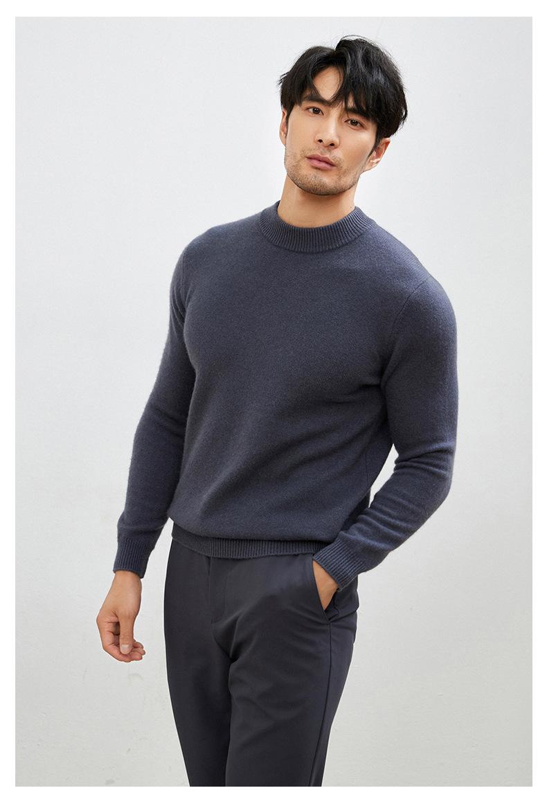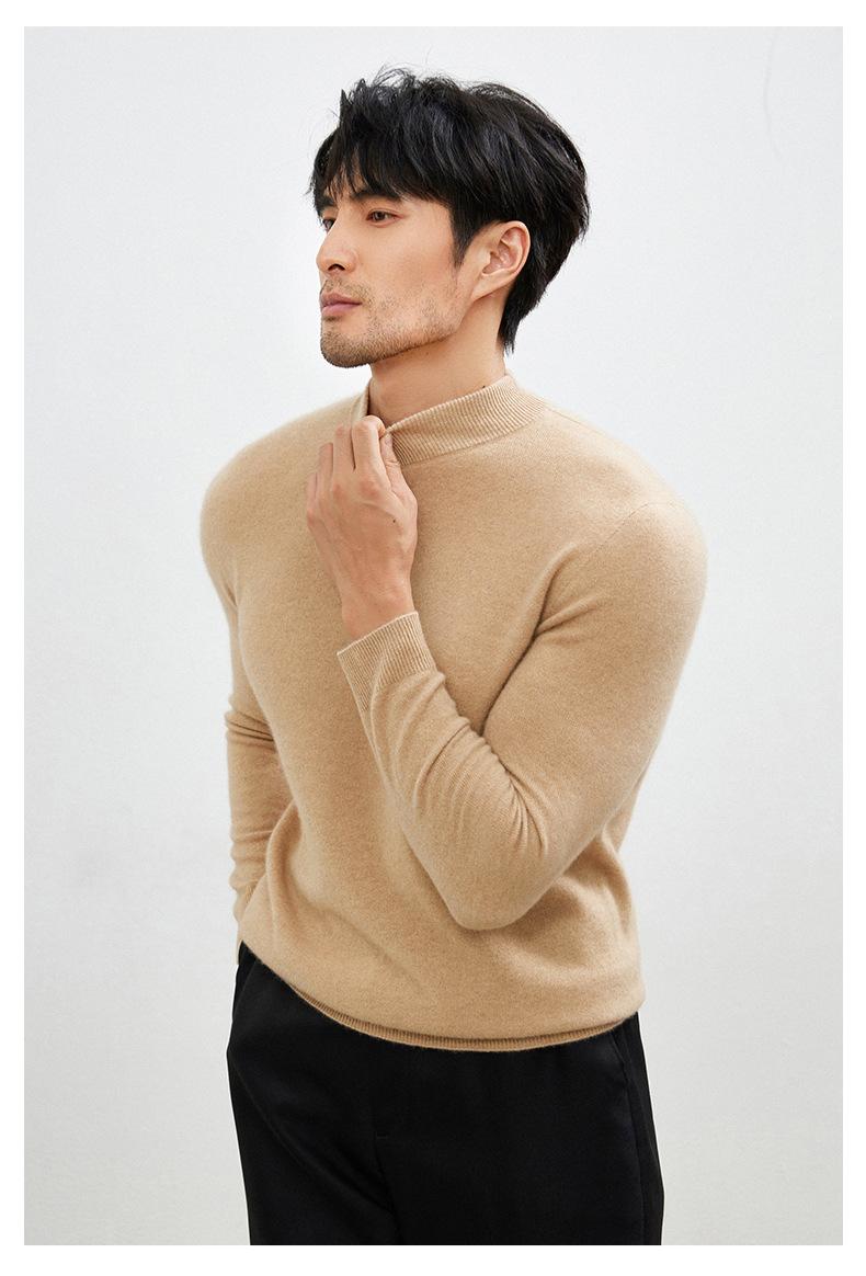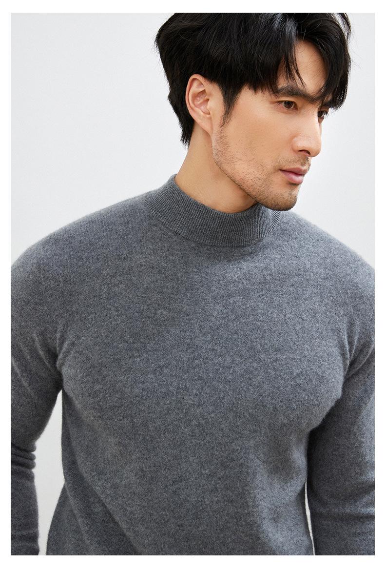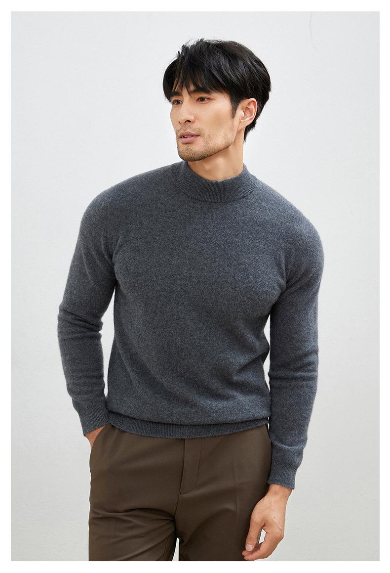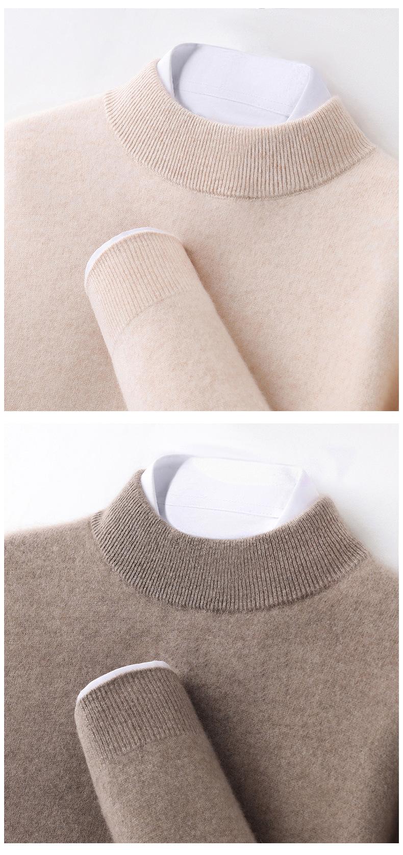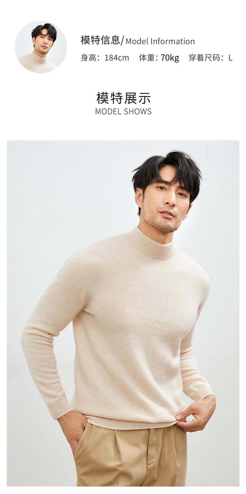 Novo Suéter Pulôver de Gola Média Alta Outono/Inverno Caxemira Masculino Tricotado Base Top Casual Quente Roupa Íntima Bonito