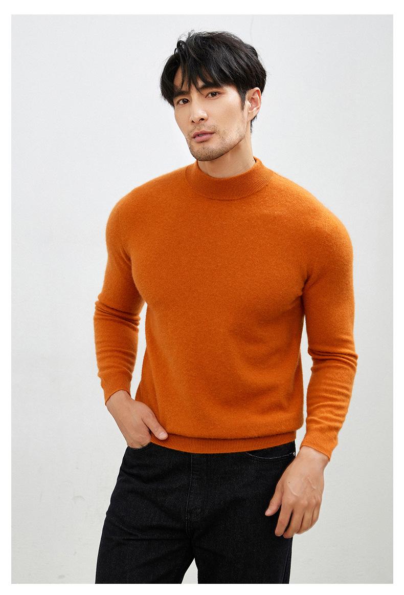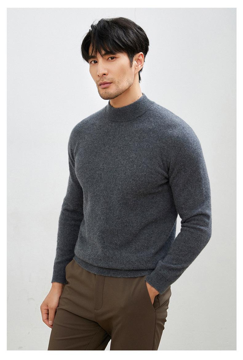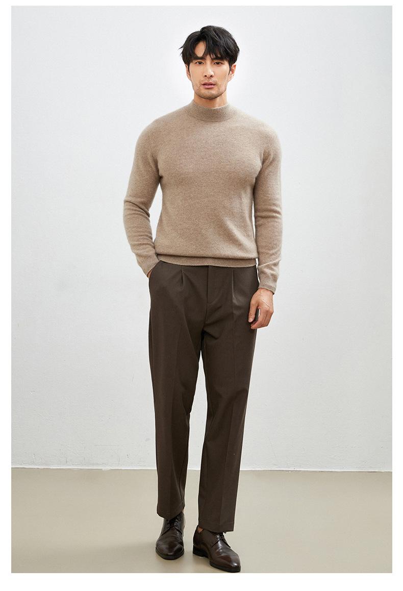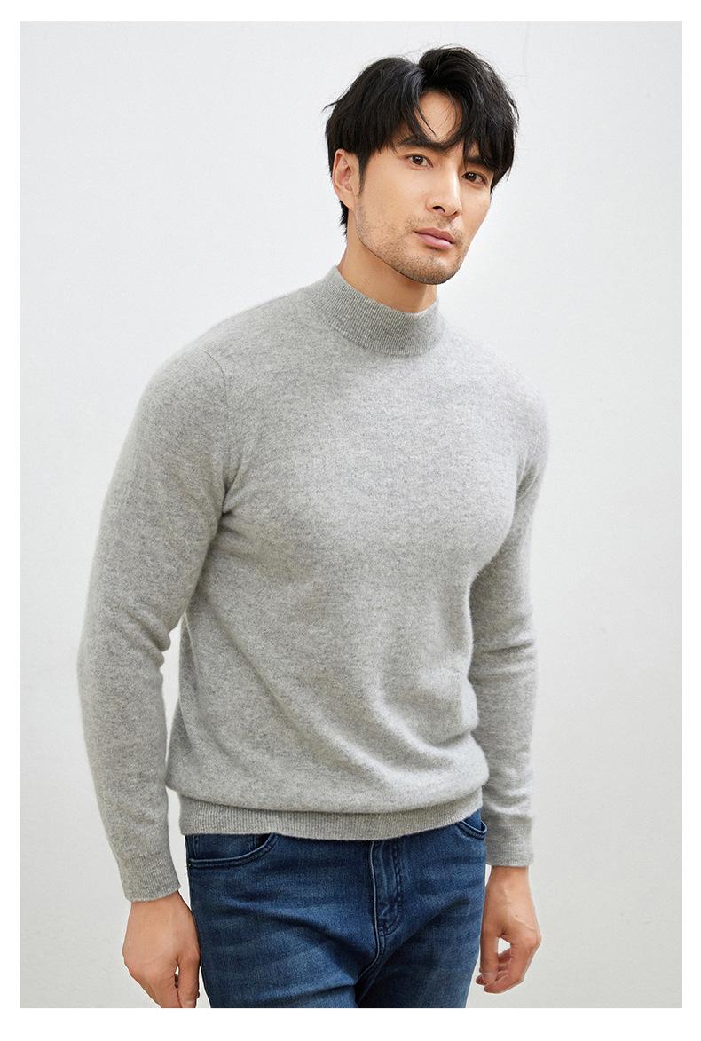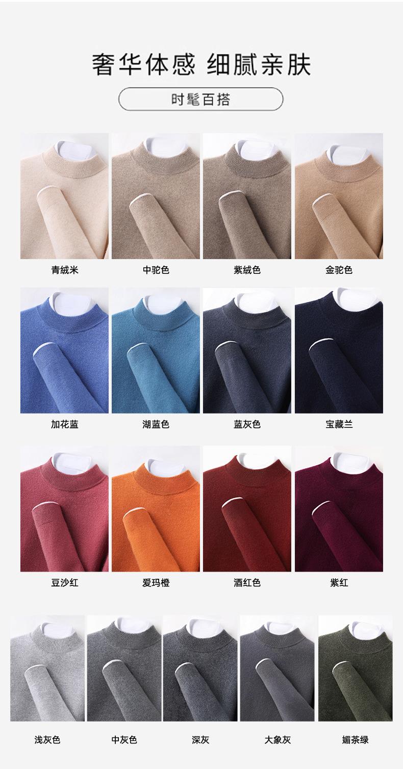 Novo Suéter Pulôver de Gola Média Alta Outono/Inverno Caxemira Masculino Tricotado Base Top Casual Quente Roupa Íntima Bonito