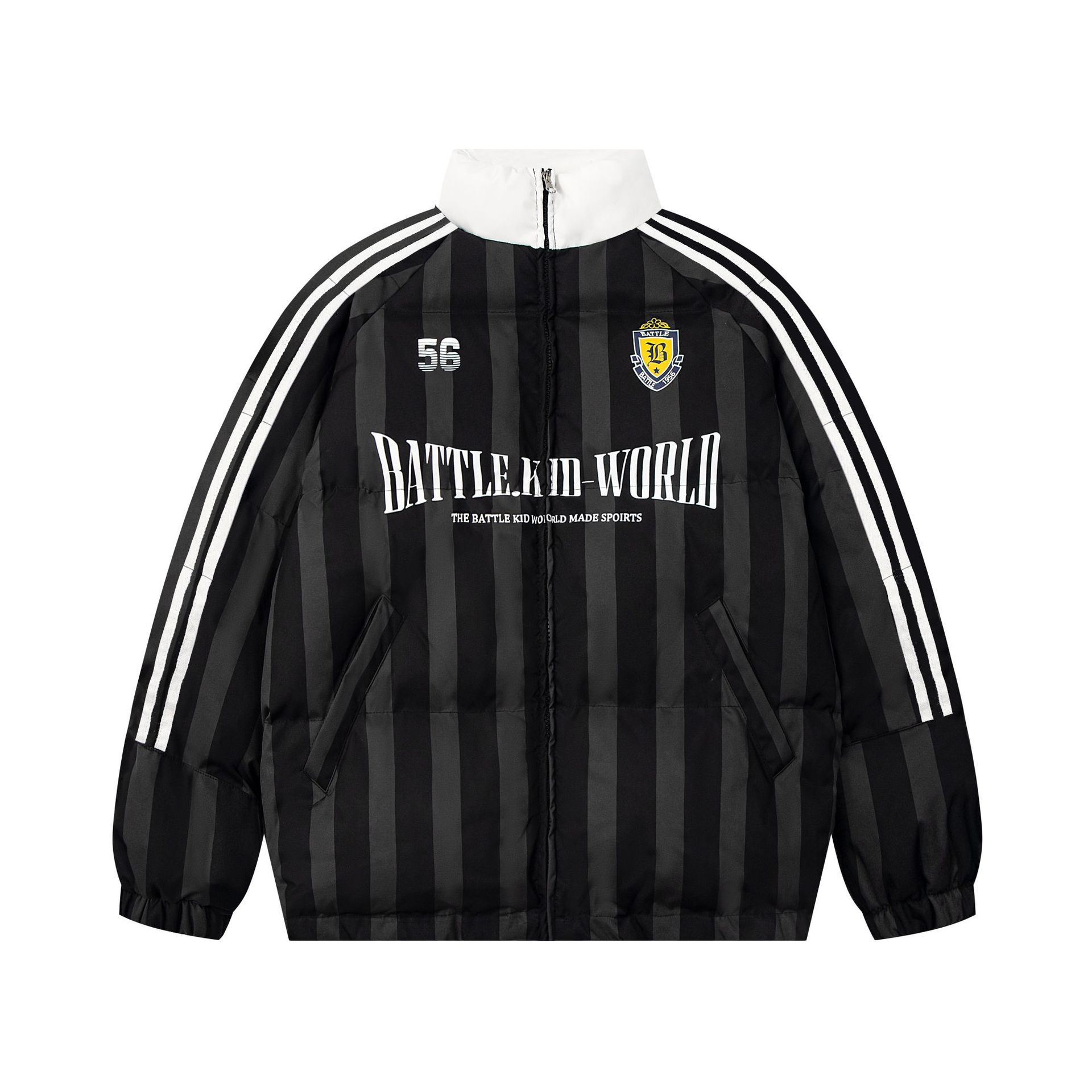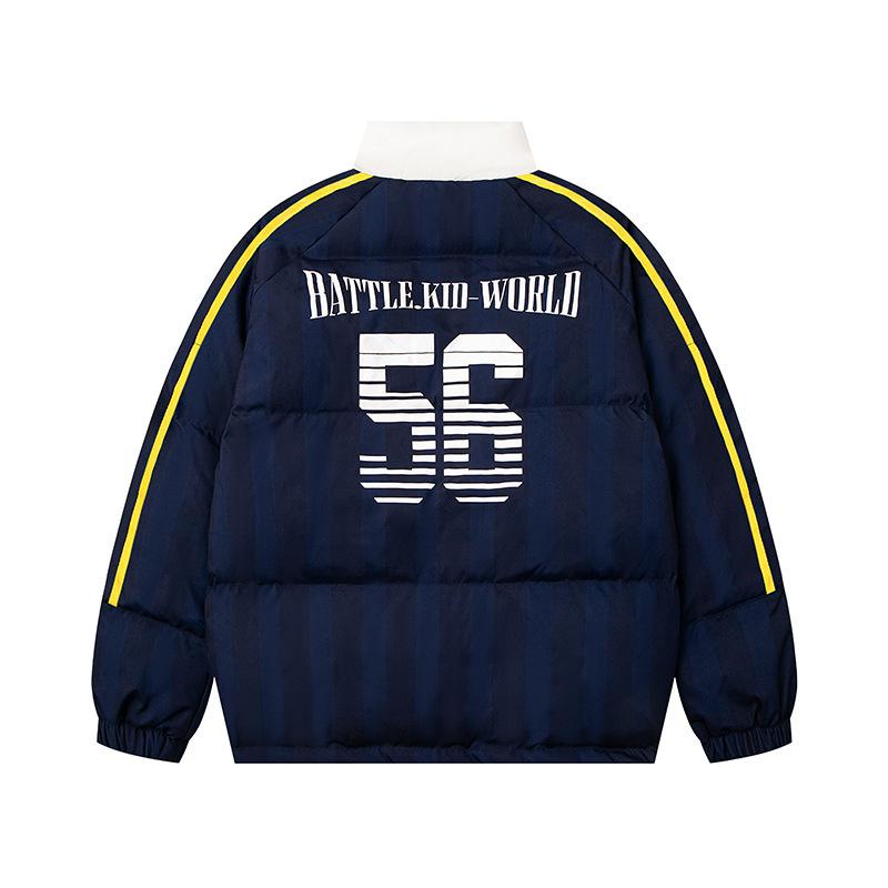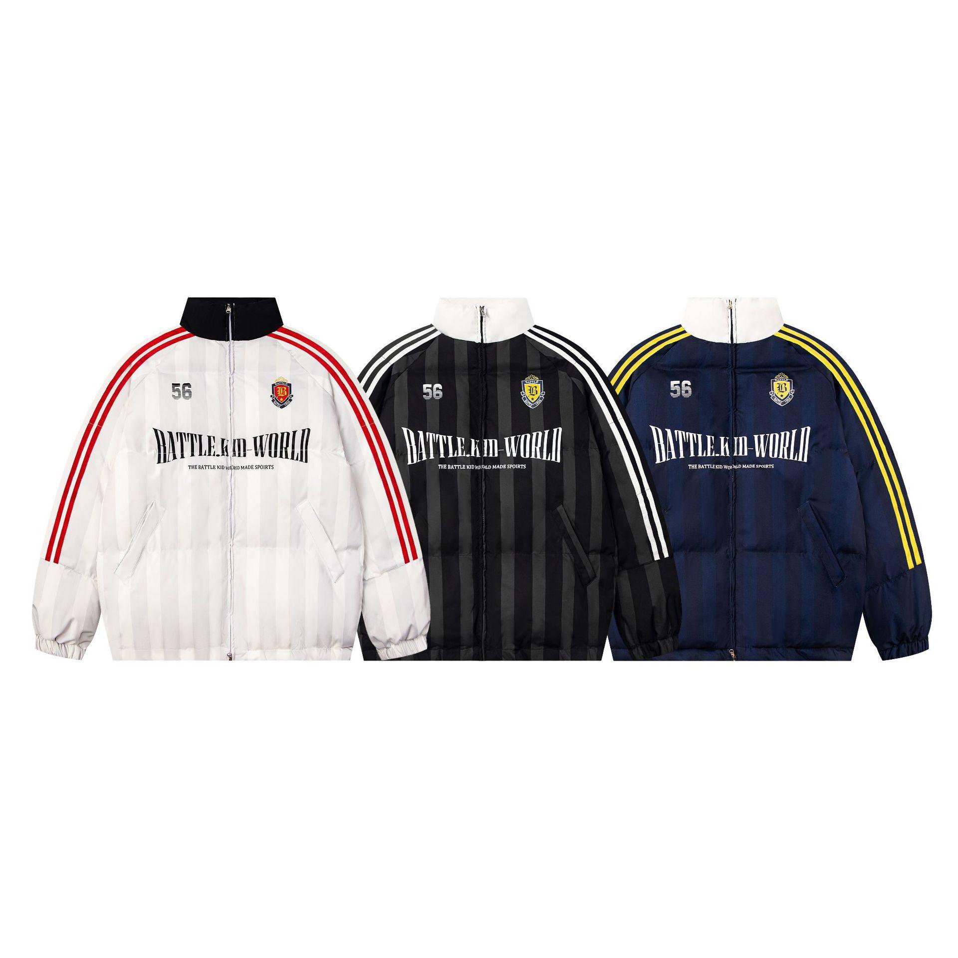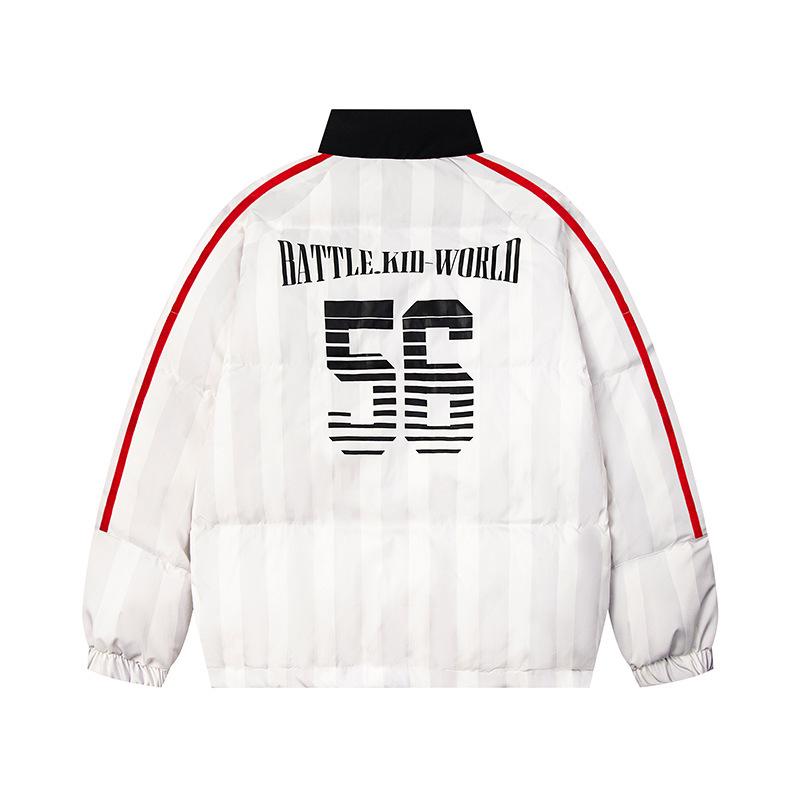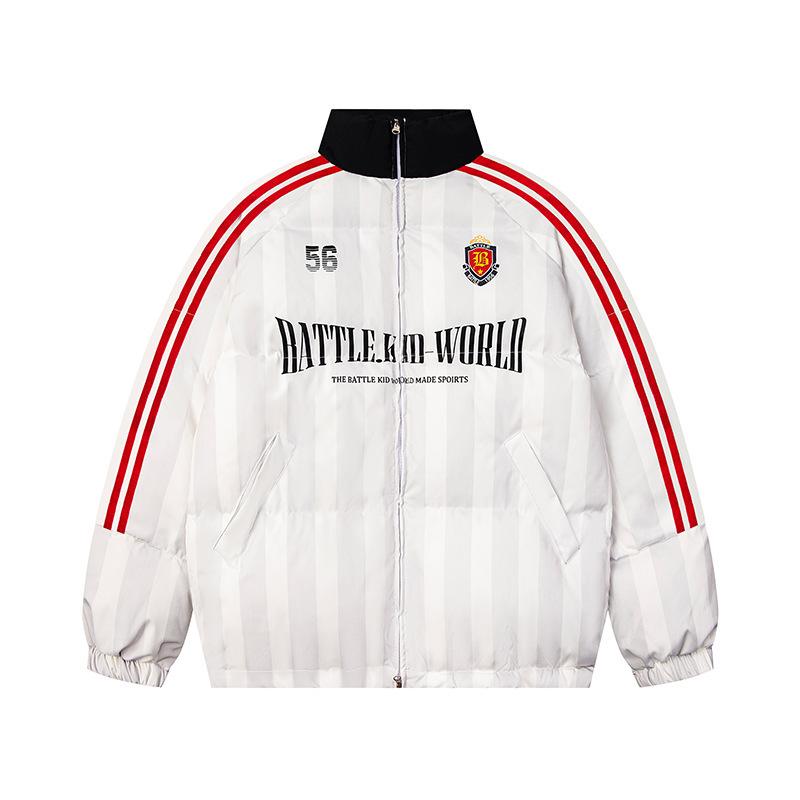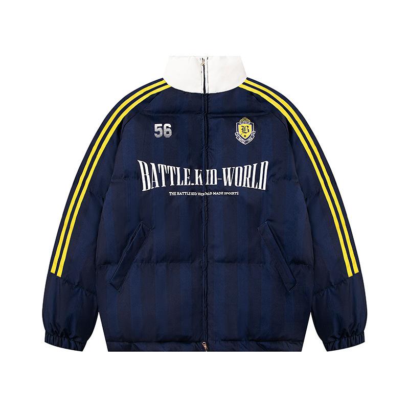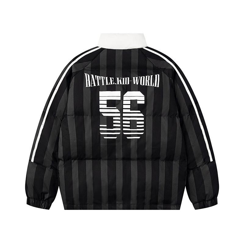 Jaqueta de Inverno de Algodão Colorblock Listrada Americana Retrô Casaco de Algodão Casal Masculino e Feminino Solto Versátil Roupa Exterior Jaqueta Acolchoada Tendência High Street