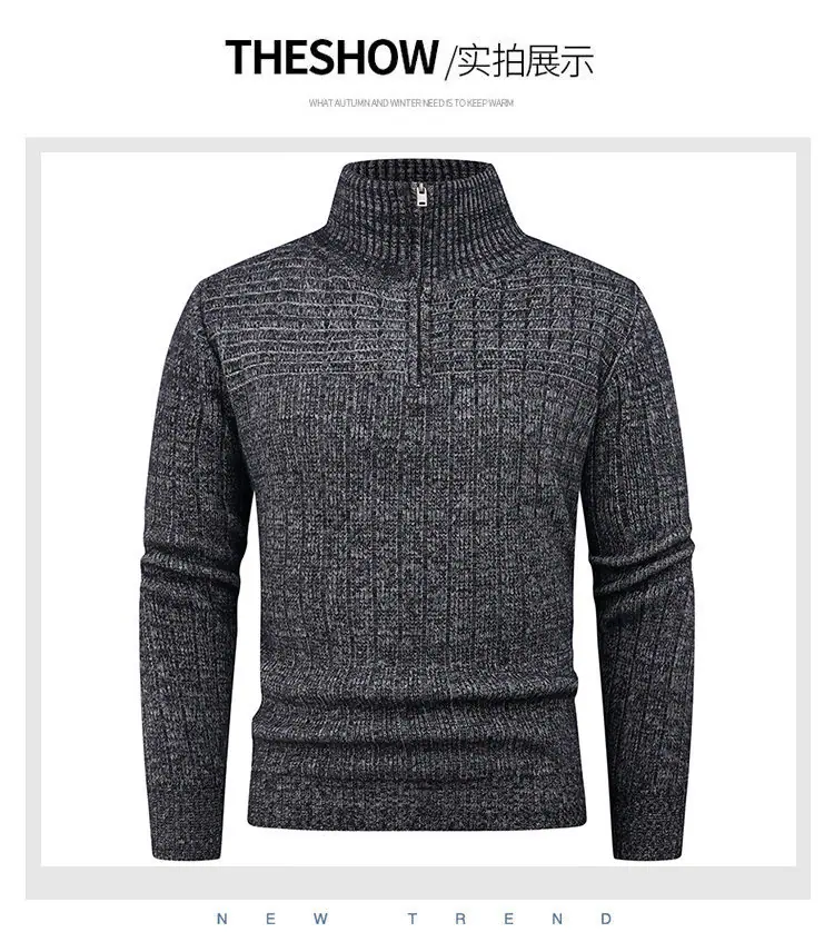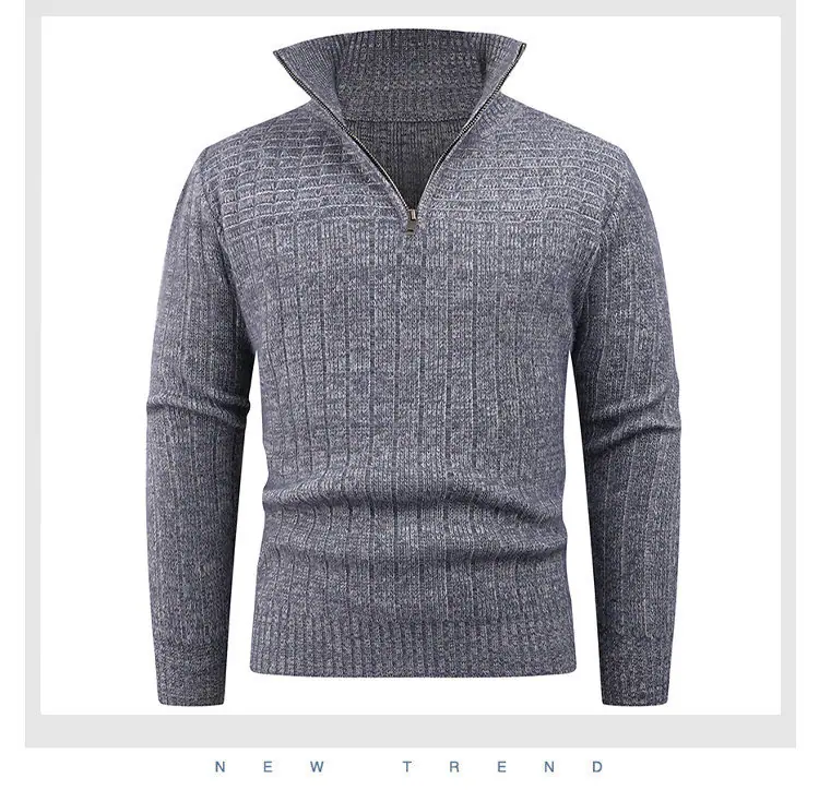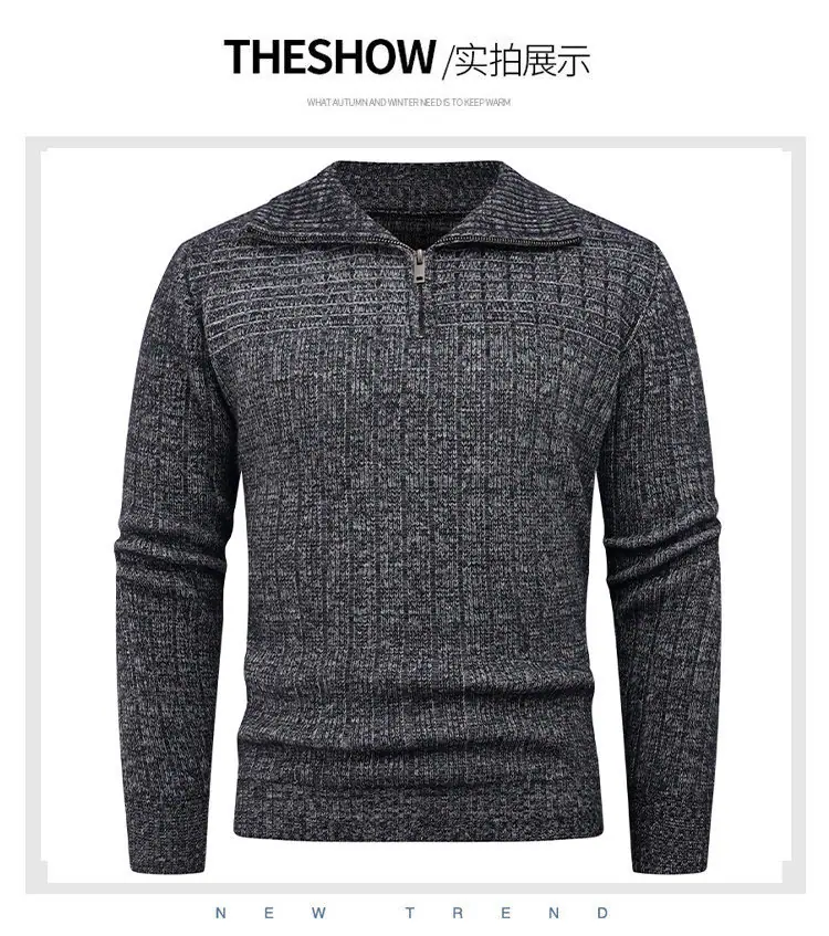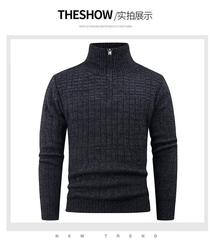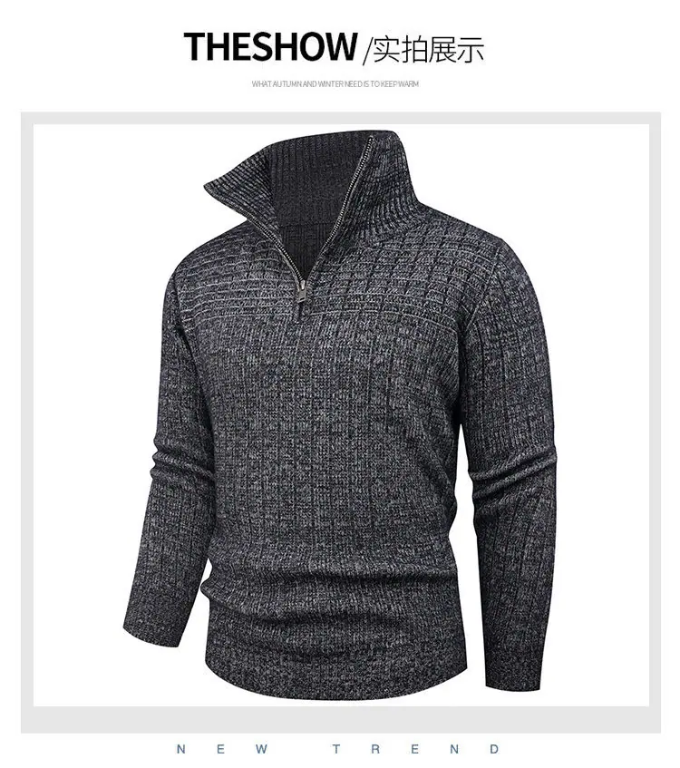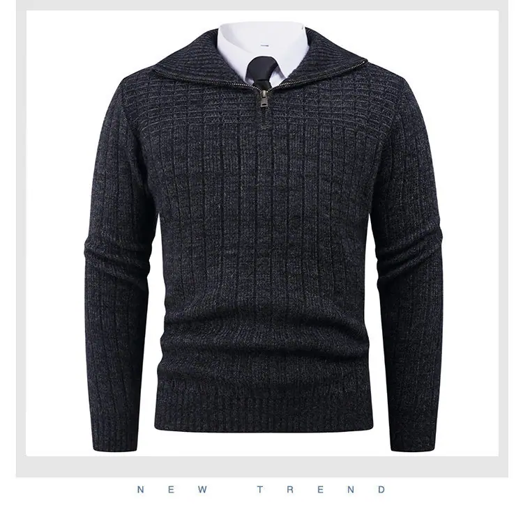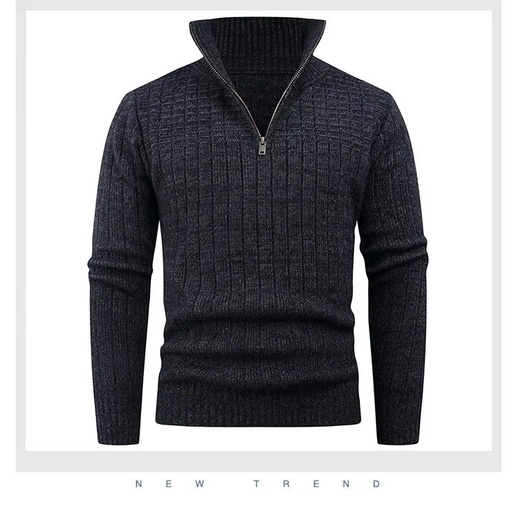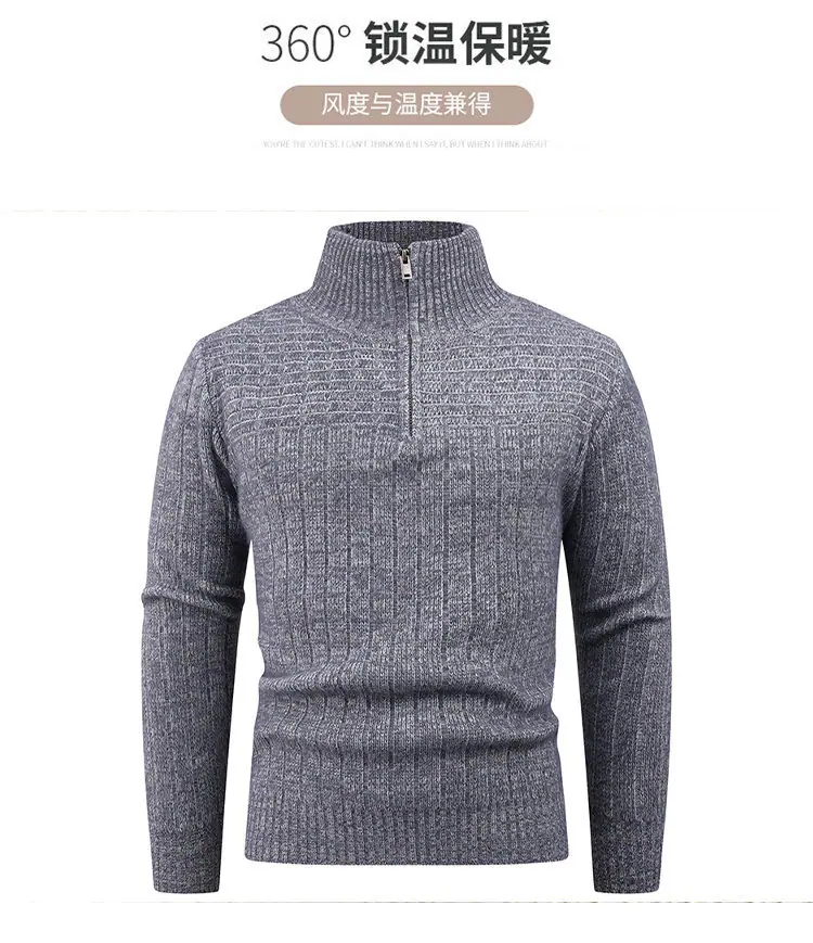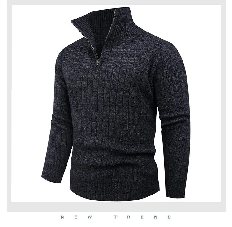 Estilo Outono e Inverno Transfronteiriço Suéter Masculino Tamanho Europeu Amazon Elástico Meio Zíper Gola Alta Pulôver Suéter Tricô Masculino