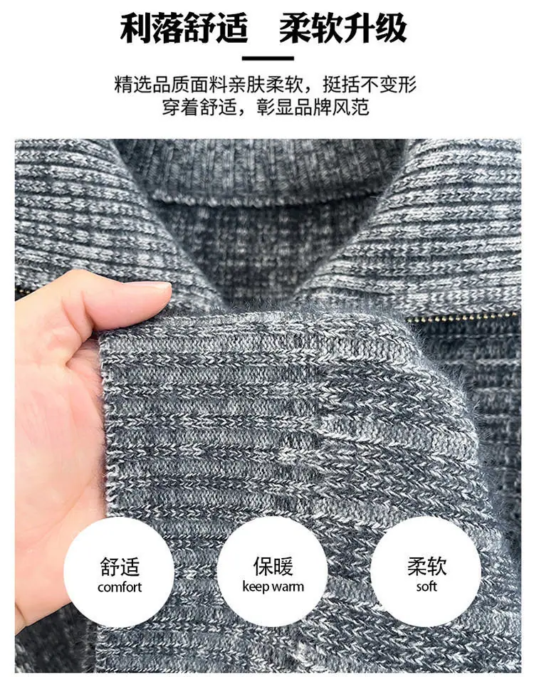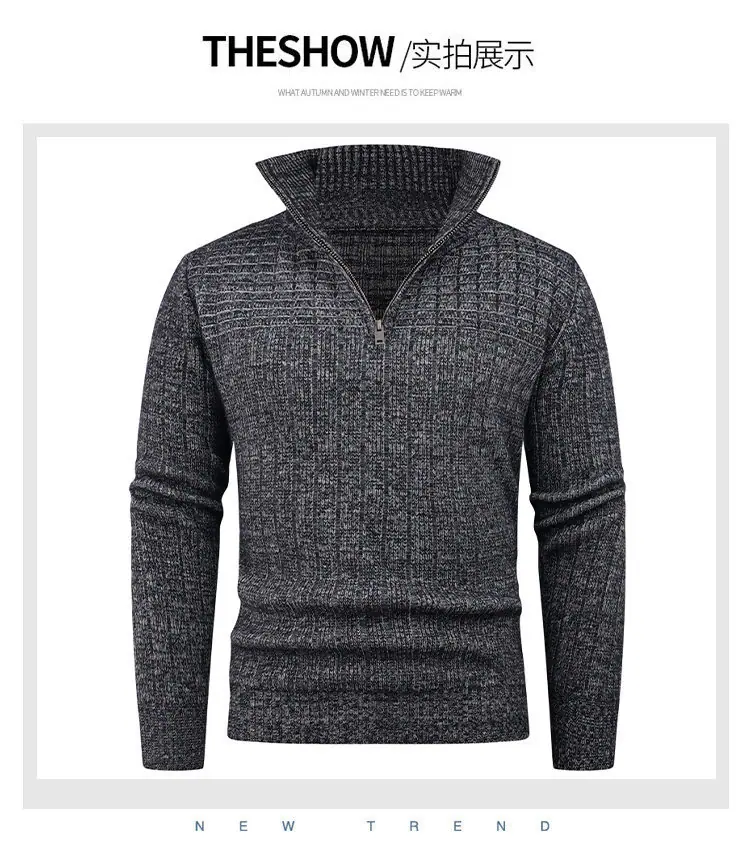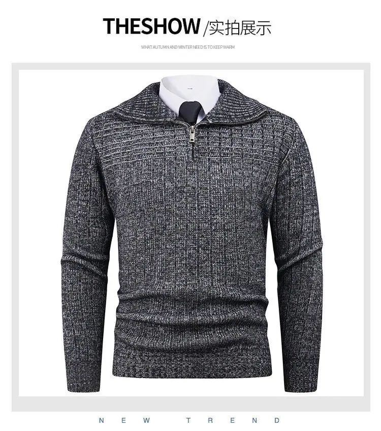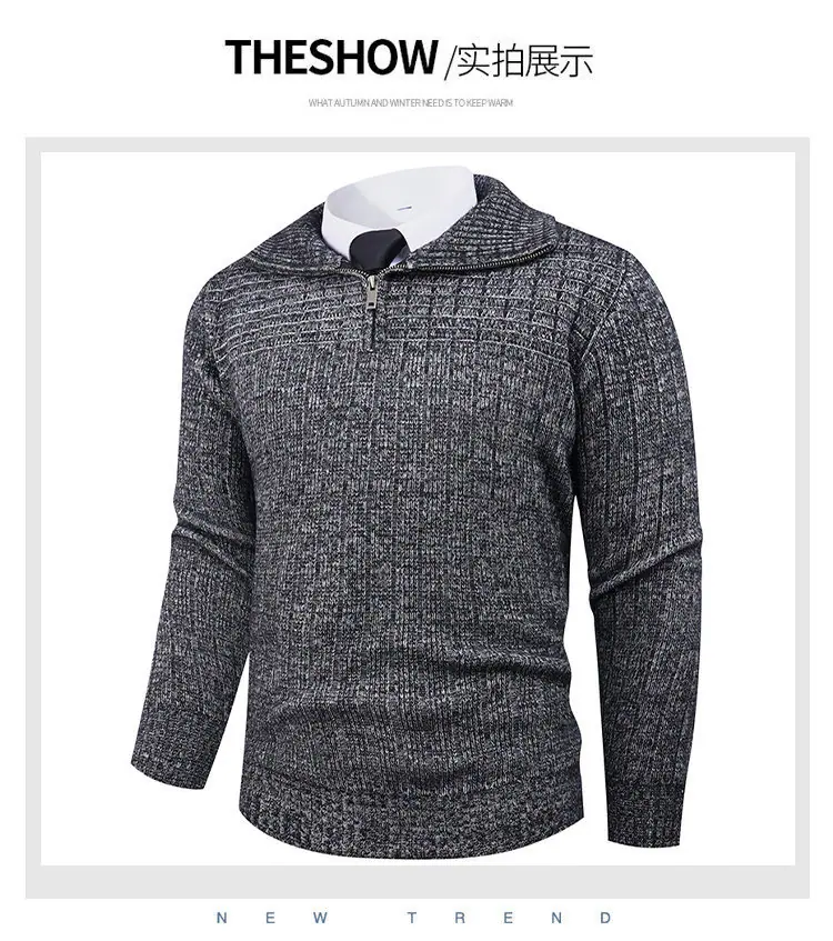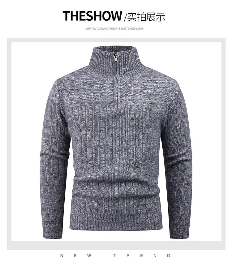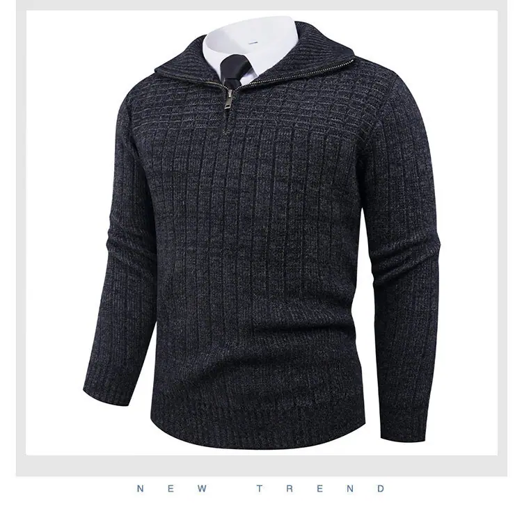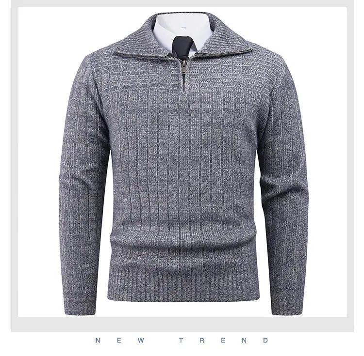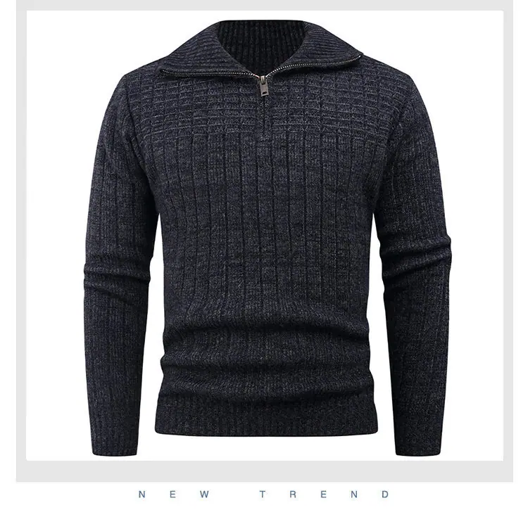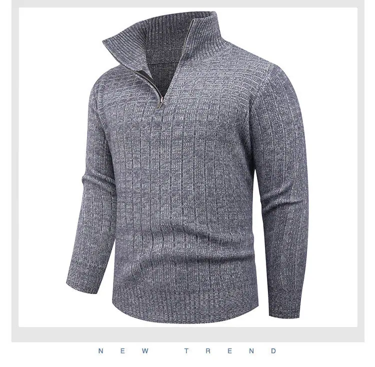 Estilo Outono e Inverno Transfronteiriço Suéter Masculino Tamanho Europeu Amazon Elástico Meio Zíper Gola Alta Pulôver Suéter Tricô Masculino