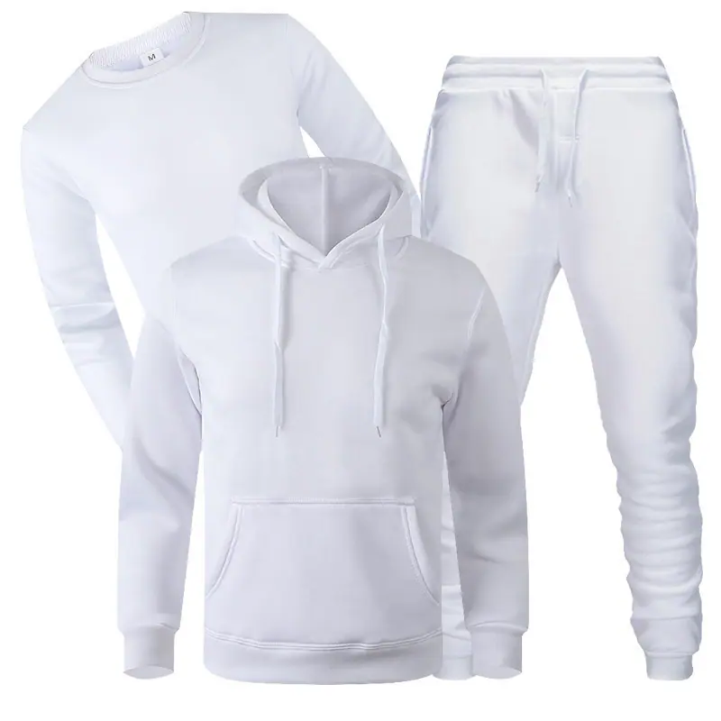 Conjunto de Moletom Masculino Solto de Outono e Inverno com Fleece, Calças de Moletom e Três Peças, Casual Esportivo, Terno de Manga Longa, Casual Levemente Maduro