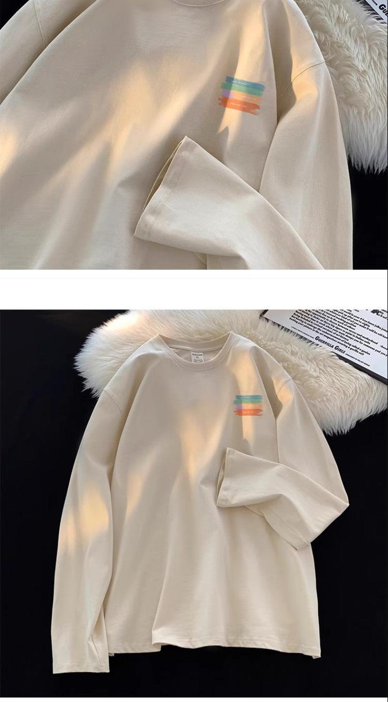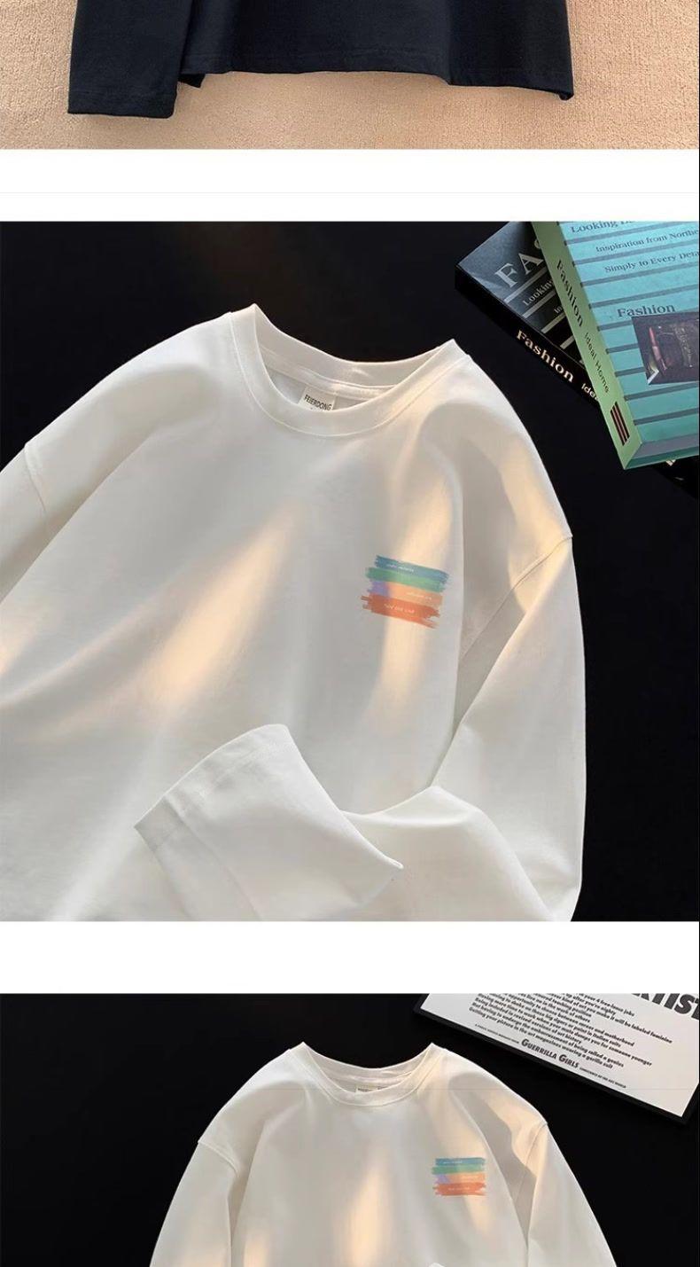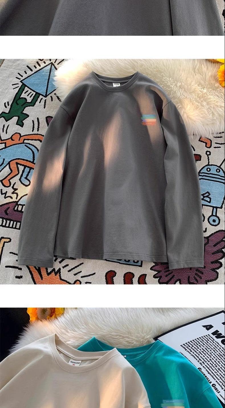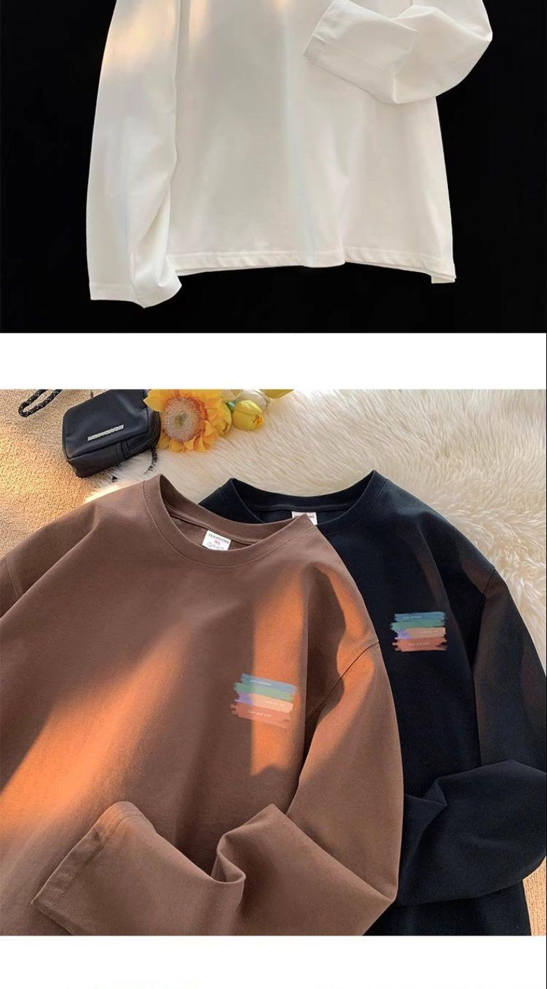 Moletom Branco Americano Pesado Streetwear Masculino Camiseta Base Camada Interna Primavera Outono Juvenil Manga Longa Camiseta Top Tendência