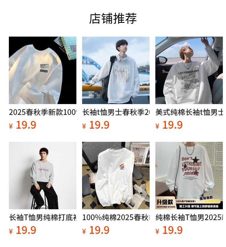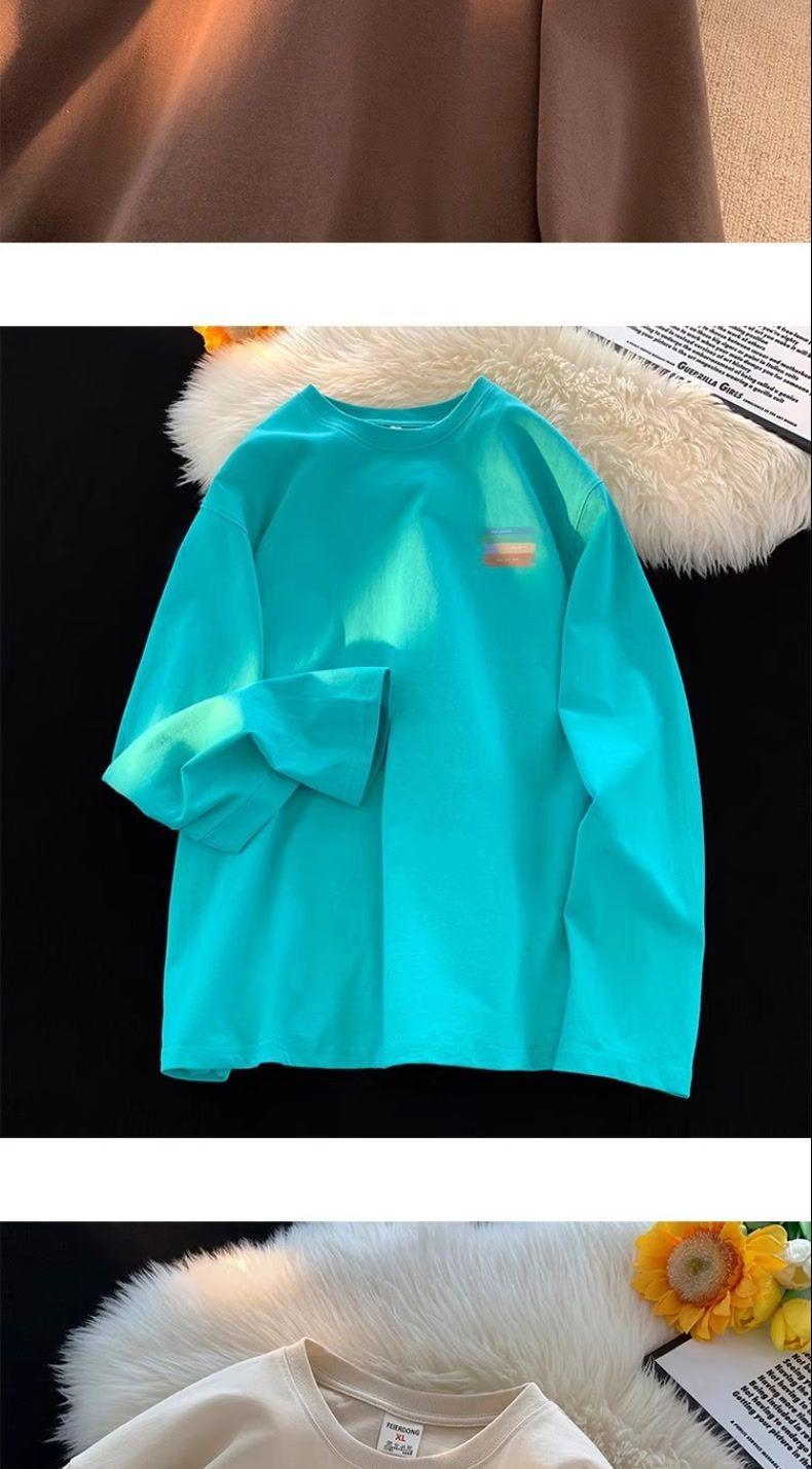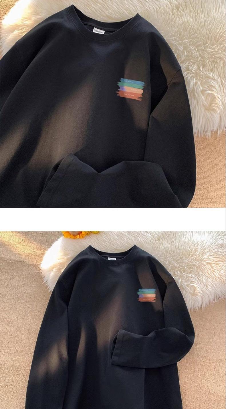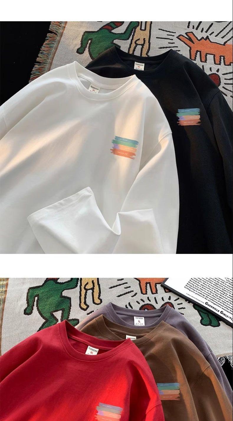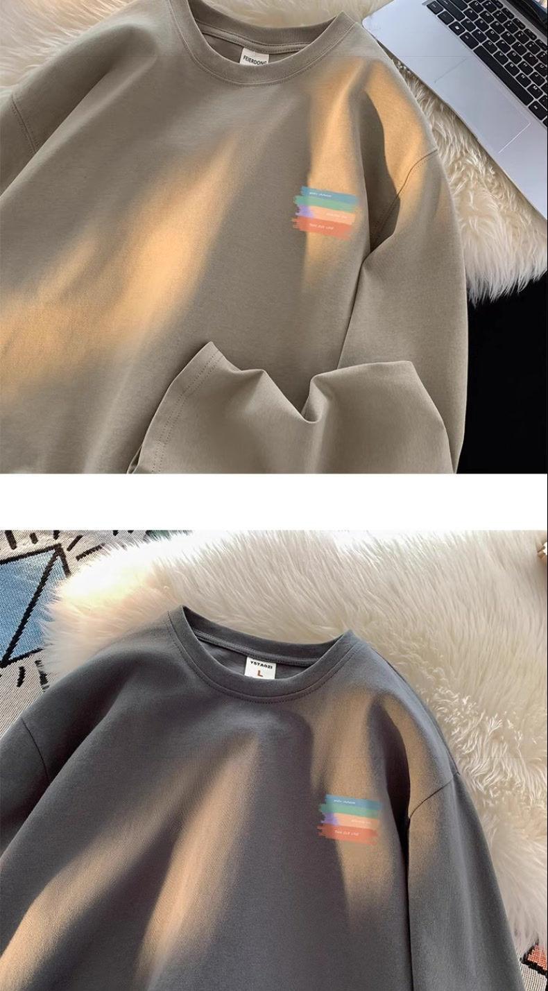 Moletom Branco Americano Pesado Streetwear Masculino Camiseta Base Camada Interna Primavera Outono Juvenil Manga Longa Camiseta Top Tendência