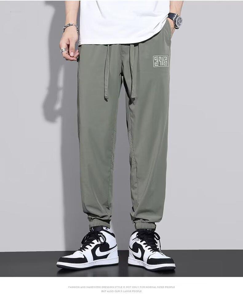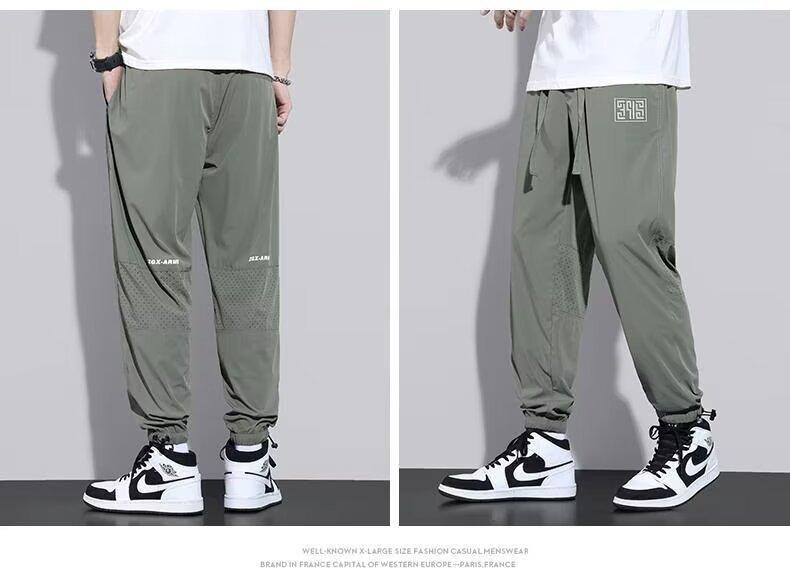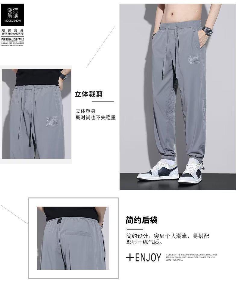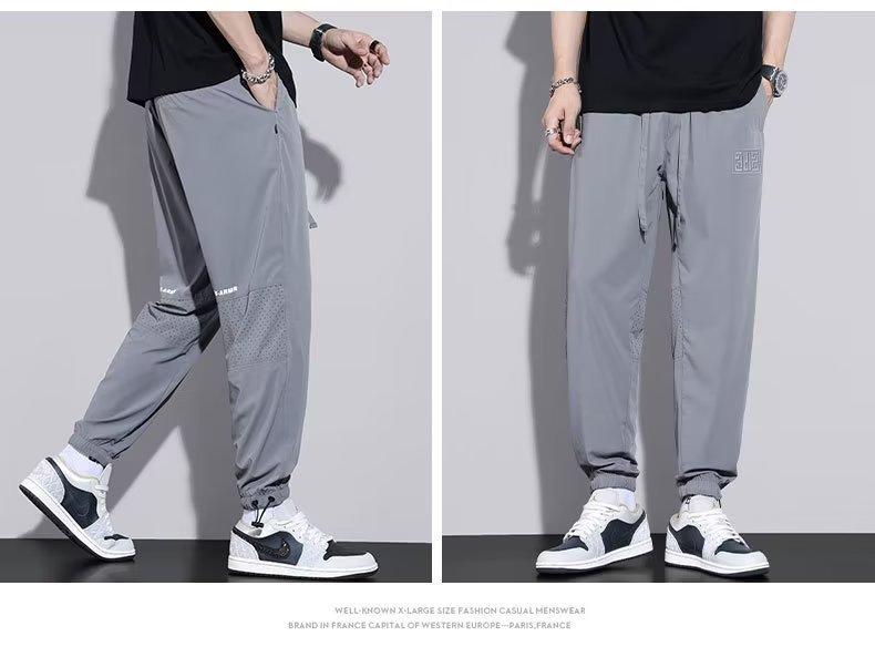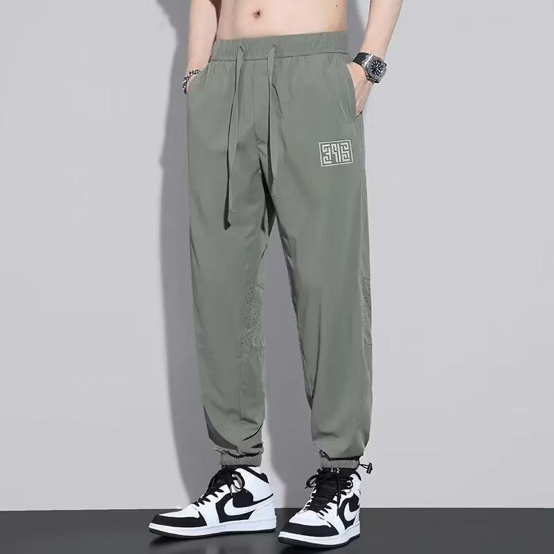Calças Casuais de Malha de Seda Gelo Masculinas de Verão Finas Soltas Respiráveis de Secagem Rápida Calças Esportivas Masculinas com Cordão e Punho no Tornozelo