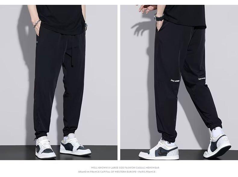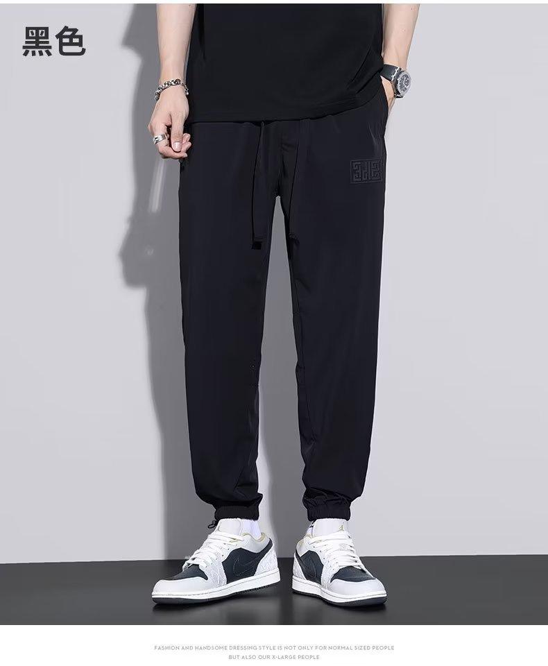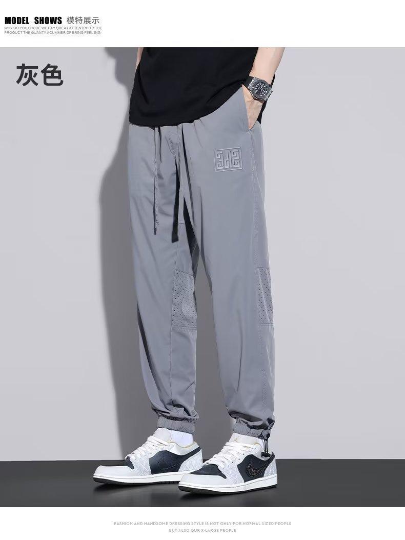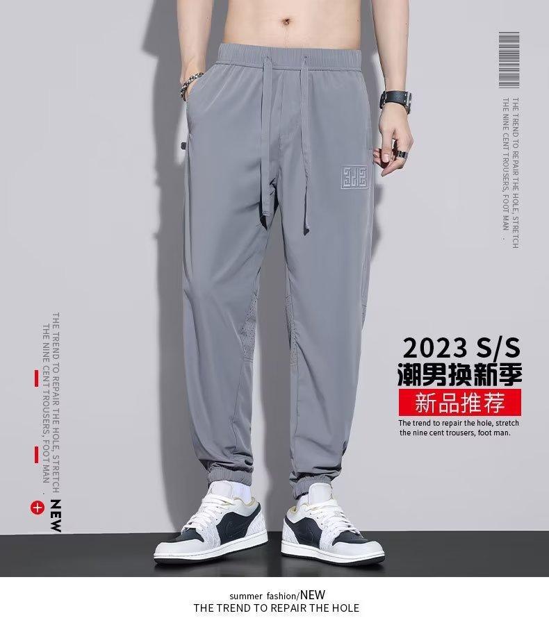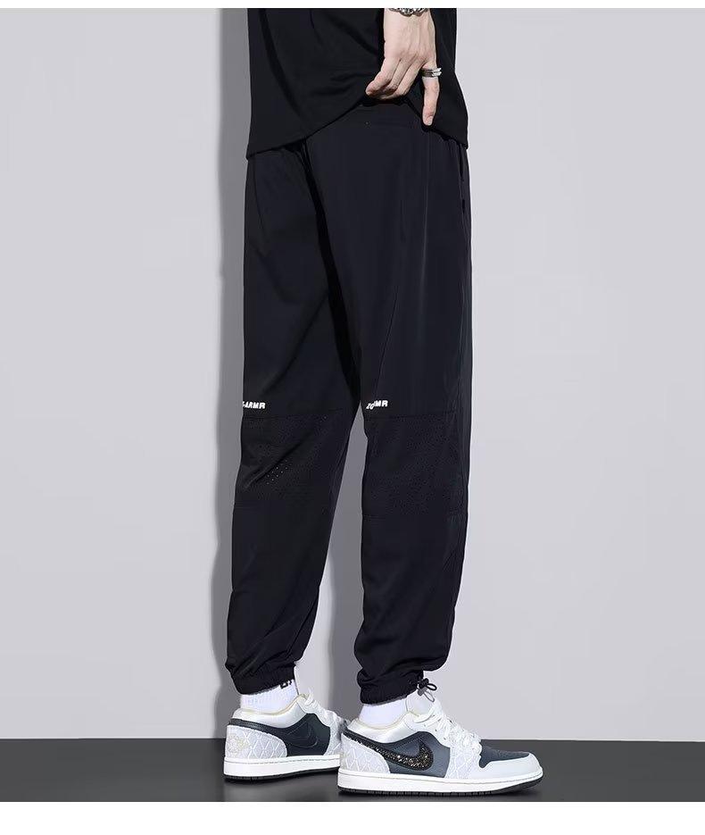 Calças Casuais de Malha de Seda Gelo Masculinas de Verão Finas Soltas Respiráveis de Secagem Rápida Calças Esportivas Masculinas com Cordão e Punho no Tornozelo