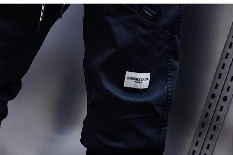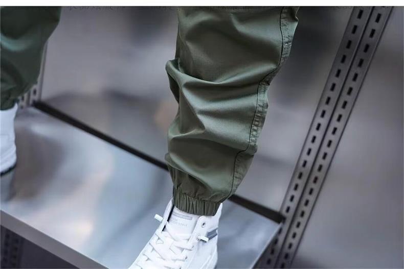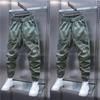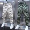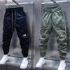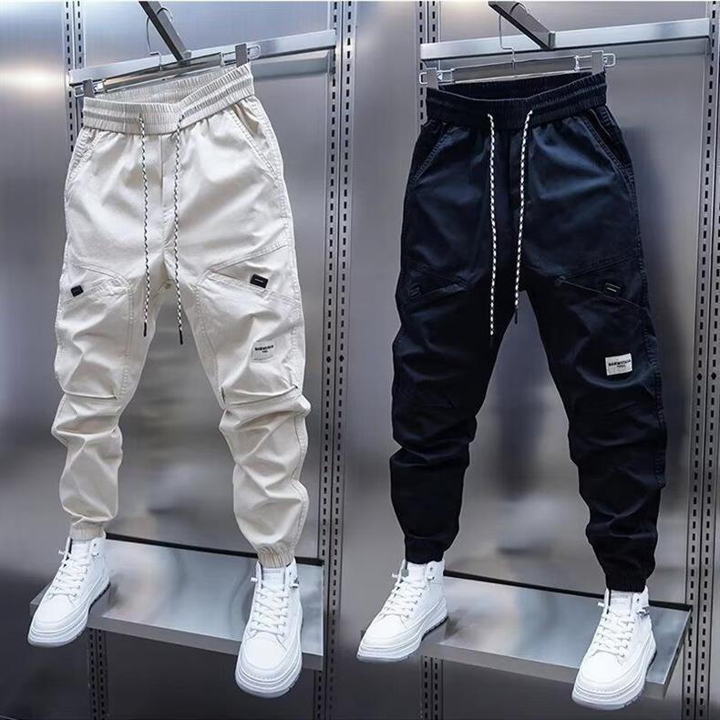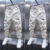 Calças Casuais Masculinas Tendência Bolsos Cor Sólida Soltas Novas Versátil Ajuste Slim Estilo Coreano Harem Tornozelo Elástico Calças Cargo
