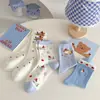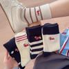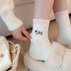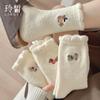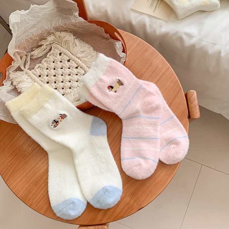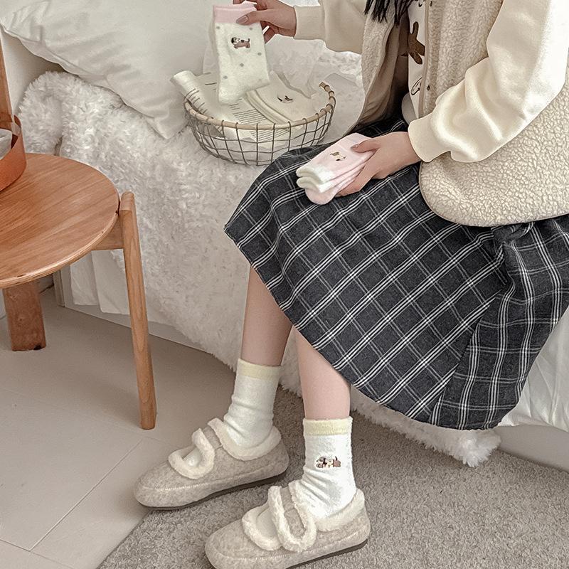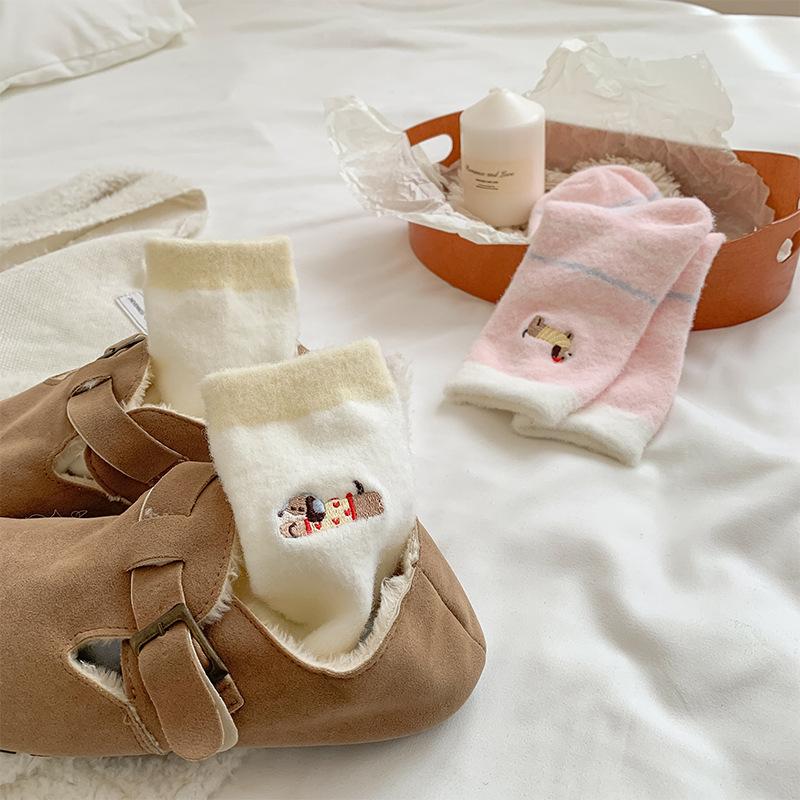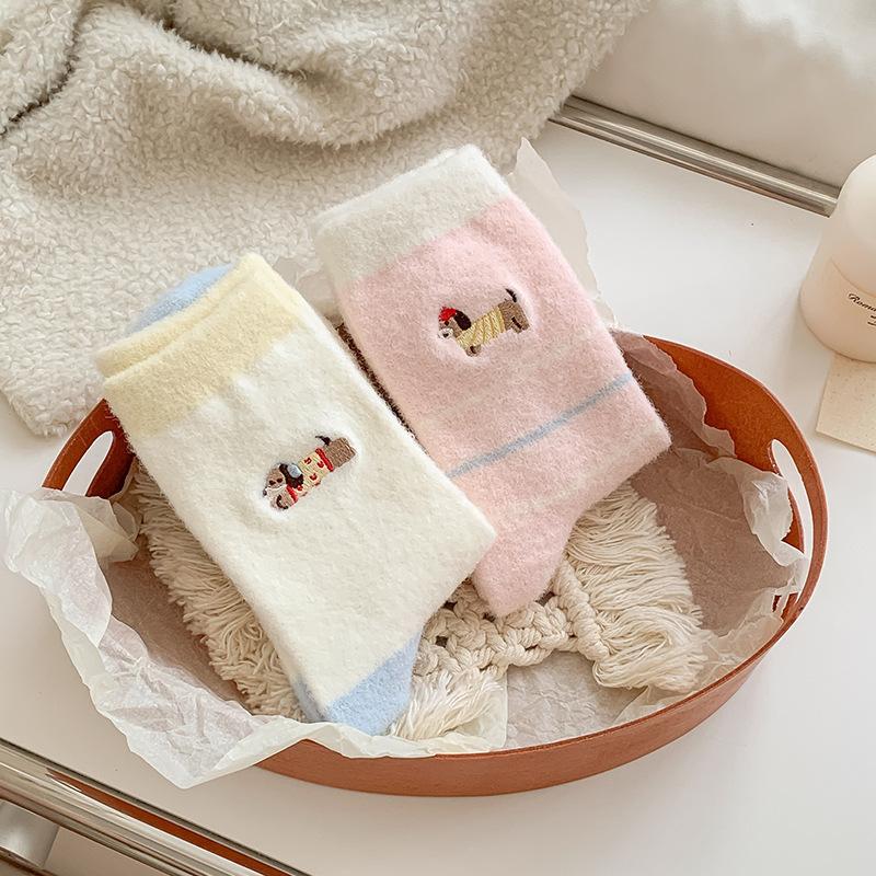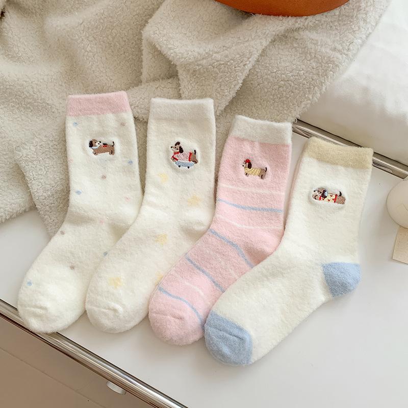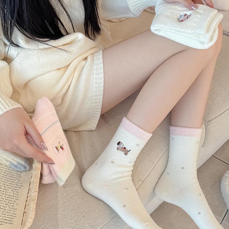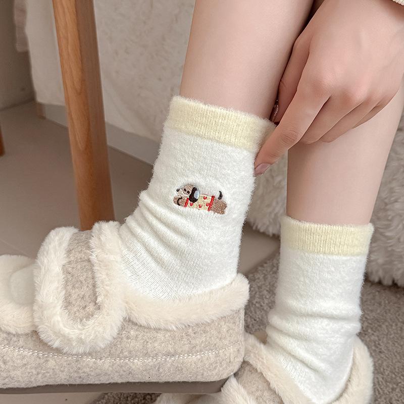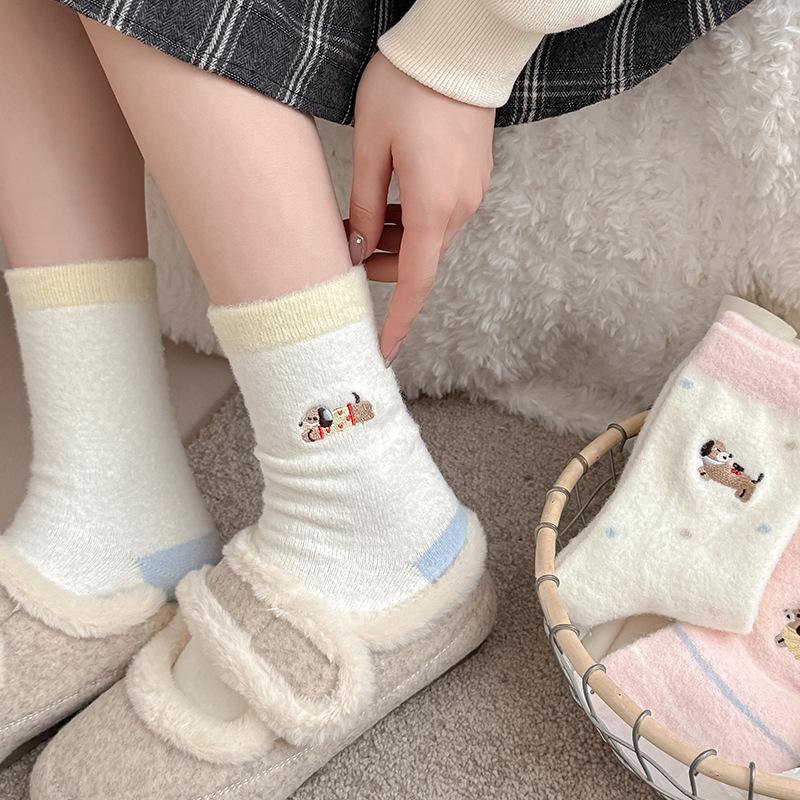 Outono e inverno bordado dachshund meias de lã australiana de cano médio femininas japonesas cor sólida quentes veludo nuvem listradas color block menina meias de felpa