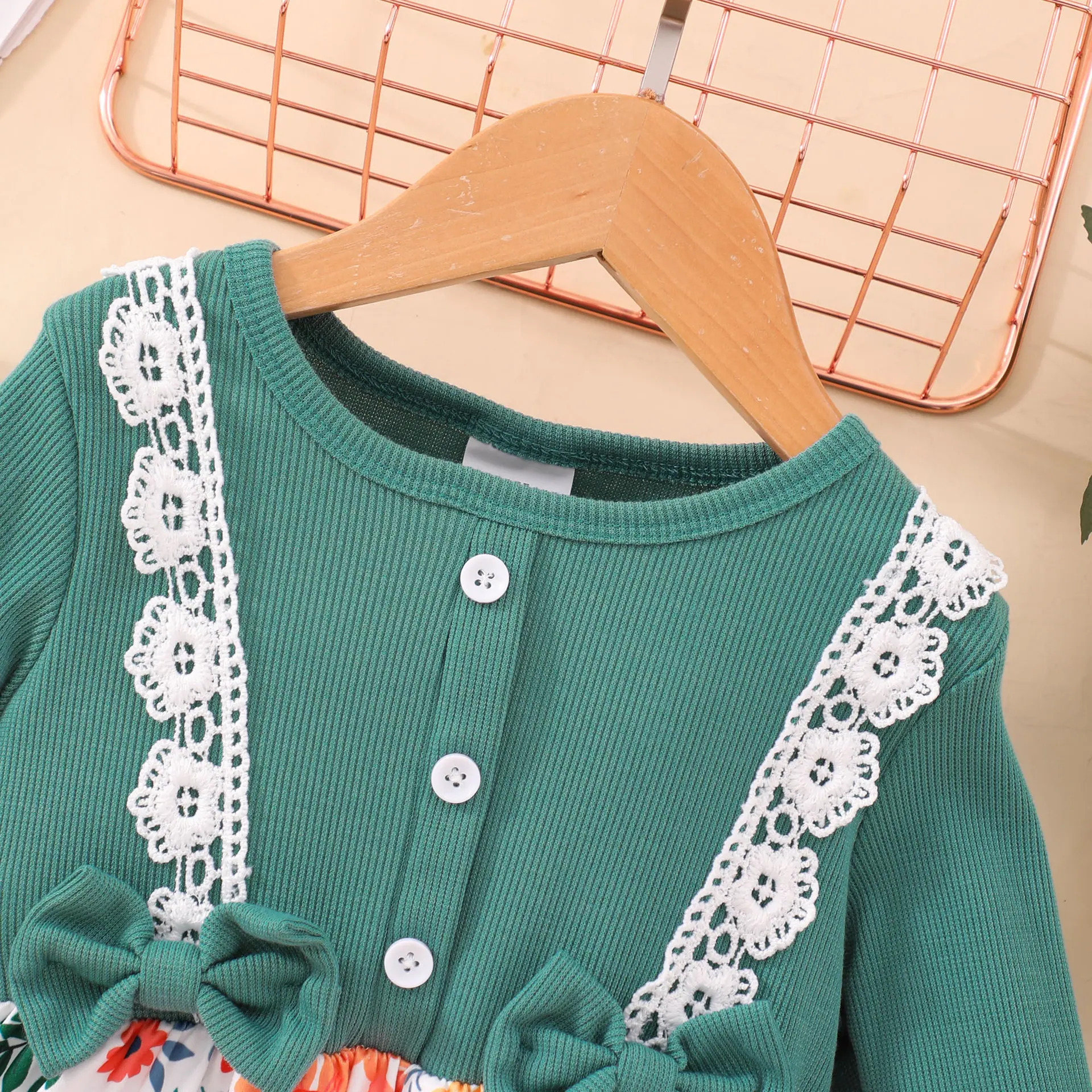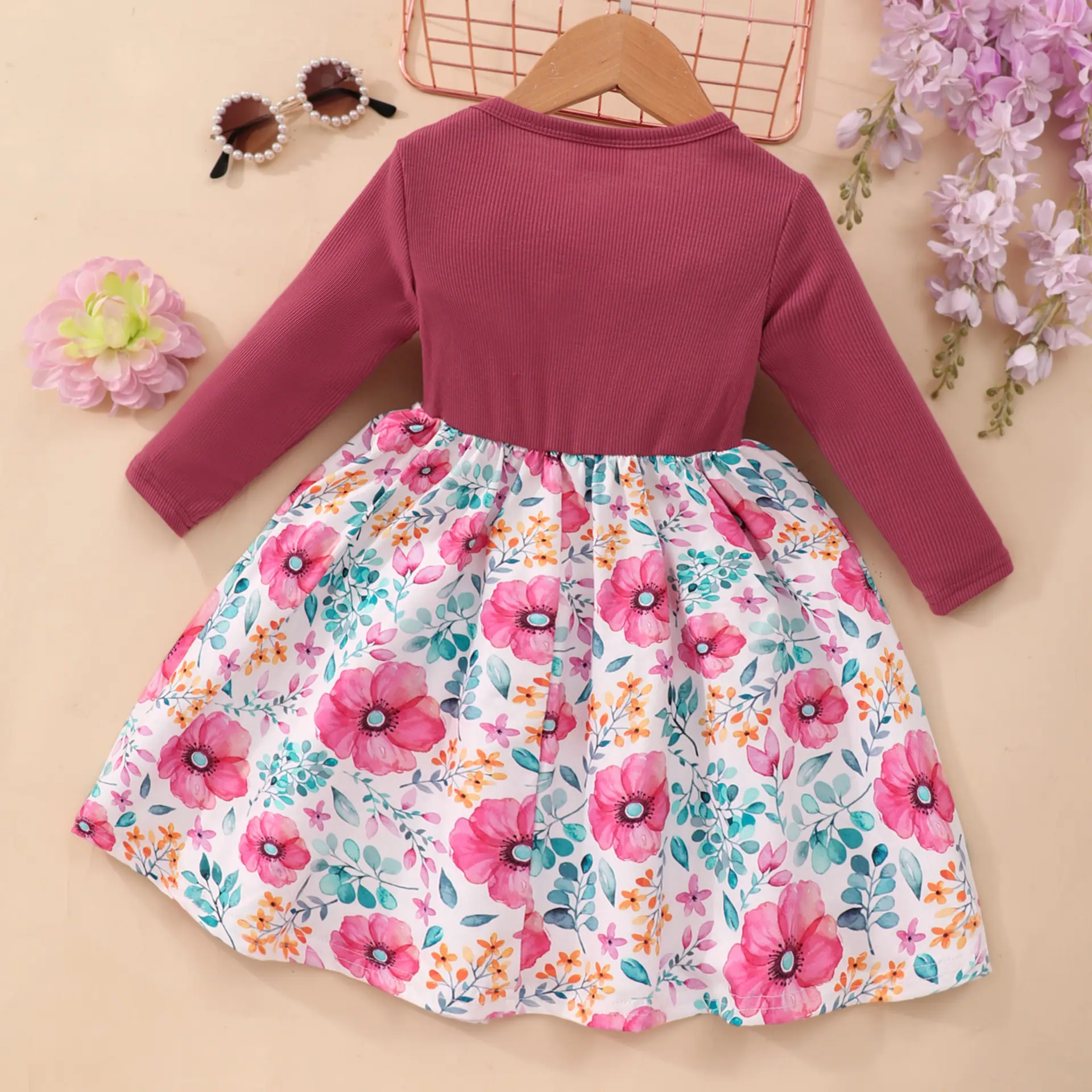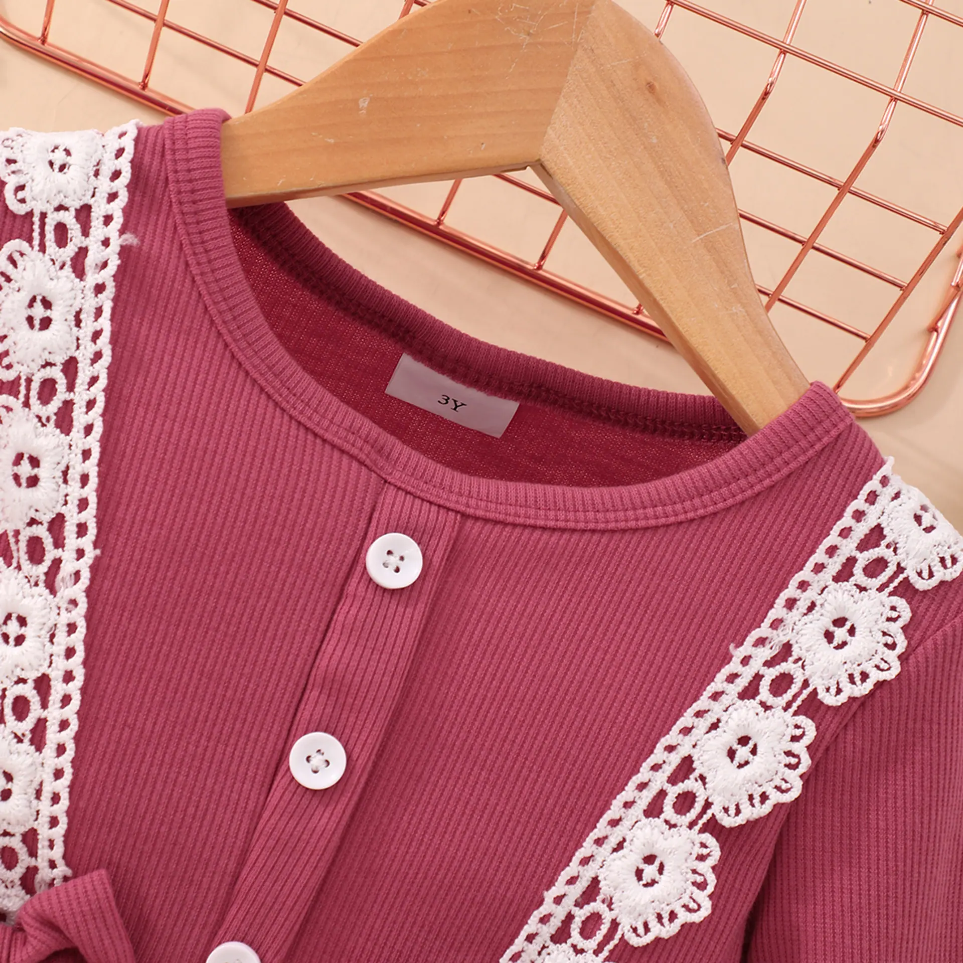 Novo vestido infantil transfronteiriço de manga comprida com renda pit flower, uma geração de cabelo