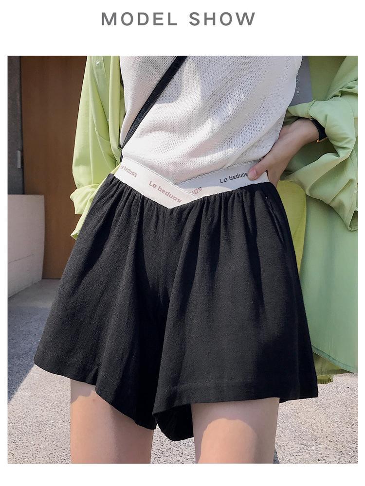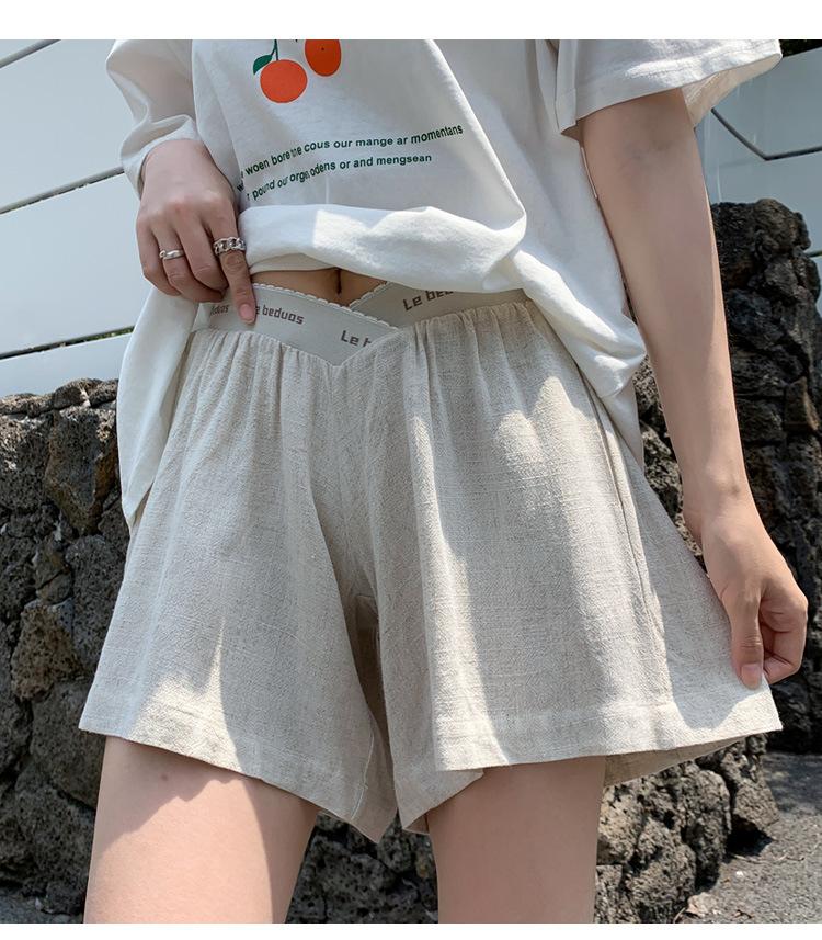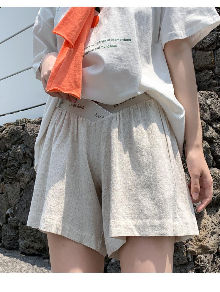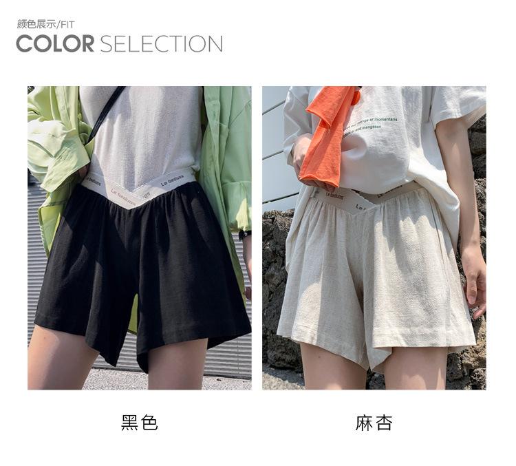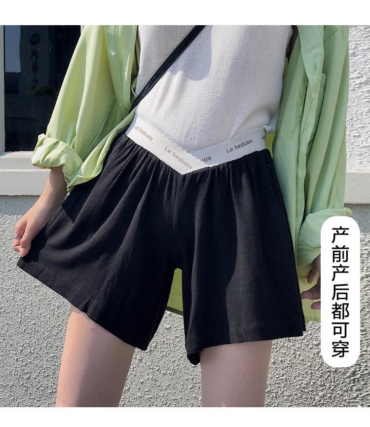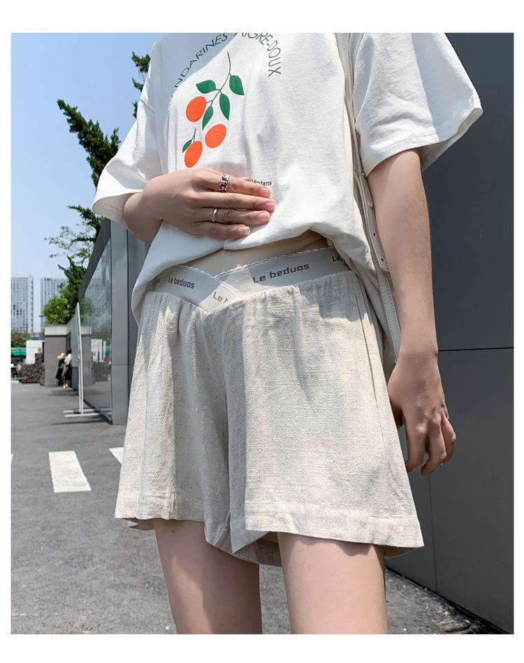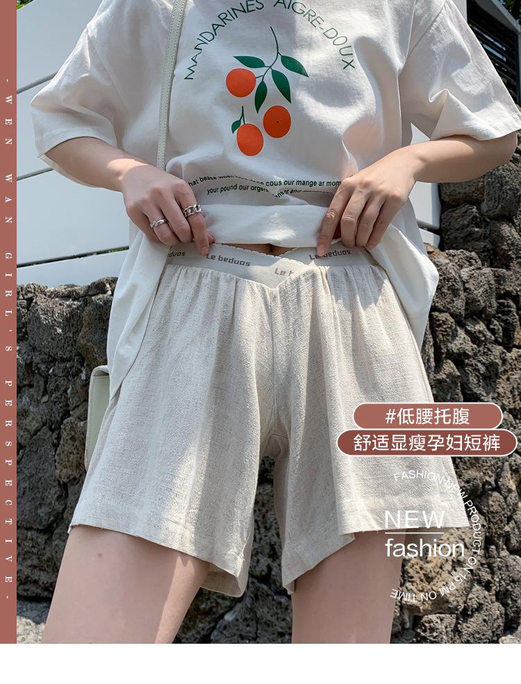 Calças de Maternidade Verão 2024 Cintura Baixa Algodão e Linho Shorts Respiráveis para Grávidas, Calças Largas de Cinco Pontos Soltas e da Moda