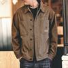 Jaqueta Americana Workwear Masculina Primavera Outono Casual Multibolsos Pesada Lavagem Vintage Gola Alta Jaqueta de Caça Streetwear