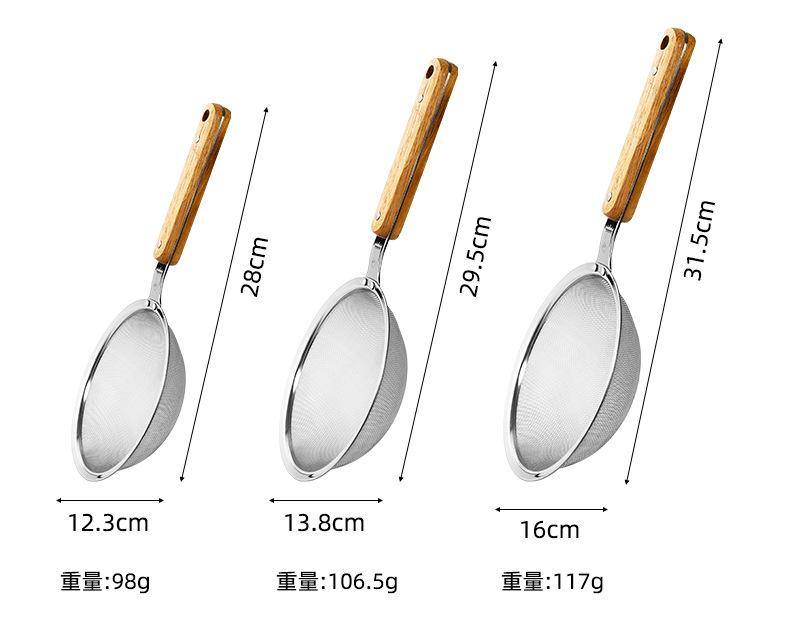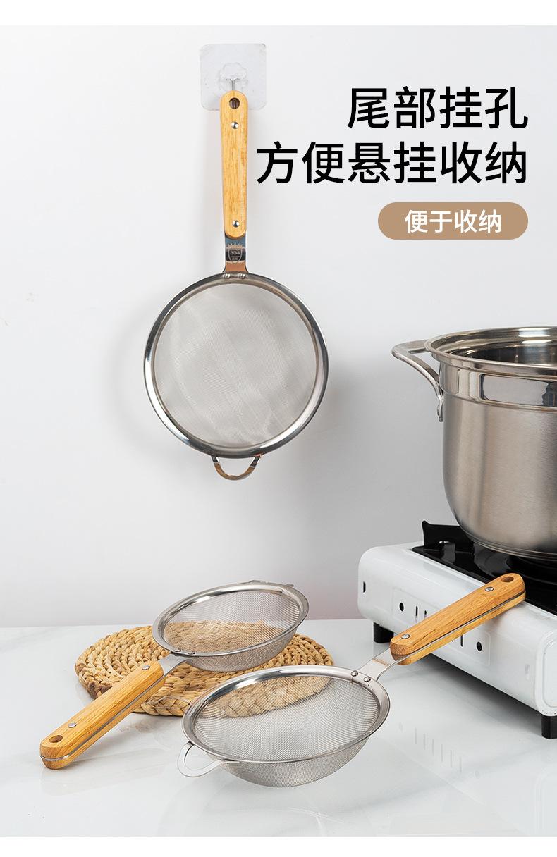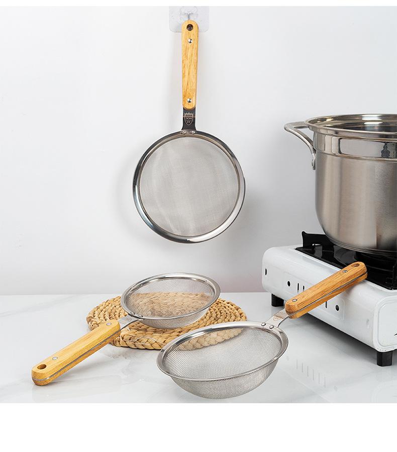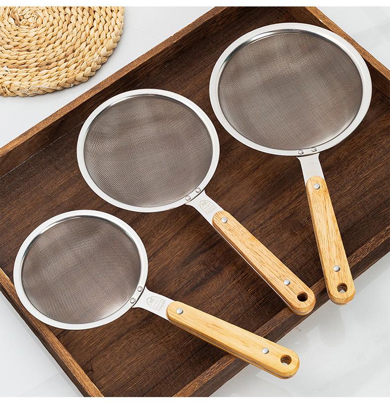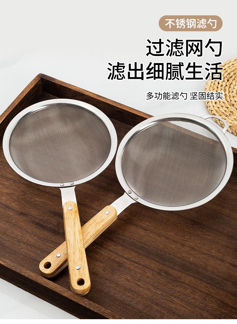 Aço Inoxidável 304 Escorredor Grande Cabo de Madeira Orelha Única Colher de Fritura Utensílios de Cozinha Domésticos Peixe Macarrão Filtro de Malha de Escoamento