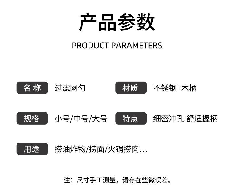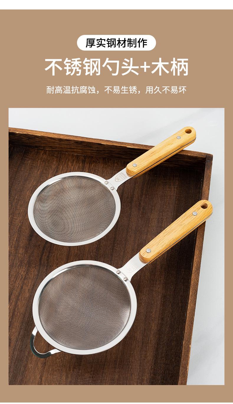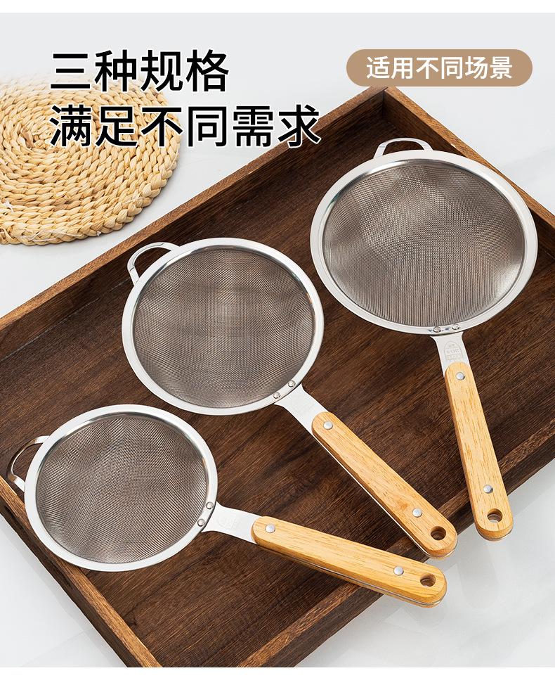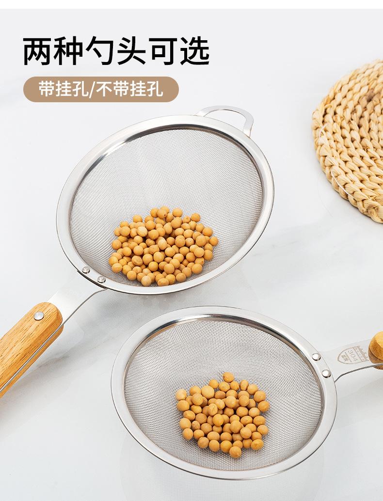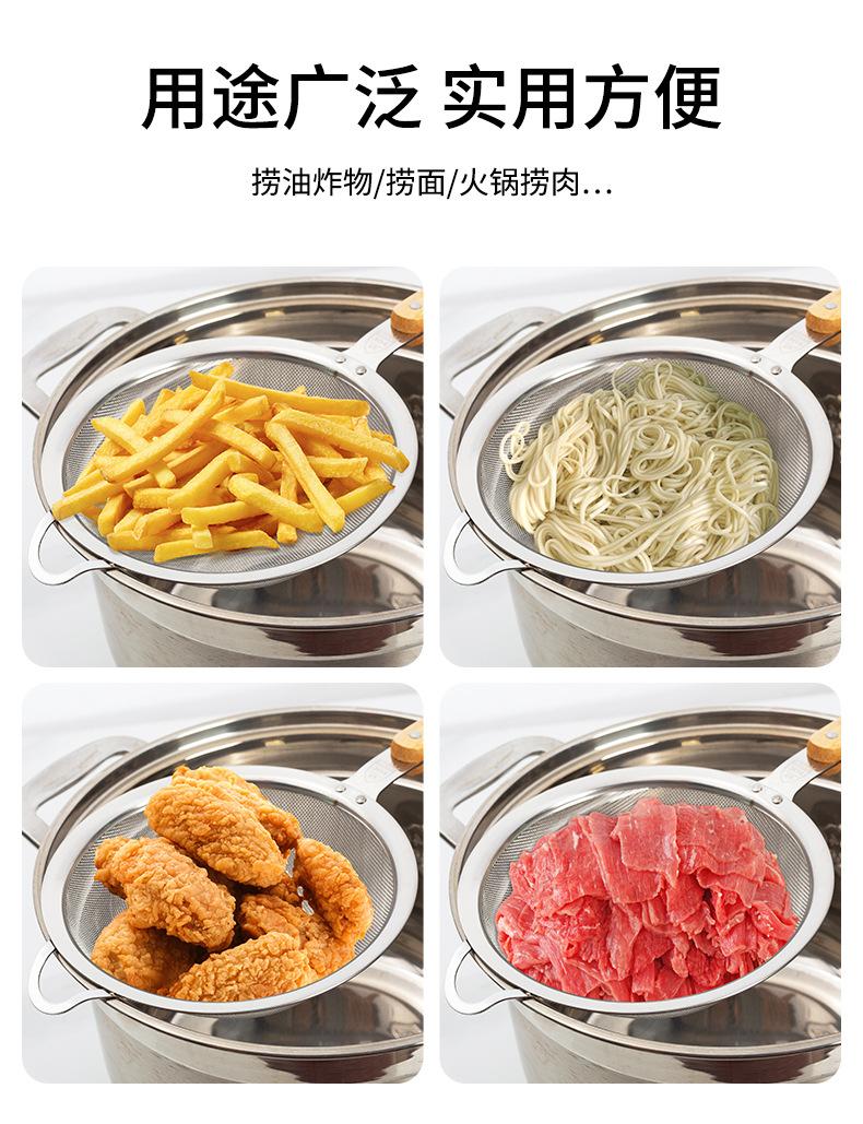 Aço Inoxidável 304 Escorredor Grande Cabo de Madeira Orelha Única Colher de Fritura Utensílios de Cozinha Domésticos Peixe Macarrão Filtro de Malha de Escoamento