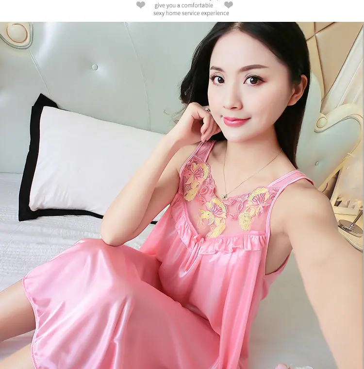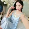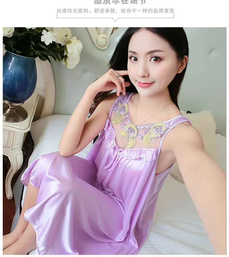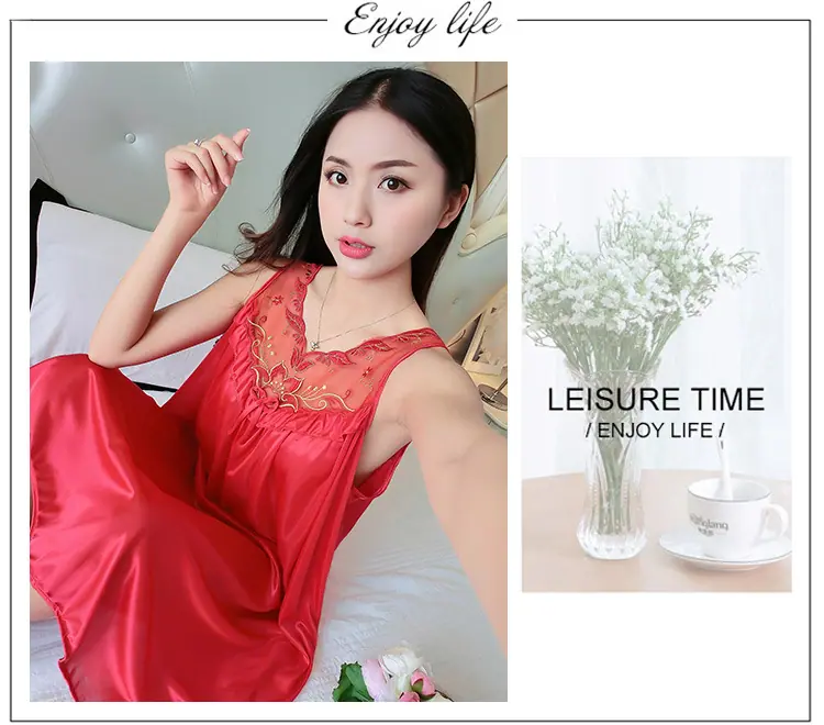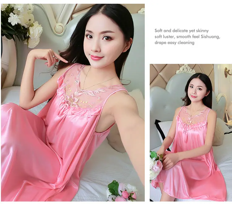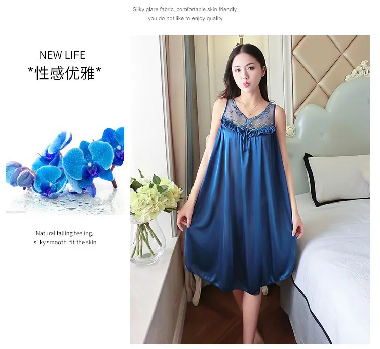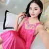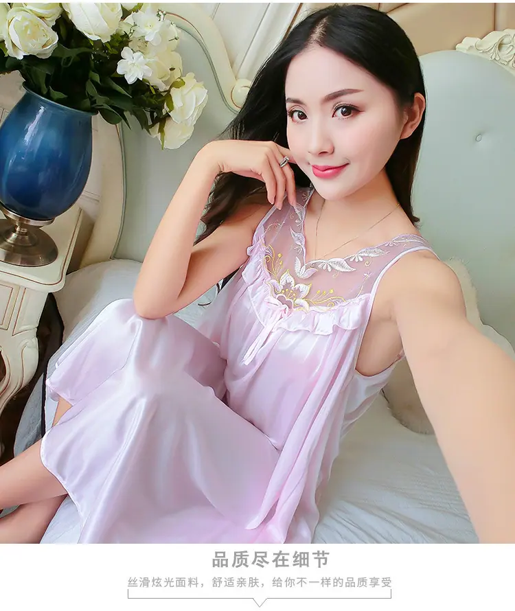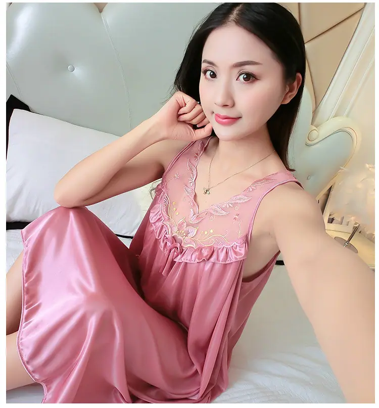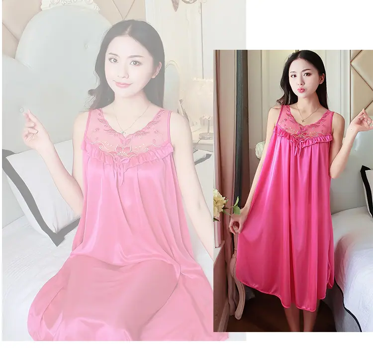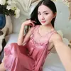 Pijama Feminino Colete Solto Plus Size Seda Gelo Sem Mangas Verão Seda Imitada Camisola Sexy Renda Verão Comprimento Médio Fino