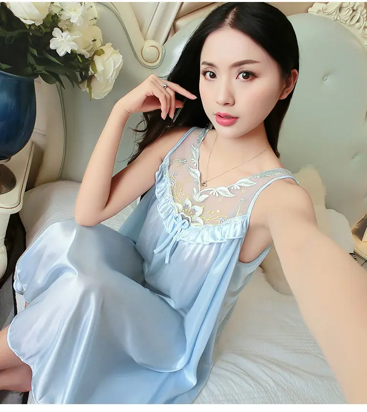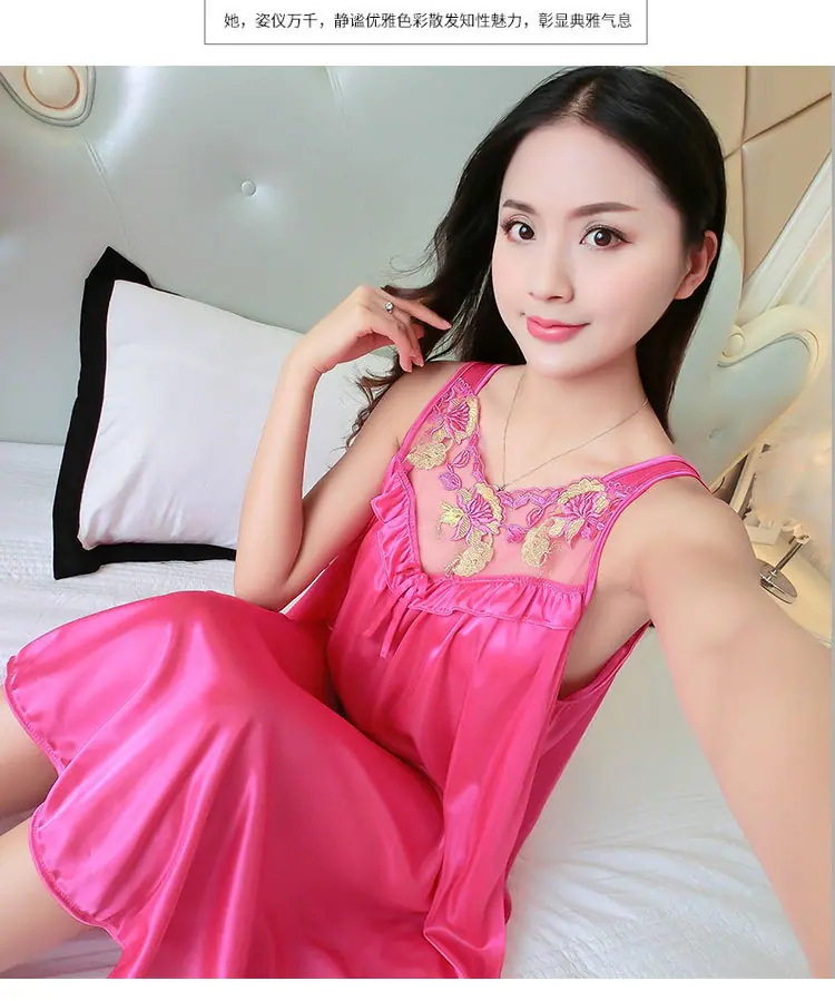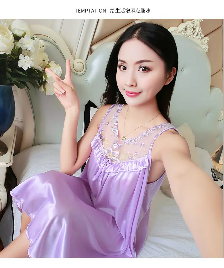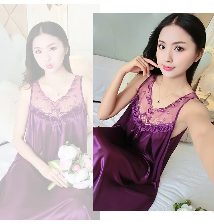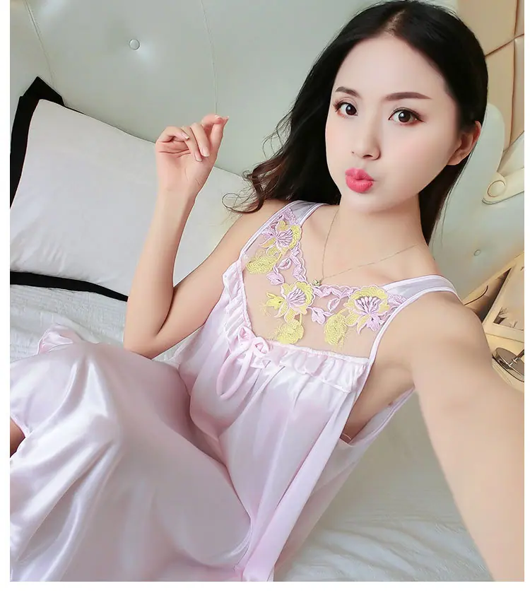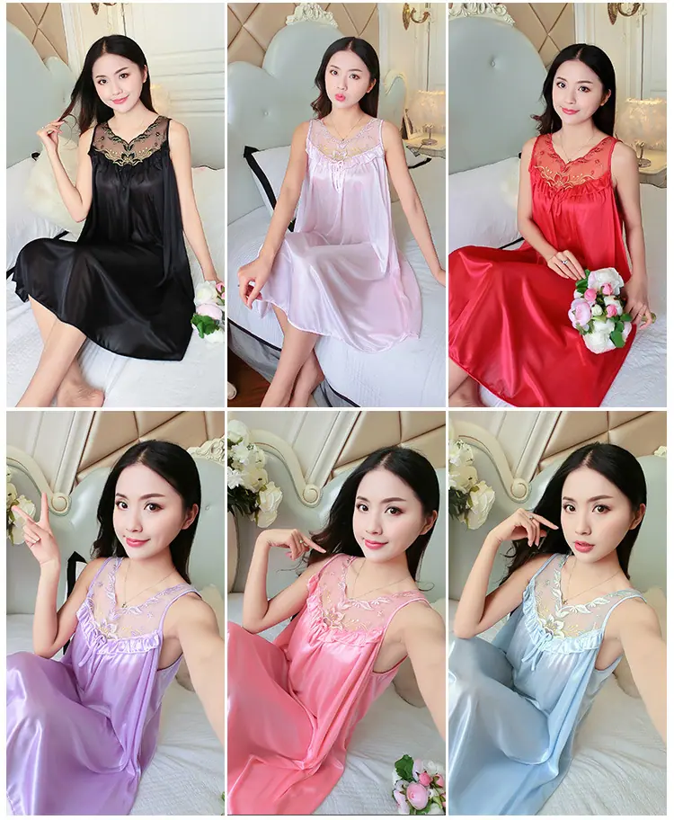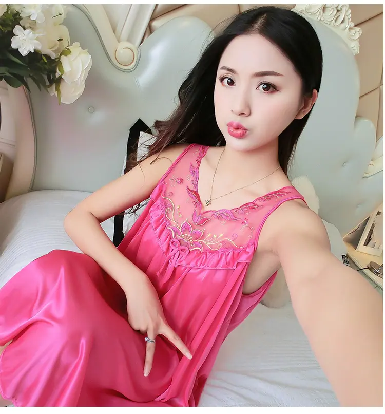 Pijama Feminino Colete Solto Plus Size Seda Gelo Sem Mangas Verão Seda Imitada Camisola Sexy Renda Verão Comprimento Médio Fino