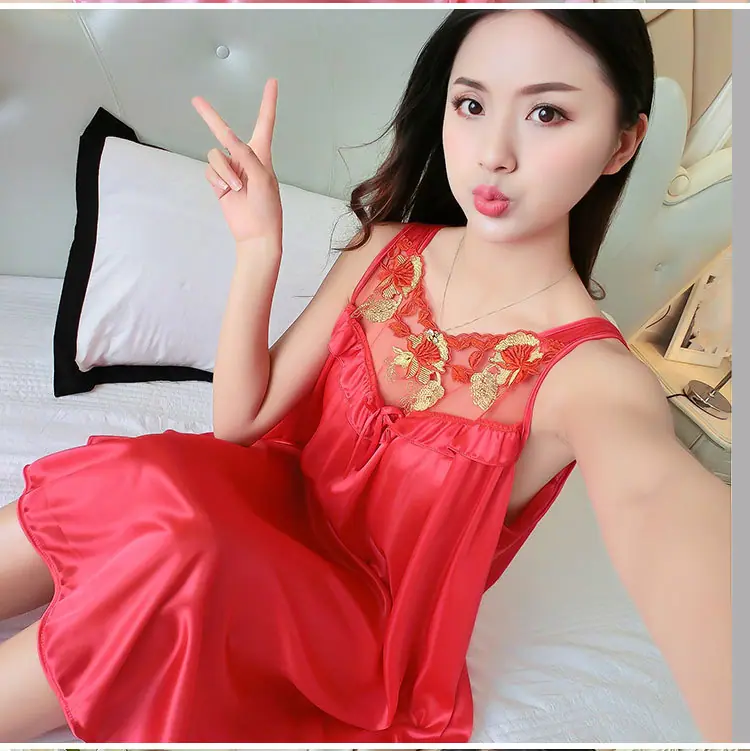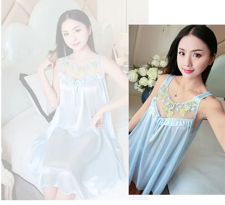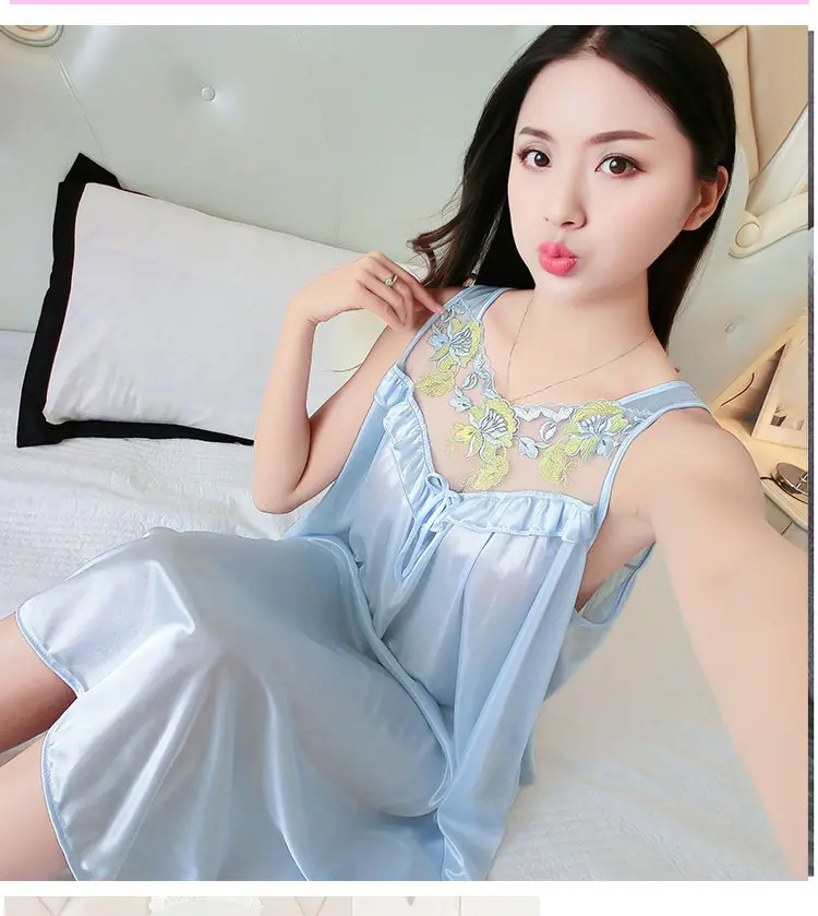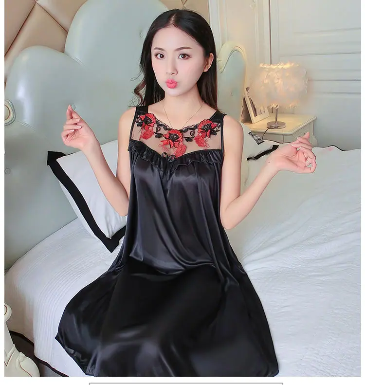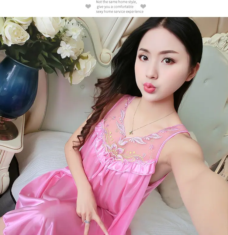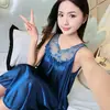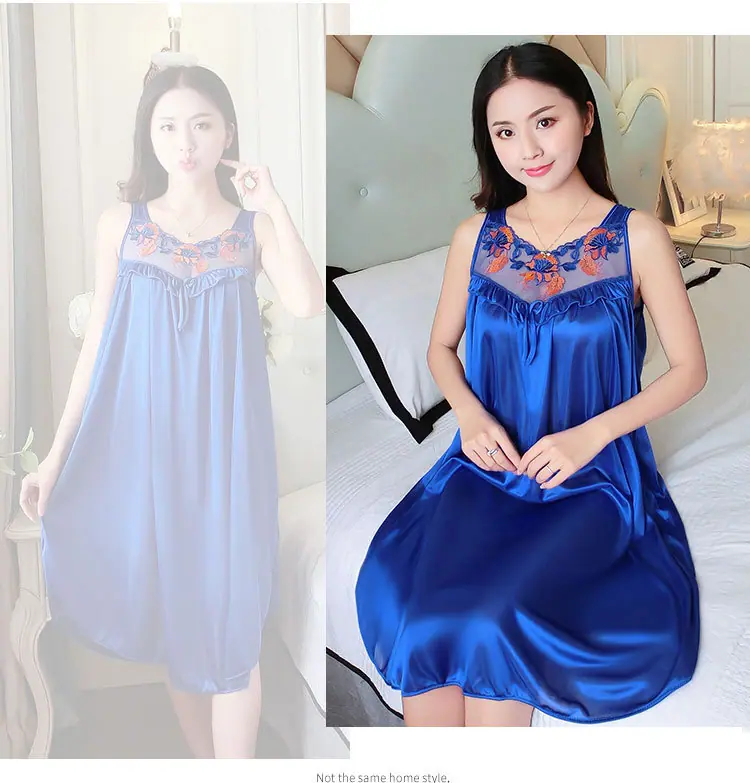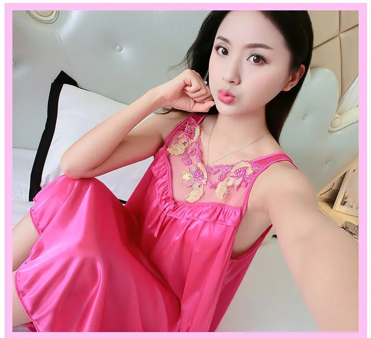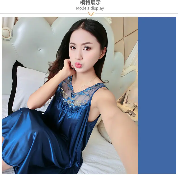 Pijama Feminino Colete Solto Plus Size Seda Gelo Sem Mangas Verão Seda Imitada Camisola Sexy Renda Verão Comprimento Médio Fino