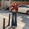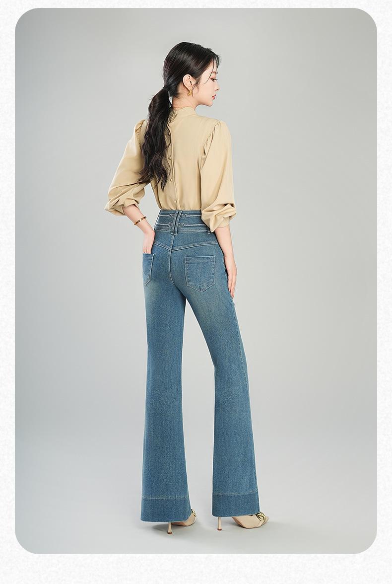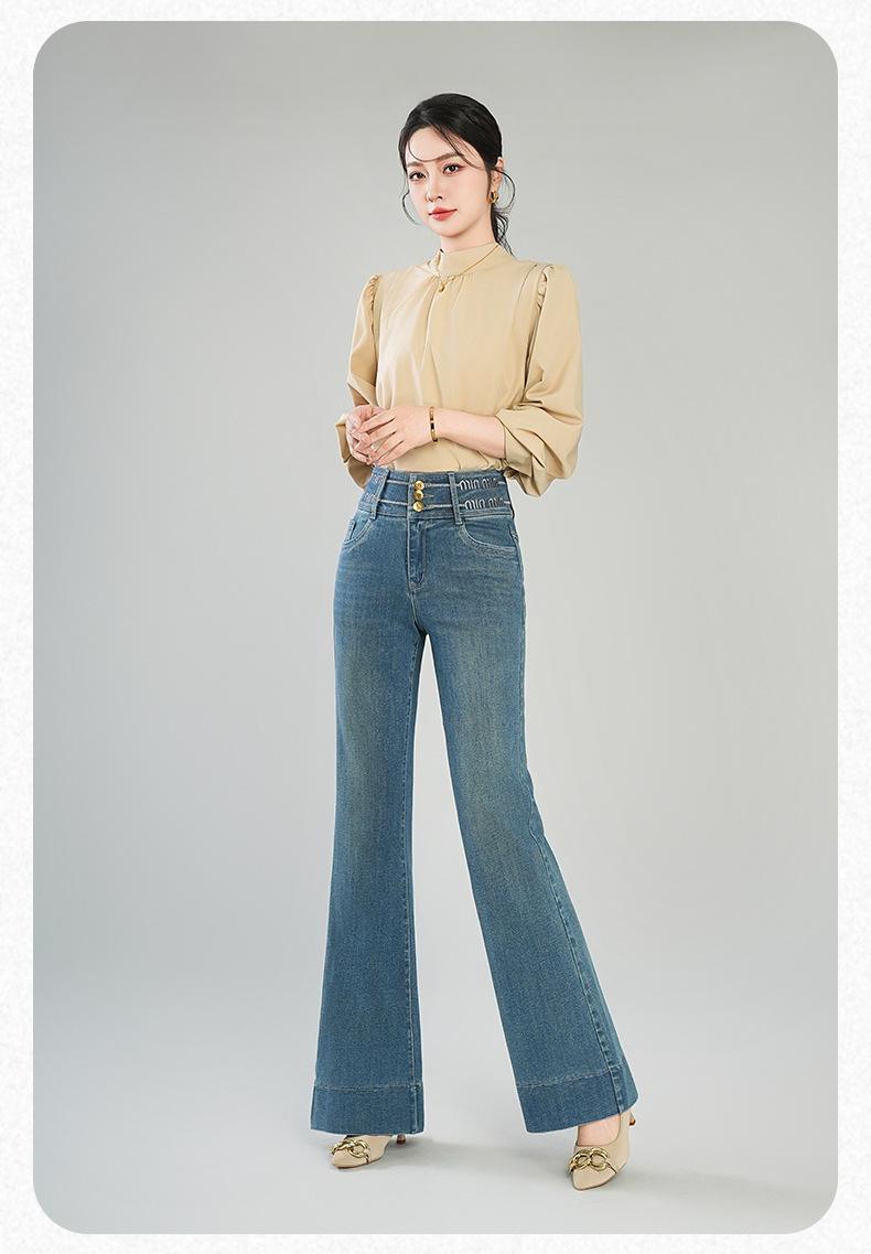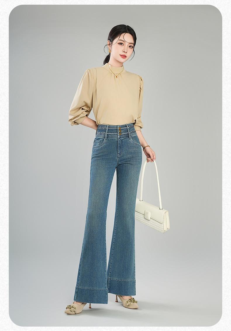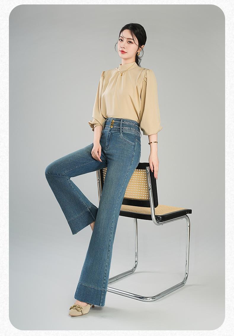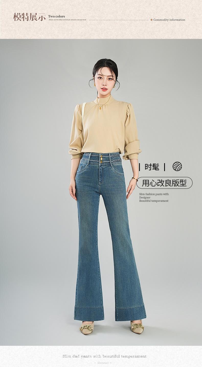 Calças Jeans Micro-Flare da Moda e Simples para Mulheres 2025 Primavera Novo Estilo Coreano Calças Cauda de Peixe Emagrecedoras Calças Casuais